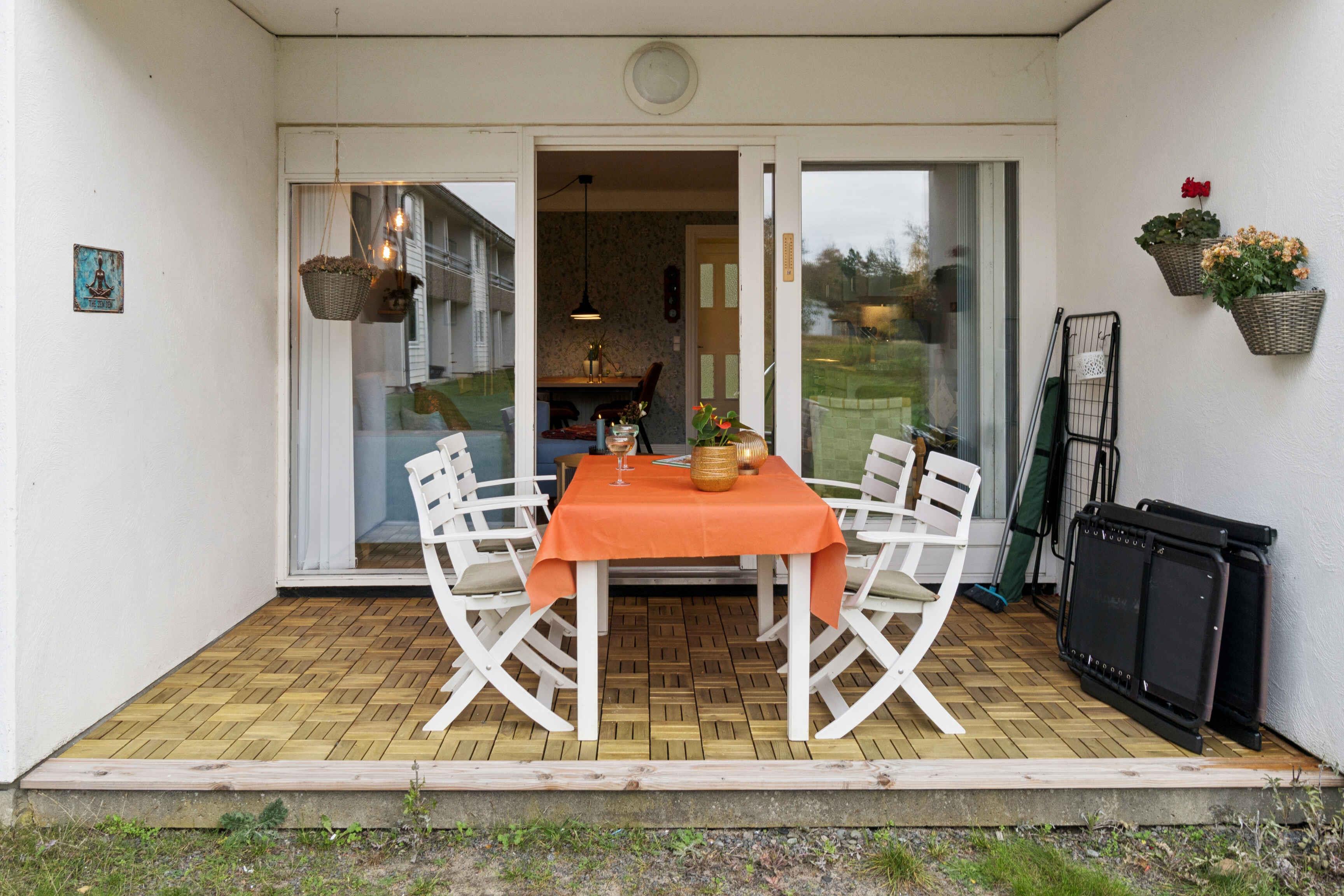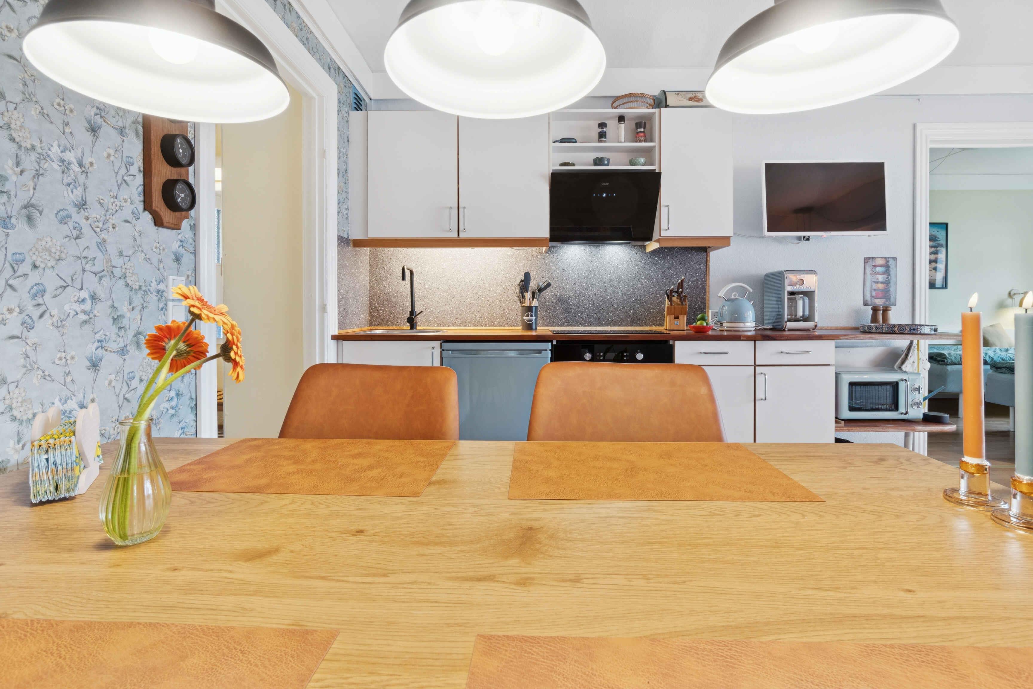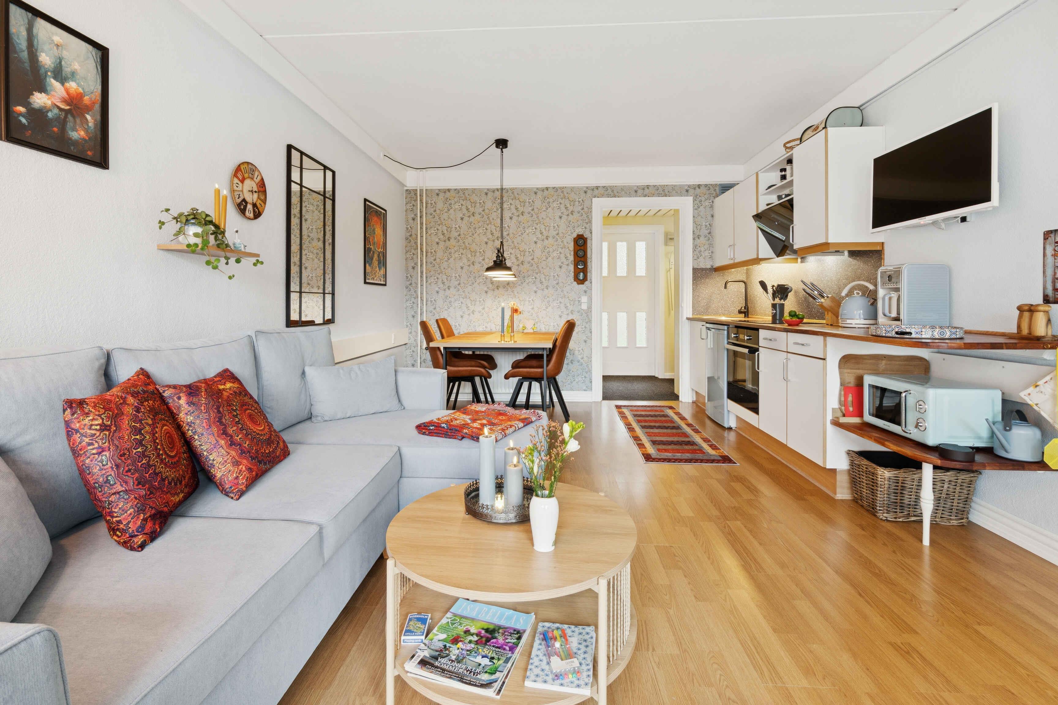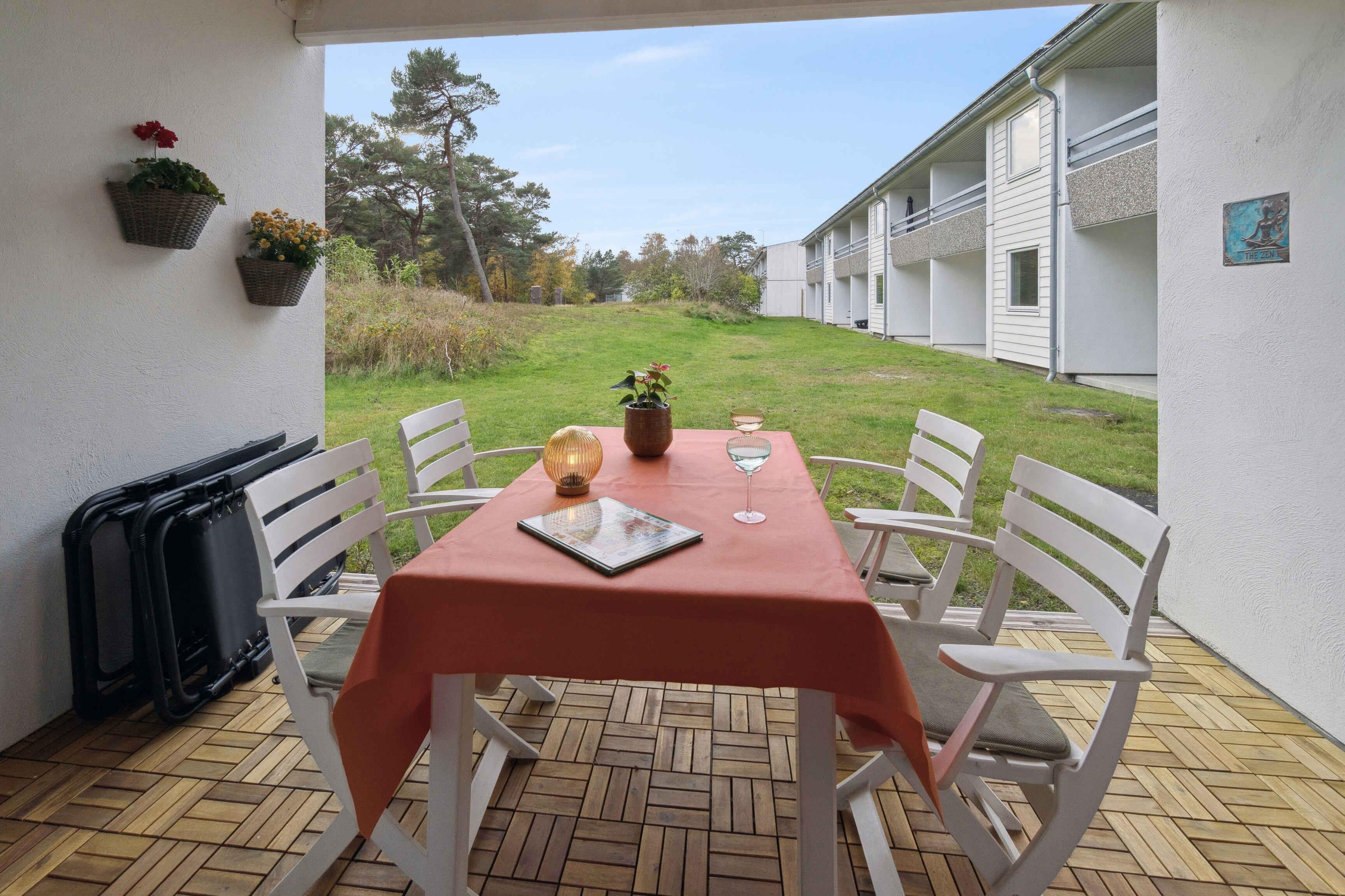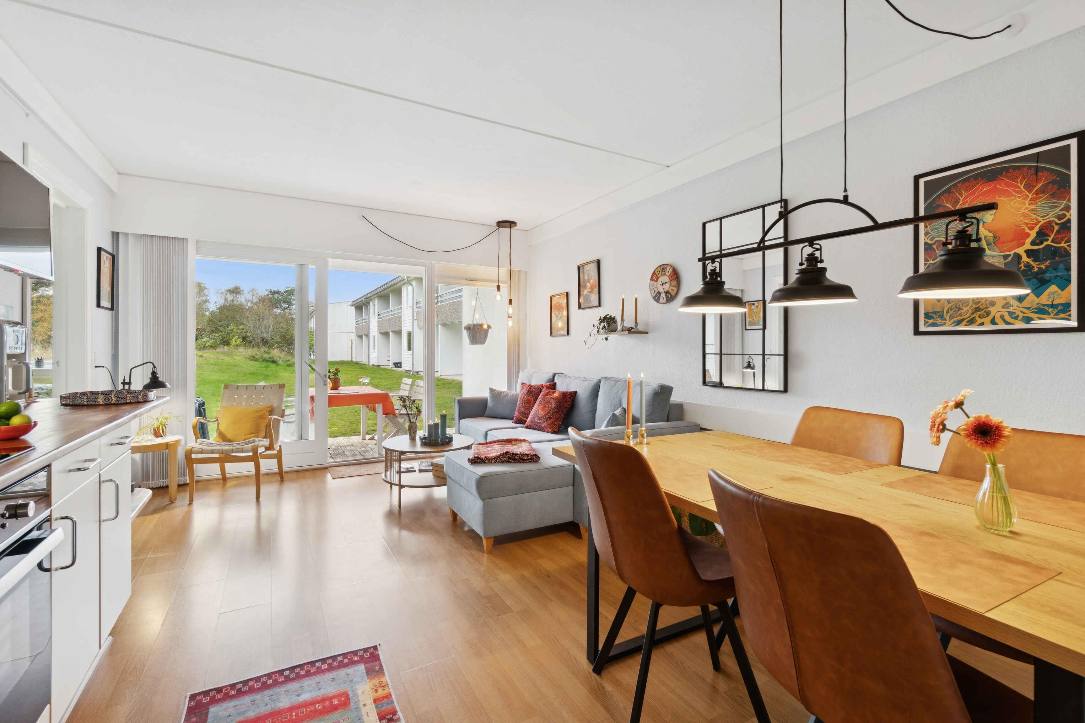 Licht appartement in Dueodde met één slaapkamer en vier slaapplaatsen. Open woonkamer, goed uitgeruste keuken en terras. Dicht bij strand en natuur. Ideaal voor stellen en kleine gezinnen.