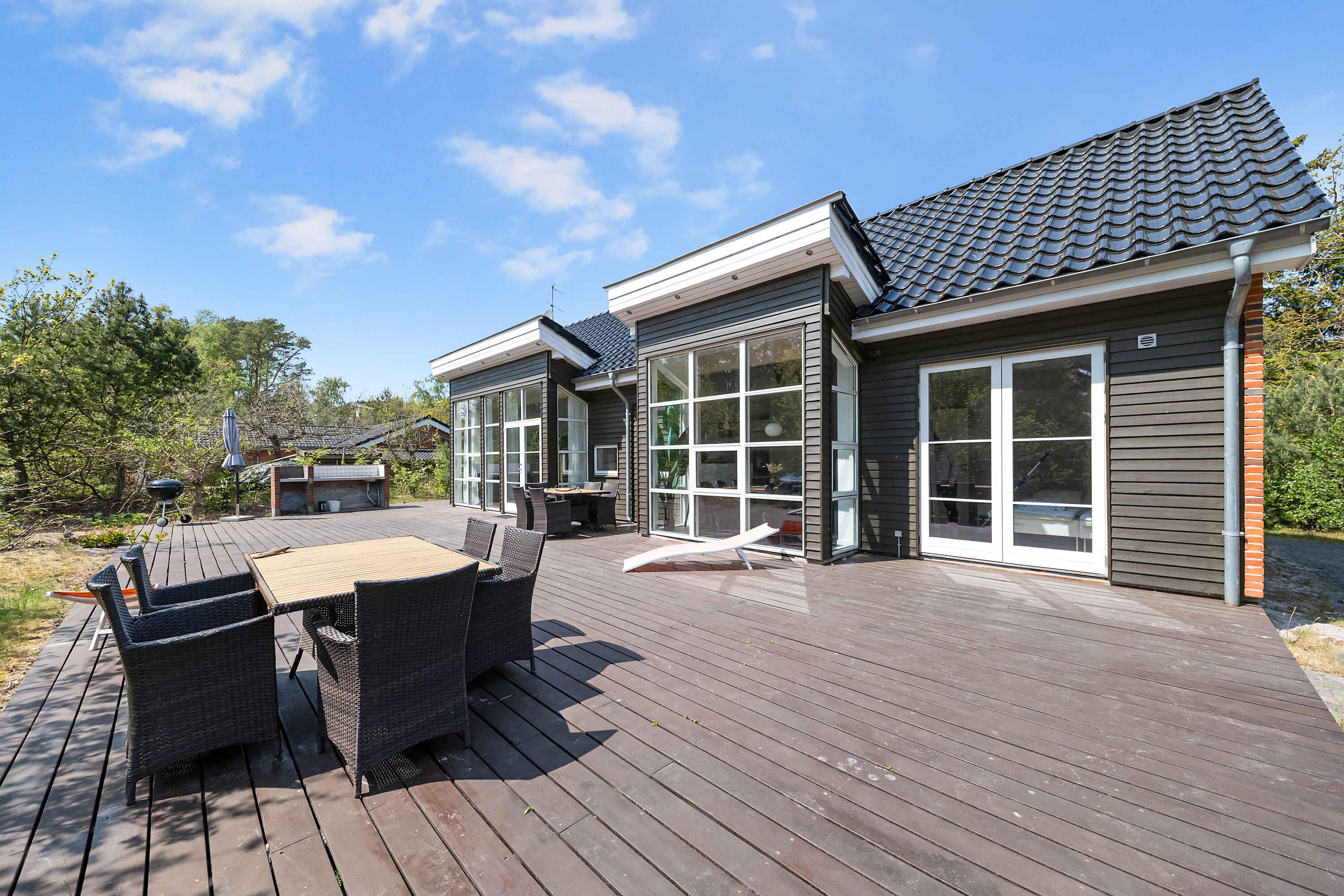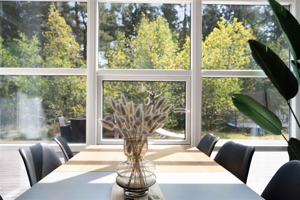 Leuk vakantiehuis op een mooi natuurgrondstuk, slechts 250 meter van een prachtig, kindvriendelijk zandstrand, 800 meter van het gezellige Snogebæk en 6 km van Nexø. Kijk uit naar dit prachtige huis, dat zowel ruim als comfortabel is. Moderne interieurs en vloerverwarming wachten hier, dus ongeacht het seizoen is er altijd een aangenaam binnenklimaat. In de woonkamer geniet je van de koele avonden voor de houtkachel en maak je gebruik van de goede apparatuur, waaronder TV met Chromecast en bluetooth speakers. De woning beschikt over drie slaapkamers en twee vides met respectievelijk 3 tweepersoonsbedden in de kamers en 4 eenpersoonsbedden in de lofts. De kamers en de 2 lofts hebben ook televisies met Chromecast. Daarnaast beschikt de woning over een lichte, moderne en functionele keuken en gezellige eethoek. Buiten kunt u zich ook verheugen op een aangename omgeving, want hier kunt u neerstrijken op een 110 m2 groot en zonnig, ongestoord houten terras met tuinmeubelen, gasbarbecue en buitenkeuken. In de tuin vindt u een heerlijke serre met loungemeubels, waar u bij weer en wind kunt genieten van de natuur en het leven. Er zijn ook twee schommels waar de kinderen elkaar leuk kunnen duwen. In de carport is er gelegenheid om uw elektrische auto op te laden. Snogebæk heeft veel te bieden voor een zorgeloos vakantieleven. Van een prachtig zandstrand tot de charmante haven met de mooie oude houten brug en prachtige ventermarkten, moderne rokerij en de prachtige Povls-kerk in Romaanse stijl. U bevindt zich aan het zuidoostelijke deel van de kustlijn van Bornholm, en daarom hoeft u niet ver naar alle spannende bezienswaardigheden in Nexø en het prachtige strand van Dueodde. Een bijzonder mooie vakantiewoning in een populaire omgeving.
