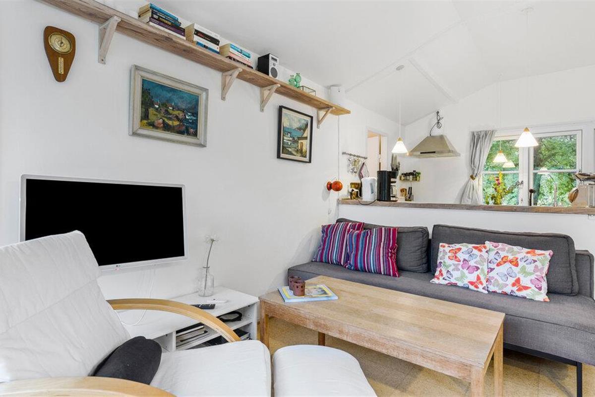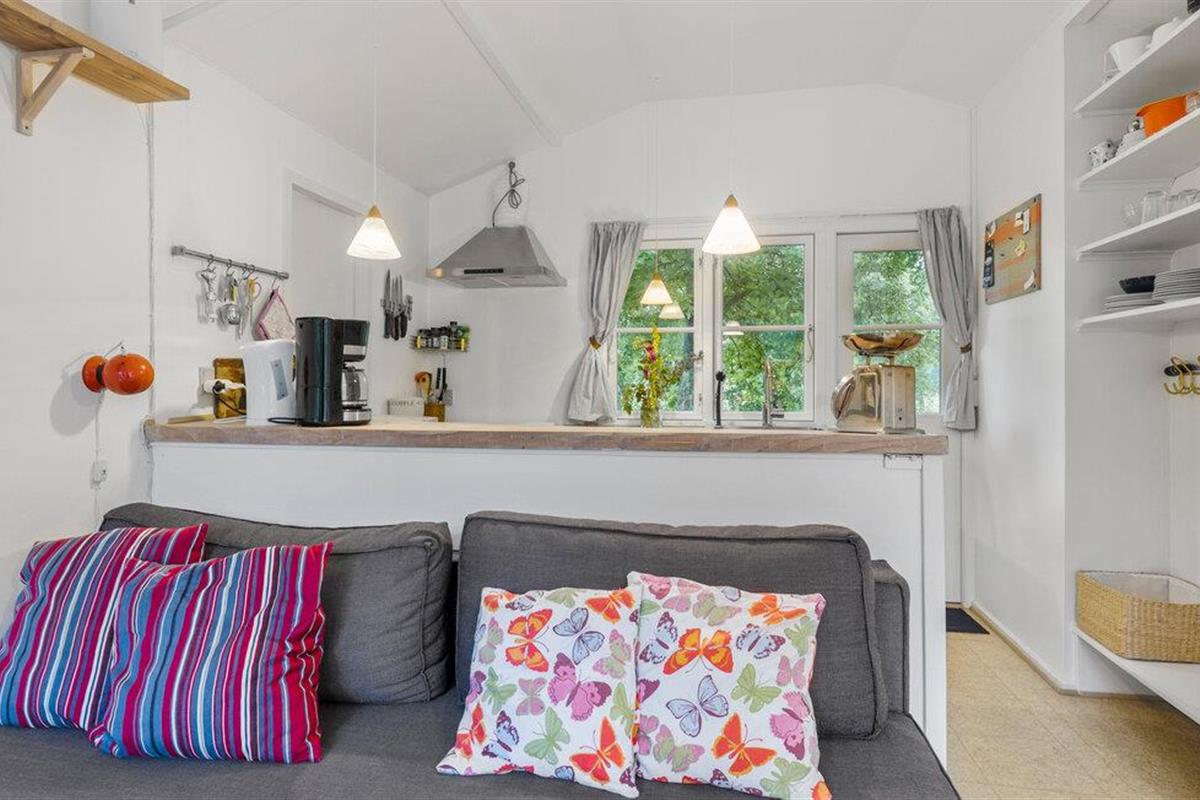 Klein maar gezellig houten huisje op een rustige locatie op een tuinperceel met toegang tot een gemeenschappelijke speeltuin.
