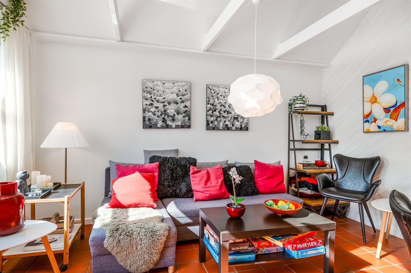De vakantiewoning is gelegen op een 83 m² groot grond. De grond is omheind. Afstand tot de zee 40000 m. Afstand tot de fjord 10 m. Dichtstbijzijnde winkel 240 m. Bij de vakantiewoning hoort beschut terras. Gereedschapsruimte. Afstand tot speelplaats 200 m. 2 Barbecues. Parkeerplaats bij het huis.