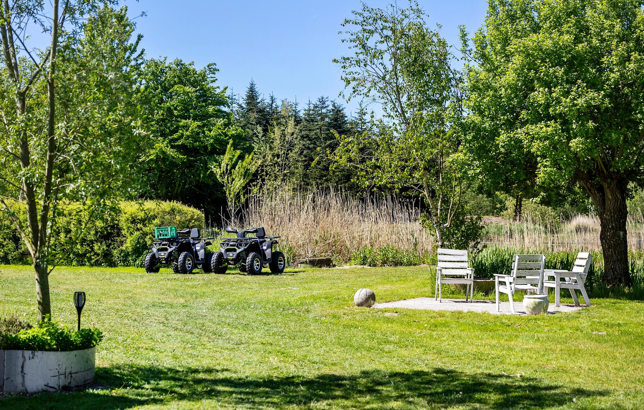 Gebruik de verschillende buitenzitjes om gezellig samen te zijn of rustig te lezen onder de bomen. Ontspan op de loungemeubels op het terras bij het huis, terwijl het grote gazon voldoende ruimte biedt om te spelen en te bewegen. Een bijzonder hoogtepunt is het meer bij het huis, ideaal om te vissen of gewoon te ontspannen aan het water. Als je meer ruimte nodig hebt, kun je het aangrenzende vakantiehuis op hetzelfde terrein boeken.