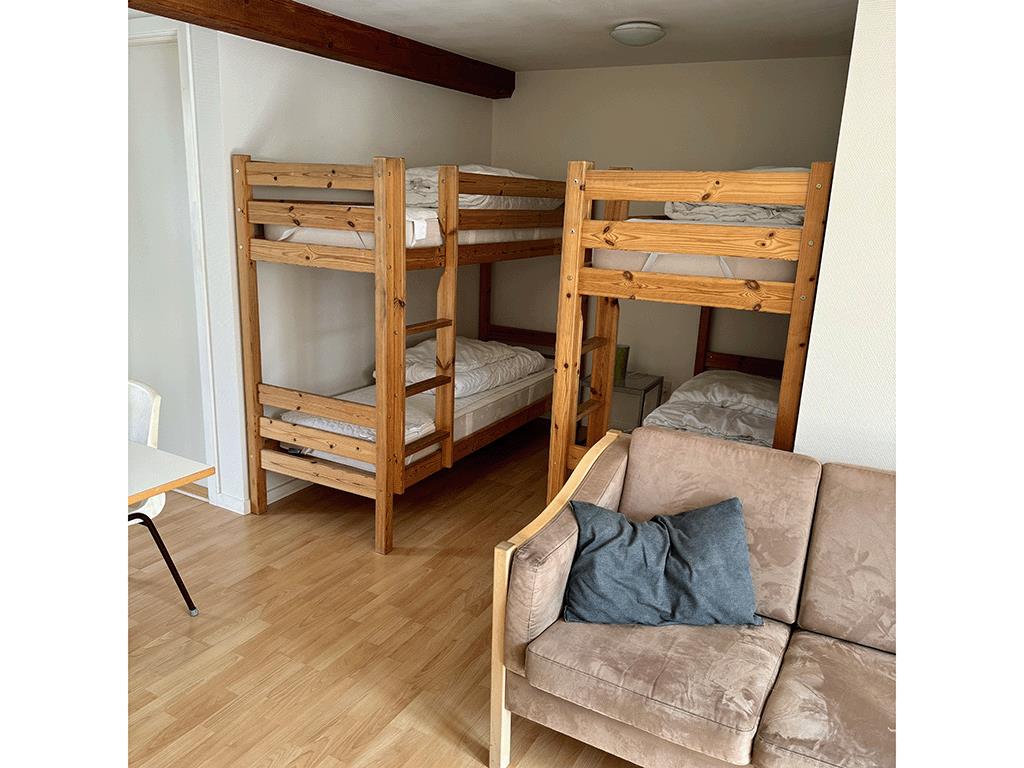 Sengelinned medbringes eller lejes, for 60 kr pr. person. Incl. slutrengøring.