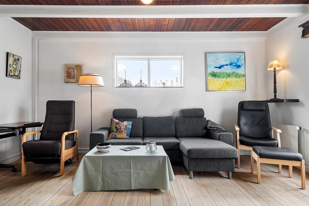 Gezellig vakantiehuis in Nord Samsø met houtkachel, trampoline en omheinde tuin, ideaal voor gezinnen met huisdieren.