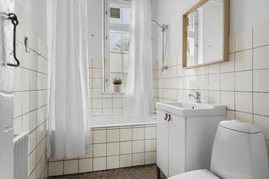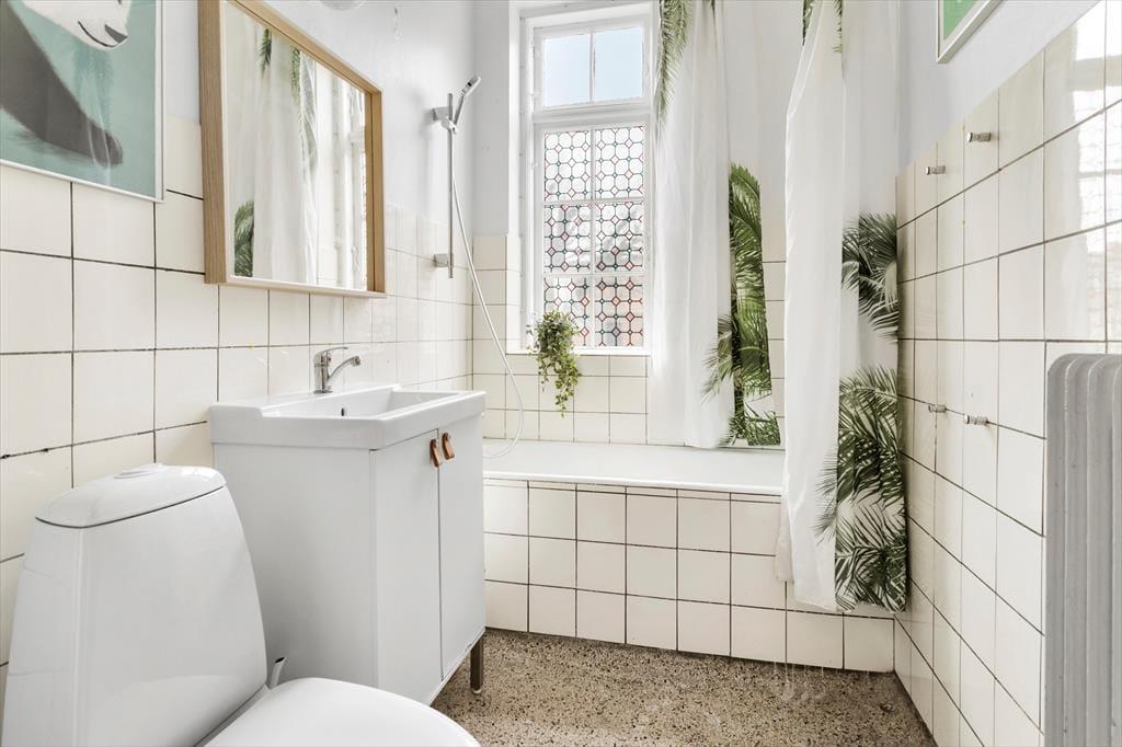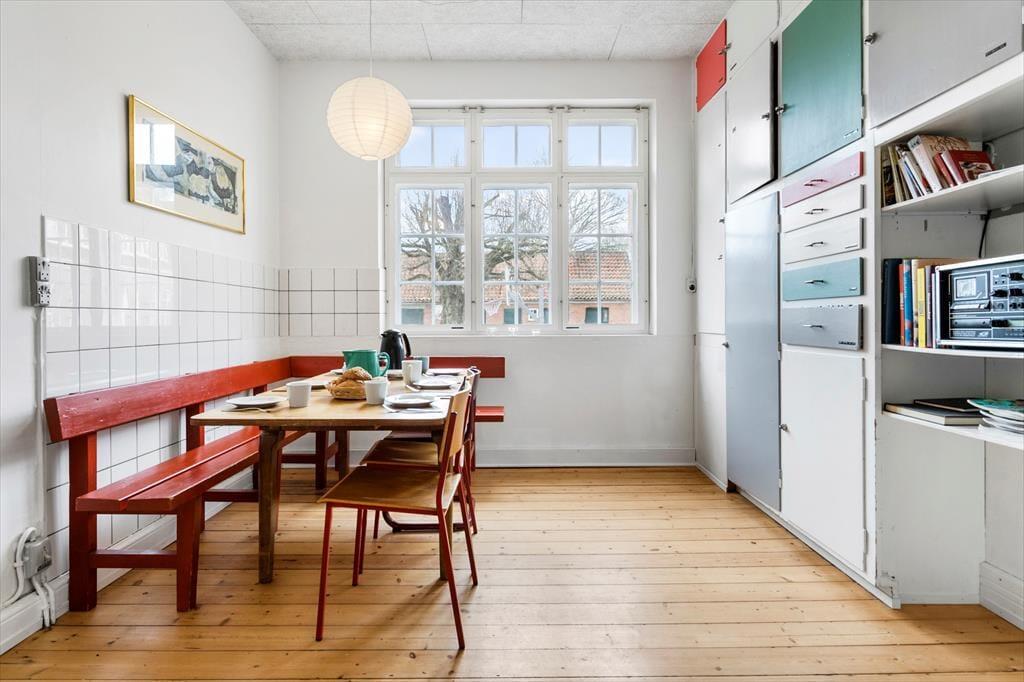 Die Küche ist funktional, und obwohl sie nicht groß ist, gibt es alle notwendigen Einrichtungen, um die Mahlzeiten hier zuzubereiten. Im Anschluss an die Küche gibt es einen weiteren Essbereich, wo ihr euch hinsetzen könnt, wenn ihr weniger Personen am Tisch seid oder wenn der Tisch für kreative Tätigkeiten gedeckt werden soll. Das Haus bietet zwei Badezimmer mit originalen Details. Beide Badezimmer sind hell und einladend. Die alte Schule in Nordby ist eine ganz besondere Ferienunterkunft, die euch ein außergewöhnliches Erlebnis bietet. Freut euch auf einen Urlaub in einem Haus, indem es Platz für die Großfamilie oder für viele Freunde in gemütlichem und praktischem Rahmen gibt.
