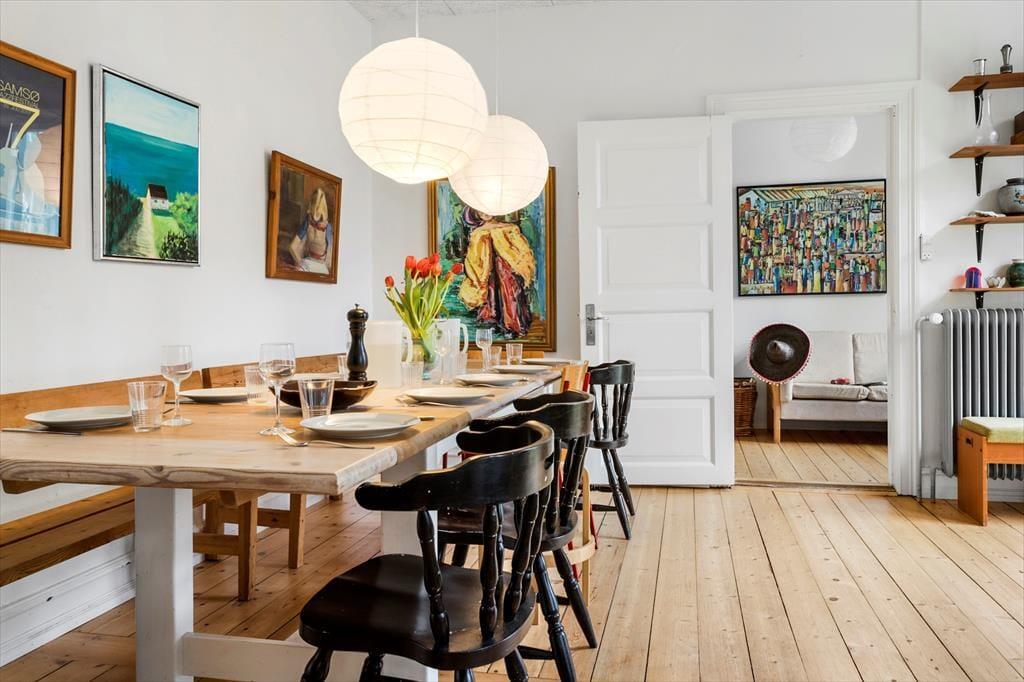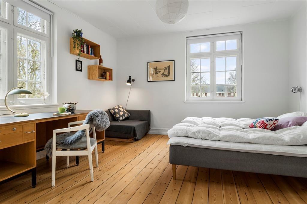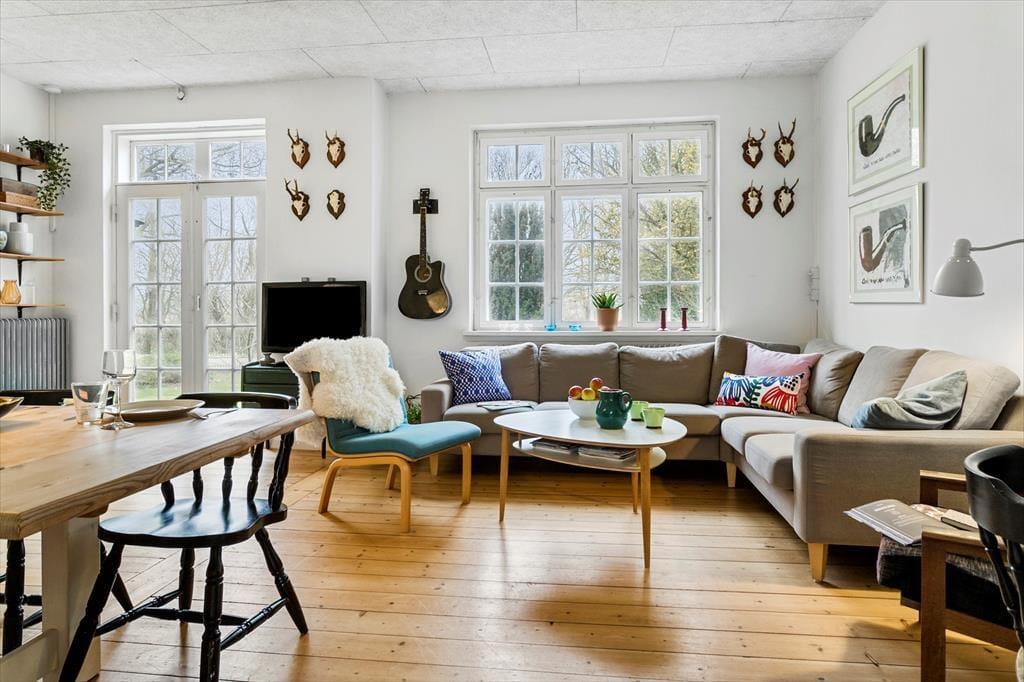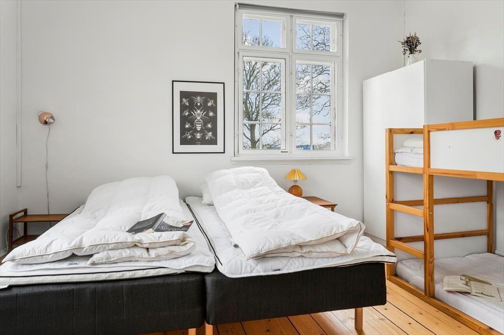 Das Haus ist groß und verfügt über viele geräumige Zimmer, sodass Platz für Familie und Freunde jeden Alters vorhanden ist. Ihr könnt euch im Haus verteilen, sodass du dich ungestört zurückziehen kannst, während gleichzeitig viele Aktivitäten stattfinden können. Die kleinsten Gäste können spielen, ohne die Erwachsenen zu stören, die vielleicht gerade Ausflüge auf Samsø planen. Das Haus ist schön umgebaut, sodass es hell und funktional wirkt und gleichzeitig charmante Details aus der Zeit bewahrt hat, als das Haus als Schule genutzt wurde. Sowohl Kinder als auch Erwachsene fühlen sich in den gemütlich eingerichteten Schlafzimmern und Aufenthaltsräumen wohl.