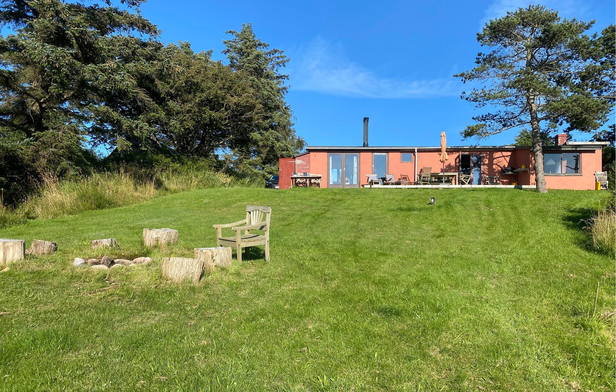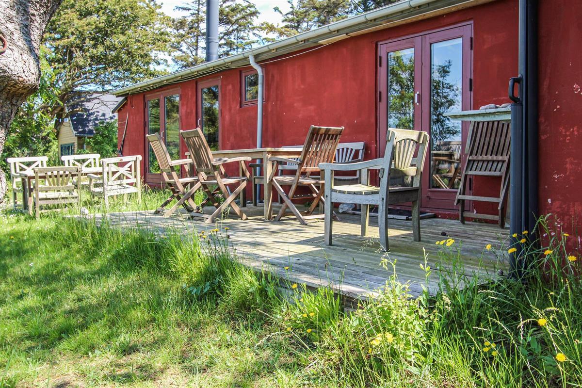 Het huis ligt aan het einde van een doodlopende weg, ver weg van de dichtstbijzijnde buren - midden in de open en wilde natuur, waar je kunt genieten van ongestoorde rust en stilte. Blijf hangen op een van de twee terrassen of ga gewoon zitten met een glas wijn voor het schilderachtige uitzicht op het kustlandschap en de zee. Het pand leidt direct naar het water en heeft een eigen pad en trappen direct naar het strand.