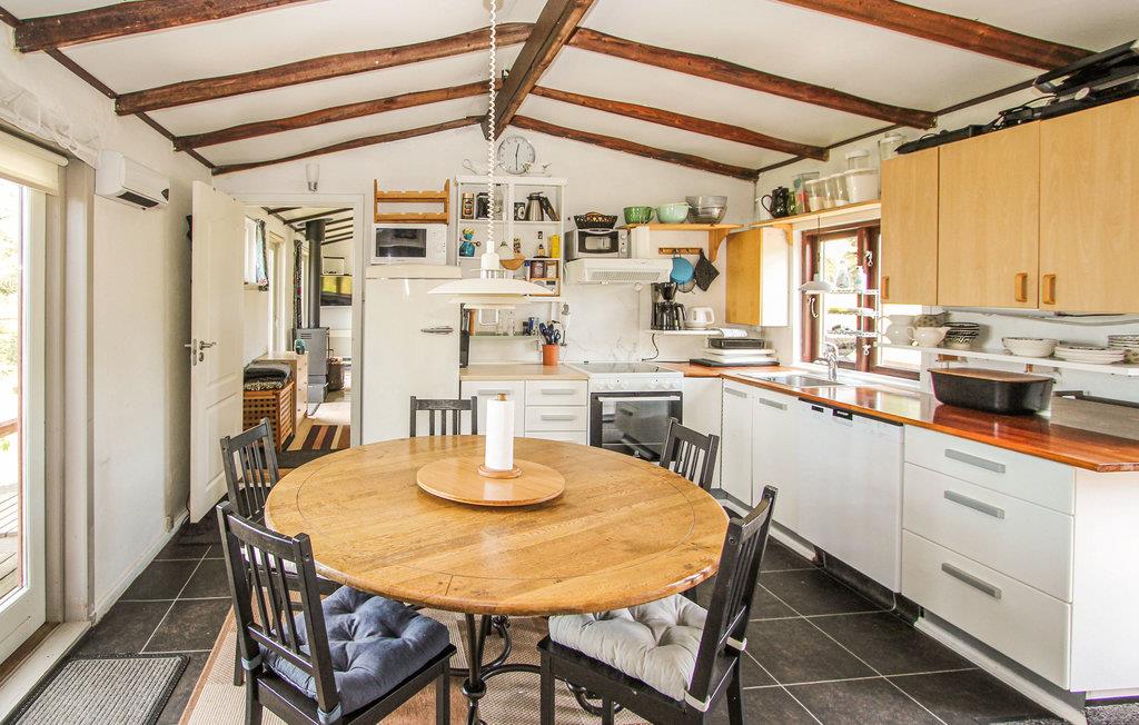 Eerste rij aan het water met vrij uitzicht op zee vanaf het terras en de woonkamers op het westen. Hier krijgt u een heel bijzondere kans om midden in de prachtige natuur van Nordsamsø te wonen met een fantastisch uitzicht op zee. Ontspan in de woonkamer, die je verwelkomt met een houtkachel en een panoramisch uitzicht op het Kattegat, waar je kunt genieten van de zonsondergang en, met een beetje geluk, een kudde bruinvissen in het water of herten in de heuvels kunt zien. Geniet van culinaire hoogstandjes, want het huis heeft een goed uitgeruste keuken voor alle soorten kookkunsten en je kunt buiten barbecueën. Maak het jezelf gemakkelijk in de keuken en profiteer van de directe toegang tot de terrassen, die zowel op het oosten als op het westen liggen.