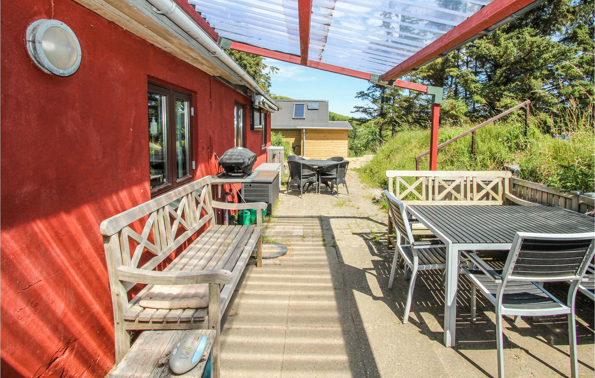 Geniet van je verblijf in dit oudere vakantiehuis op een unieke en afgelegen locatie in het natuurreservaat Nordby Bakker.
