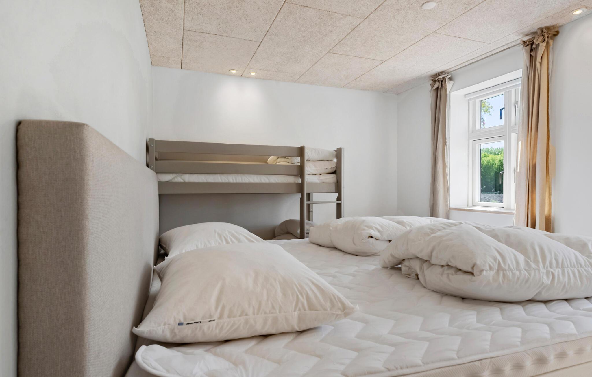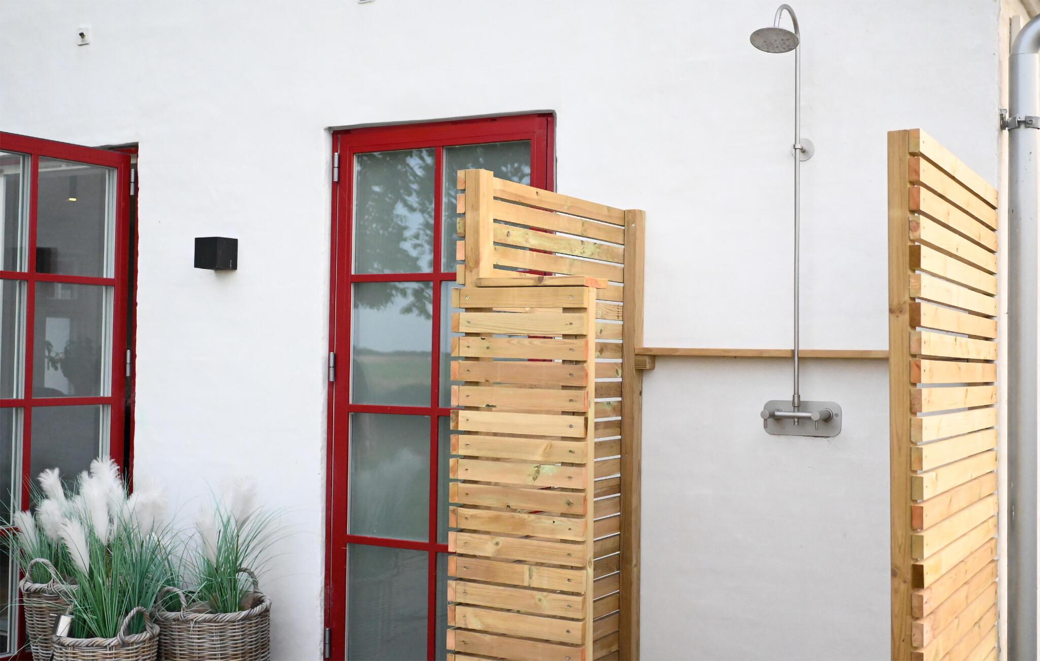 Breng ontspannen dagen door in dit ruime vakantiehuis, dat een lichte en vriendelijke sfeer biedt, genesteld in weidse velden. Stap binnen in de ruime, open woonkamer met stijlvol meubilair. Ontspan op de gezellige hoekbank of neem samen plaats aan de lange eettafel. Terwijl je kookt in de moderne keuken met centraal kookeiland, laat je je blik door de ramen van vloer tot plafond dwalen naar de natuurlijke omgeving. De kamers zijn ingericht volgens een hoge standaard en bieden dankzij hun ruimte volop mogelijkheden om gezellig samen te zijn of rustige uurtjes alleen door te brengen.