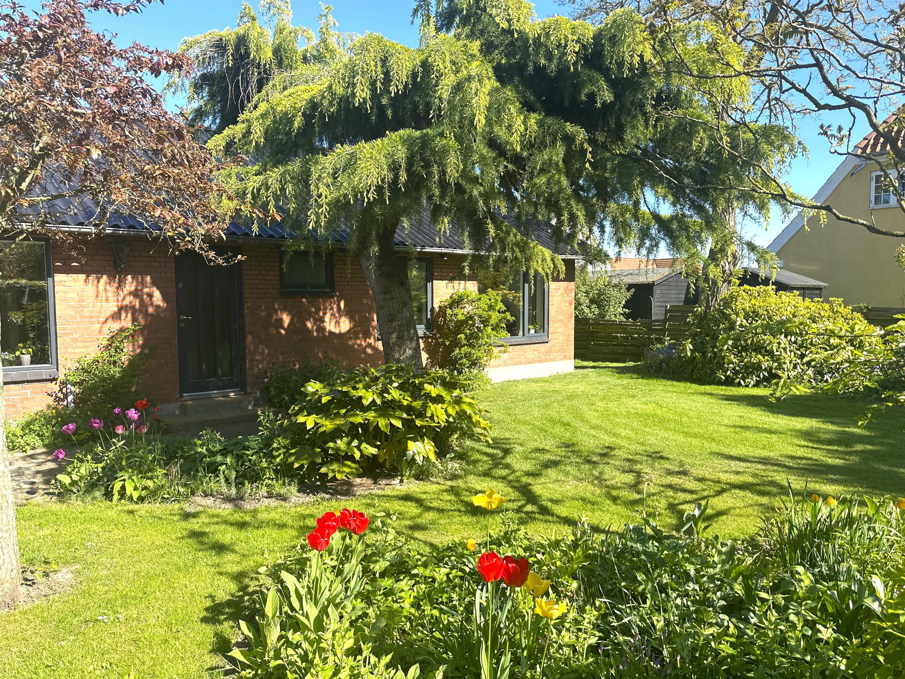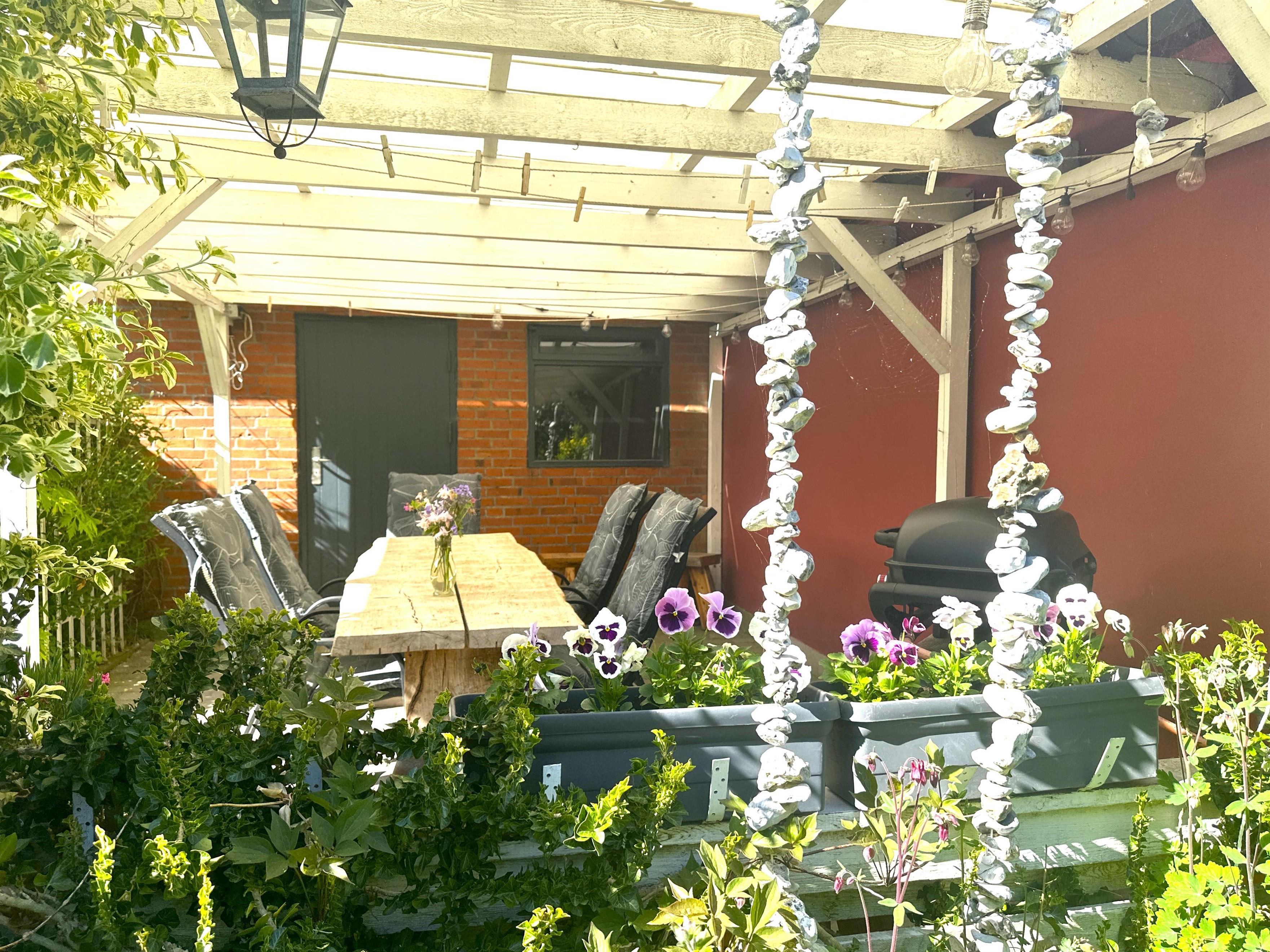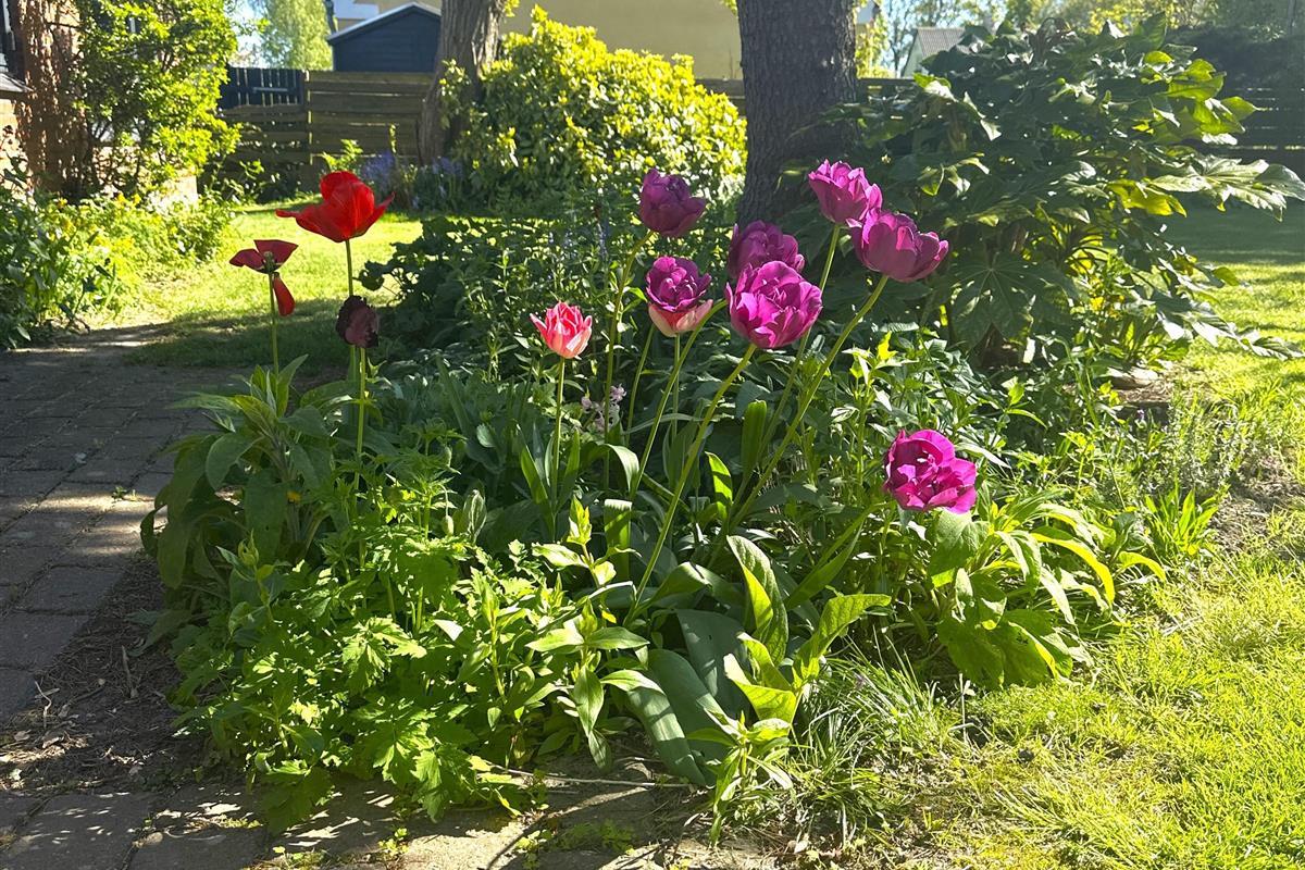 The well-landscaped garden, which was established more than 50 years ago, is a small, peaceful paradise. Here you will find lush vegetation, flowering shrubs and small nooks where you can sit and enjoy the warmth of the sun or simply listen to the birds singing. The garden is perfect for play, relaxation and cosy moments.