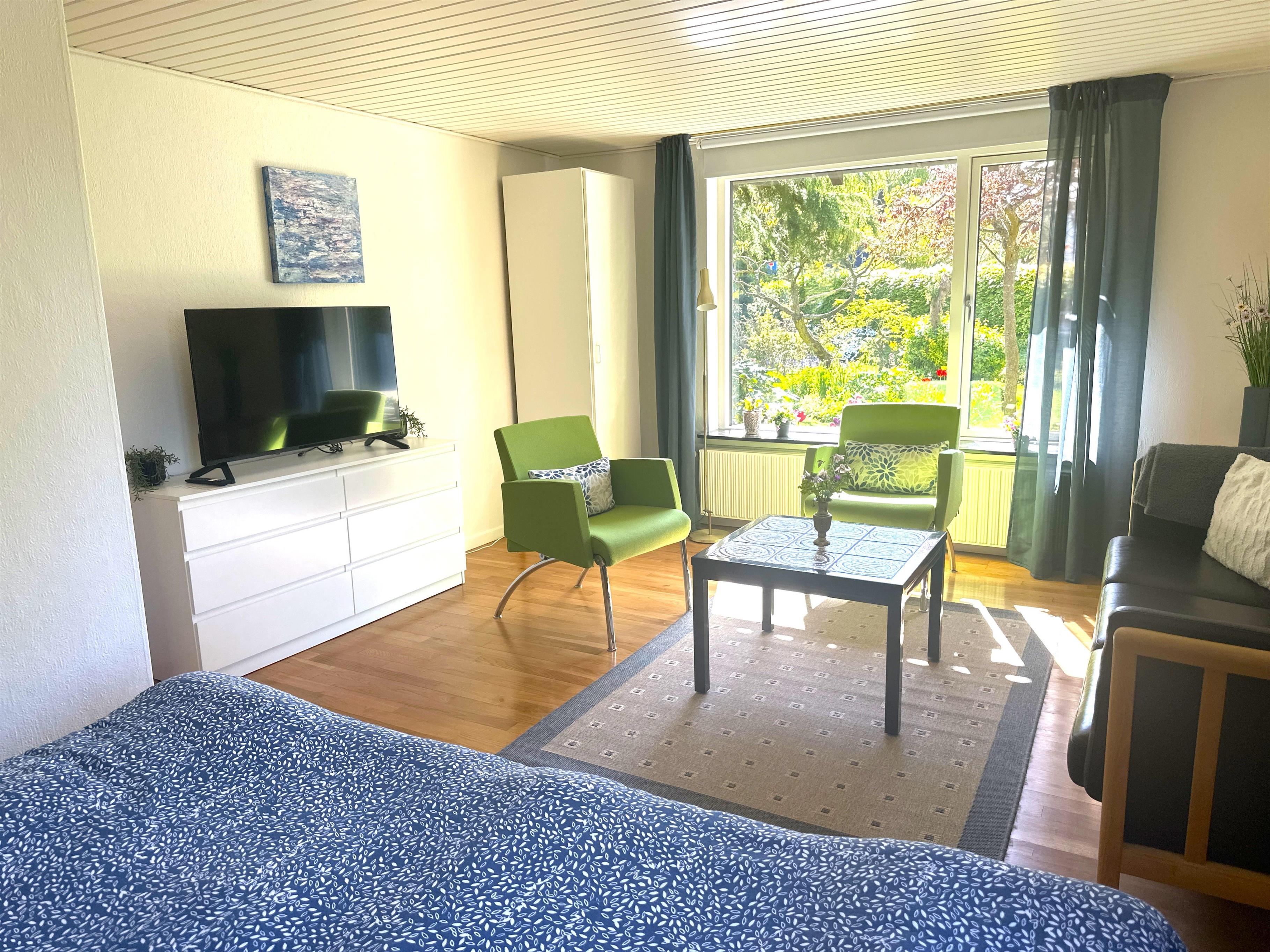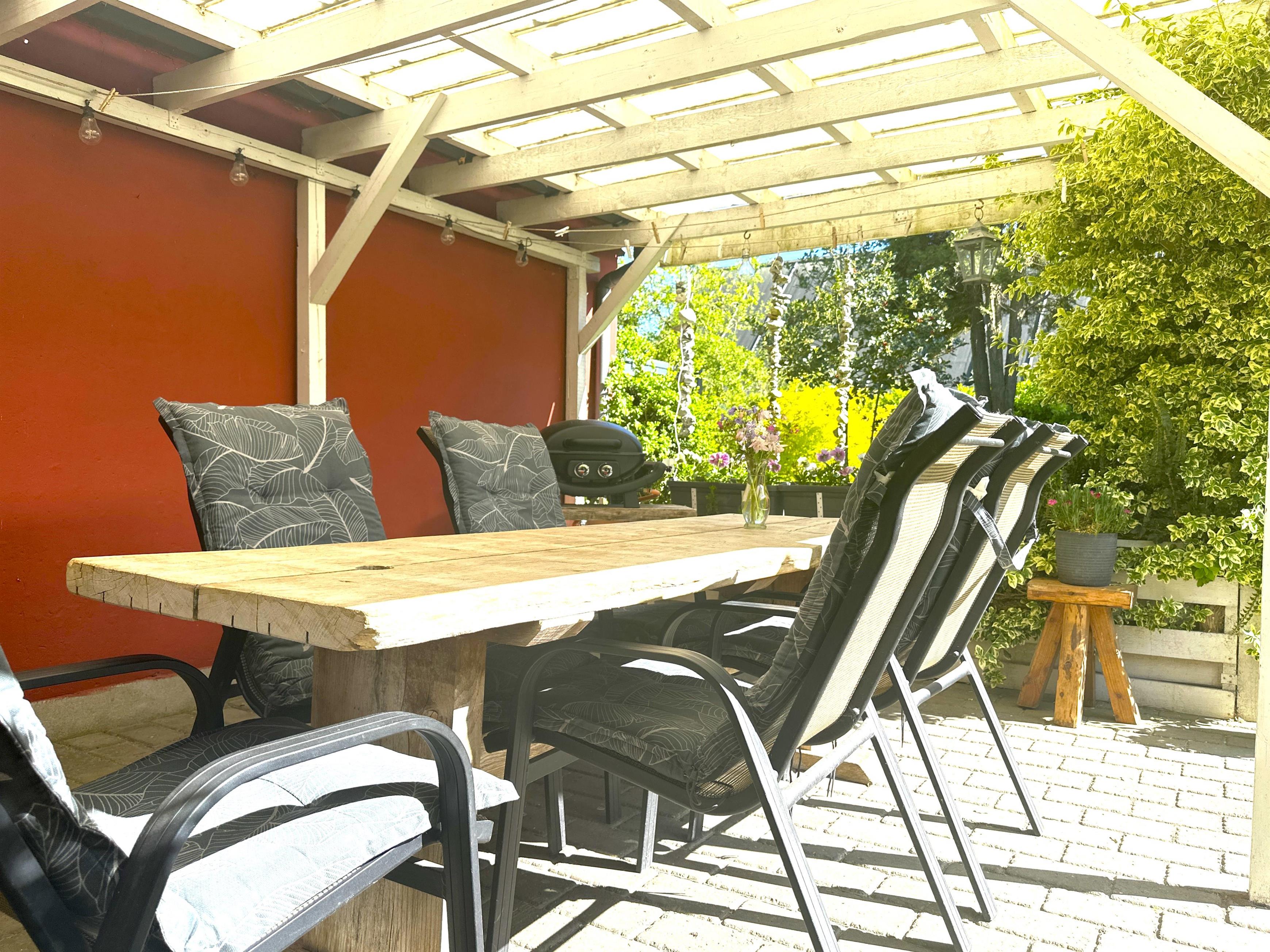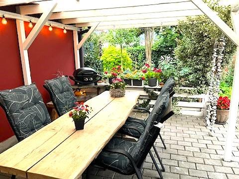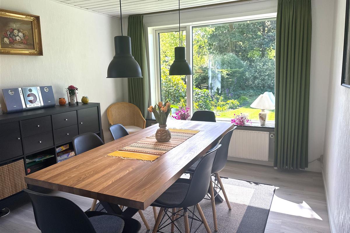 The well-landscaped garden, which was established more than 50 years ago, is a small, peaceful paradise. Here you will find lush vegetation, flowering shrubs and small nooks where you can sit and enjoy the warmth of the sun or simply listen to the birds singing. The garden is perfect for play, relaxation and cosy moments.