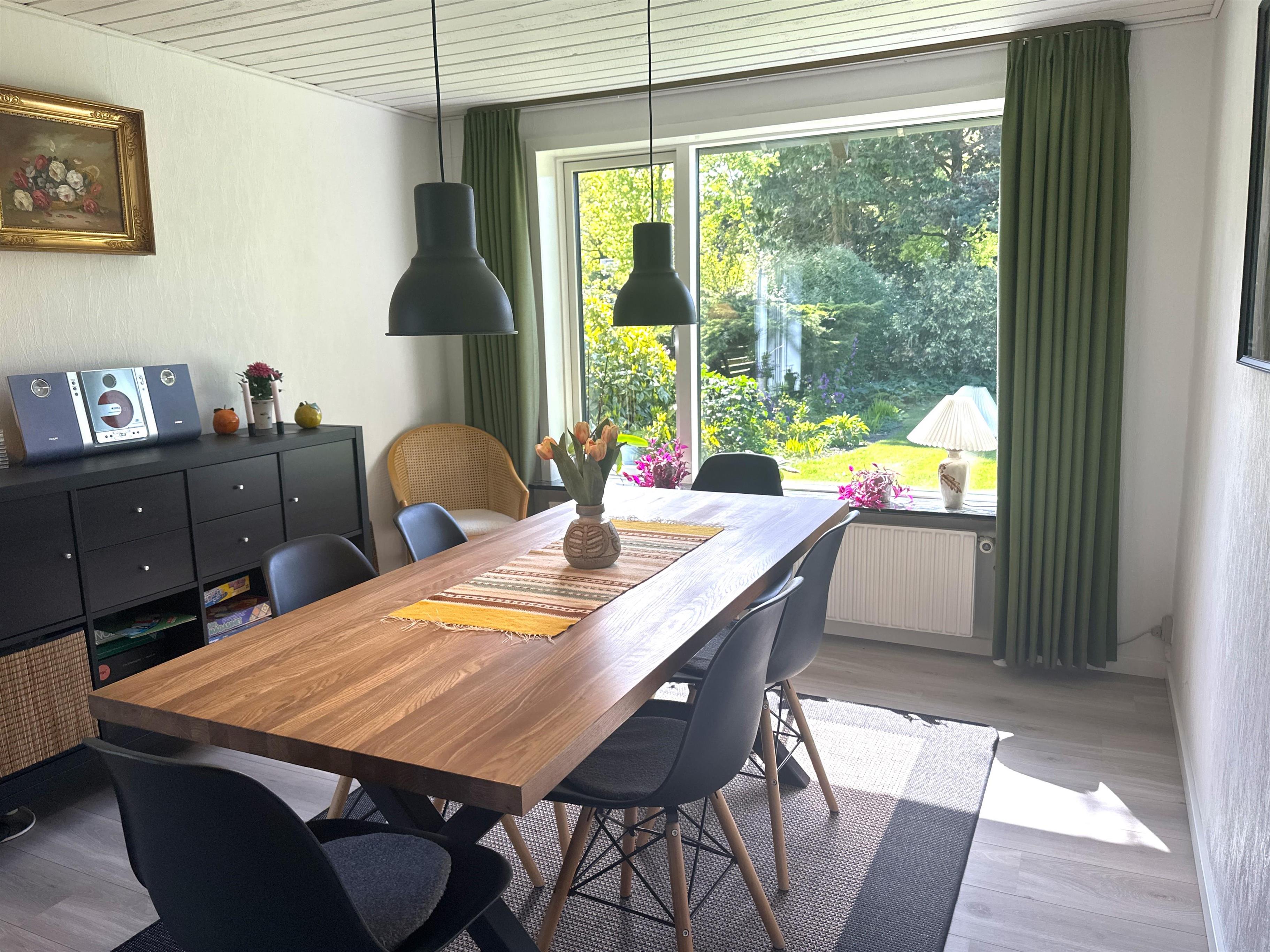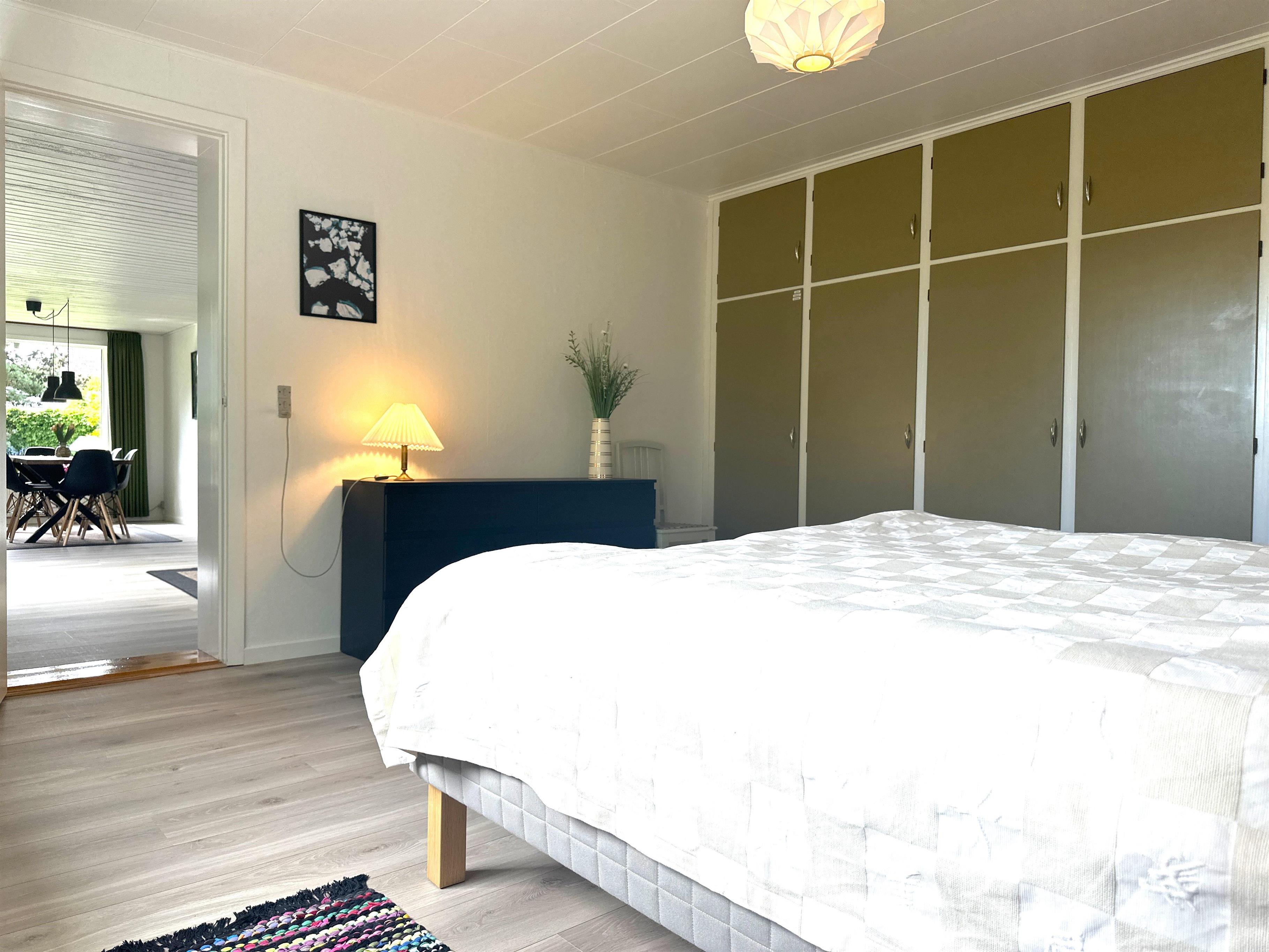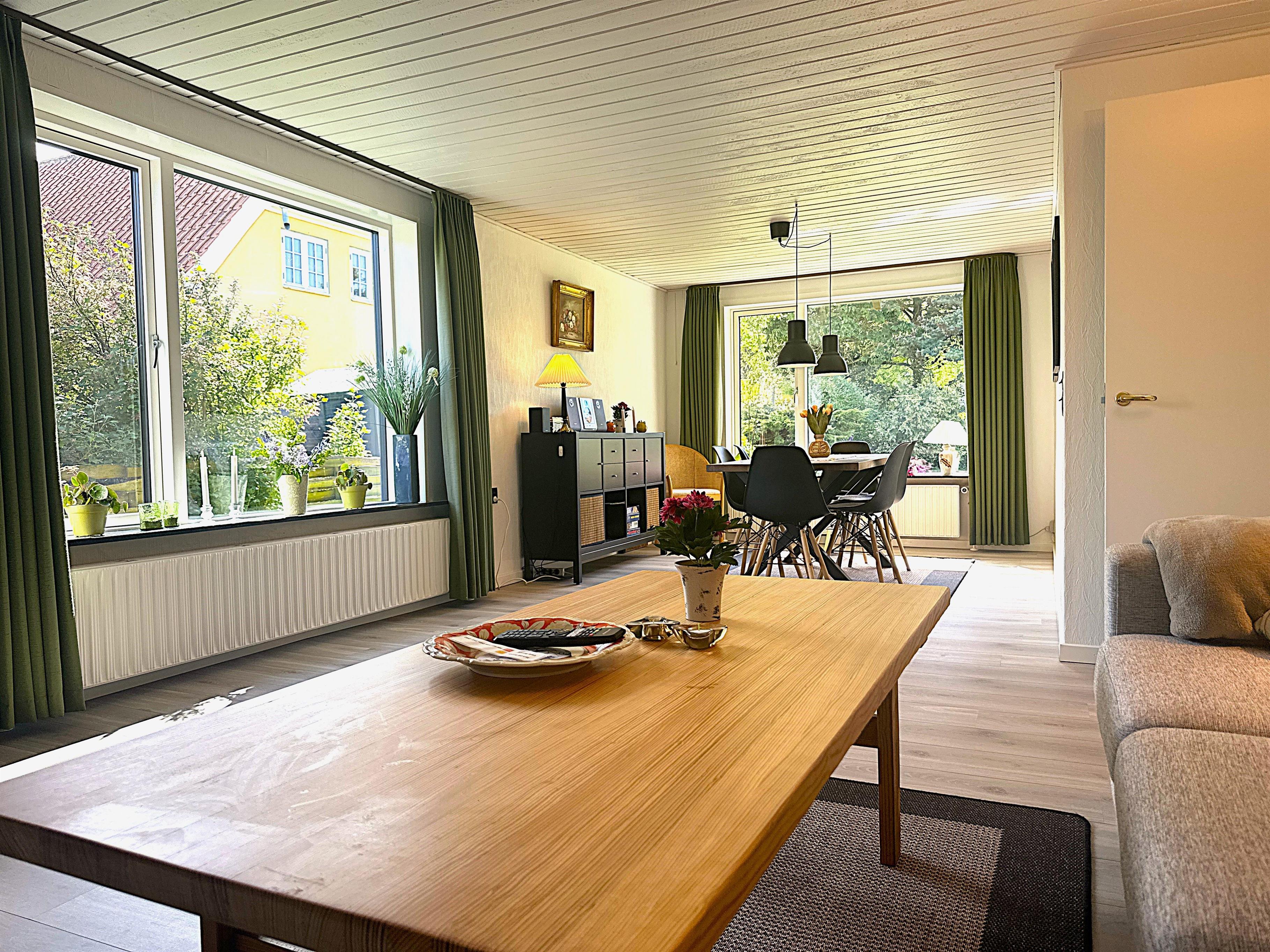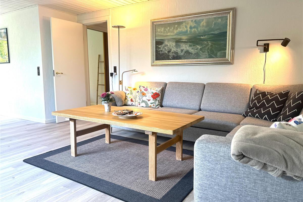 The home has been newly renovated and is bright, modern, and extremely inviting. Here you step into a beautiful living room with large windows that provide lovely natural light and create a friendly atmosphere. The living room is furnished with both a dining area and a comfortable sofa corner where you can sit back with a good book, plan your next excursion, or relax after a day on the go.