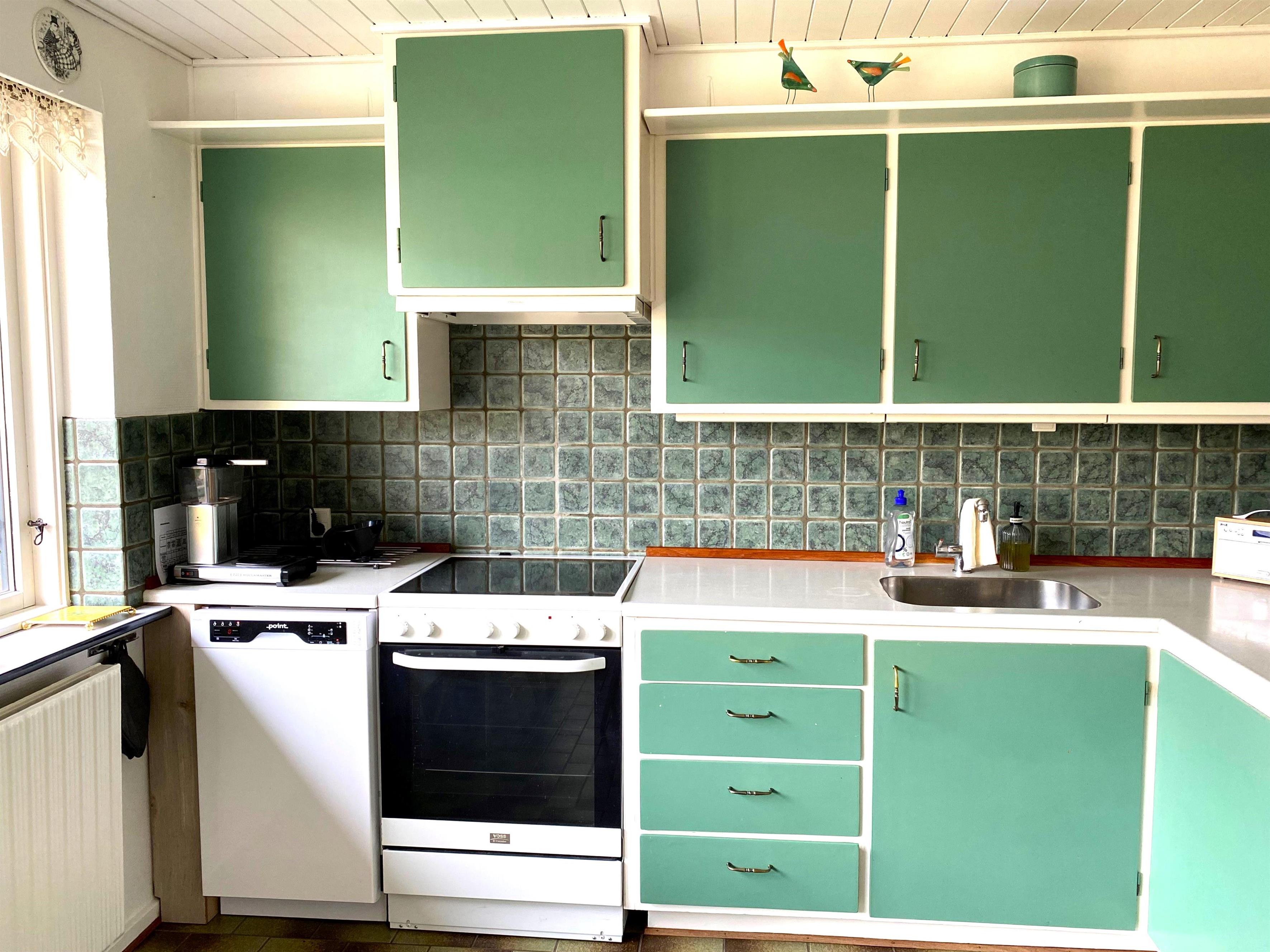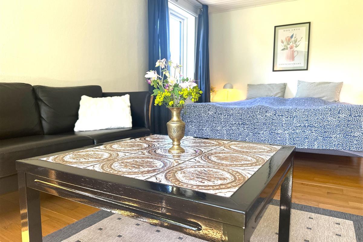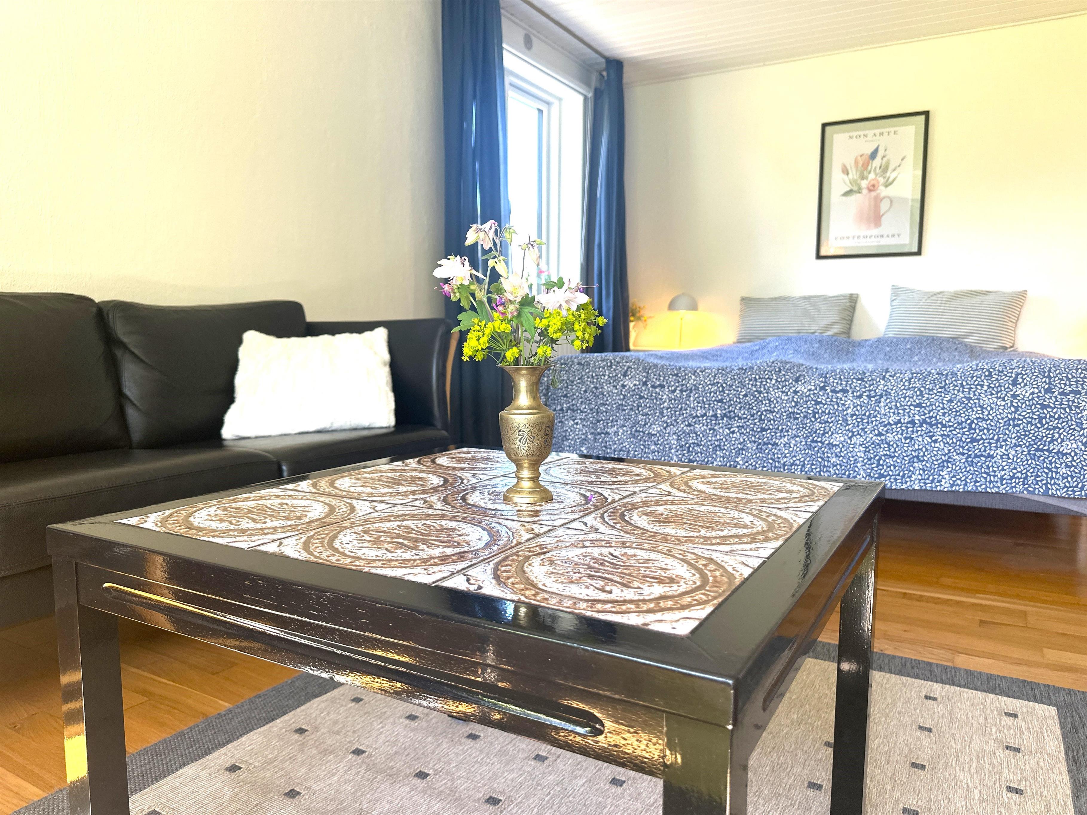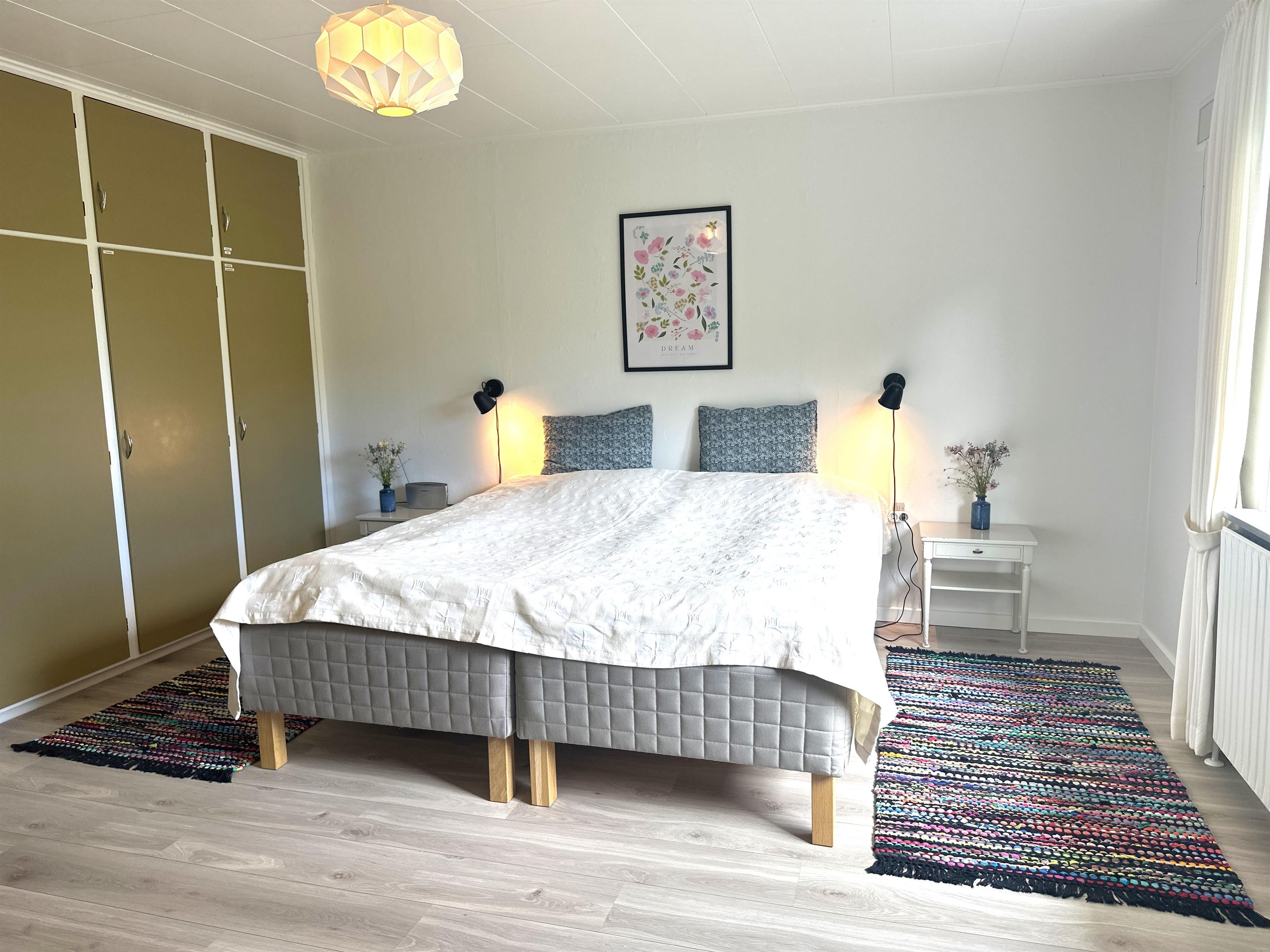 The home has been newly renovated and is bright, modern, and extremely inviting. Here you step into a beautiful living room with large windows that provide lovely natural light and create a friendly atmosphere. The living room is furnished with both a dining area and a comfortable sofa corner where you can sit back with a good book, plan your next excursion, or relax after a day on the go.