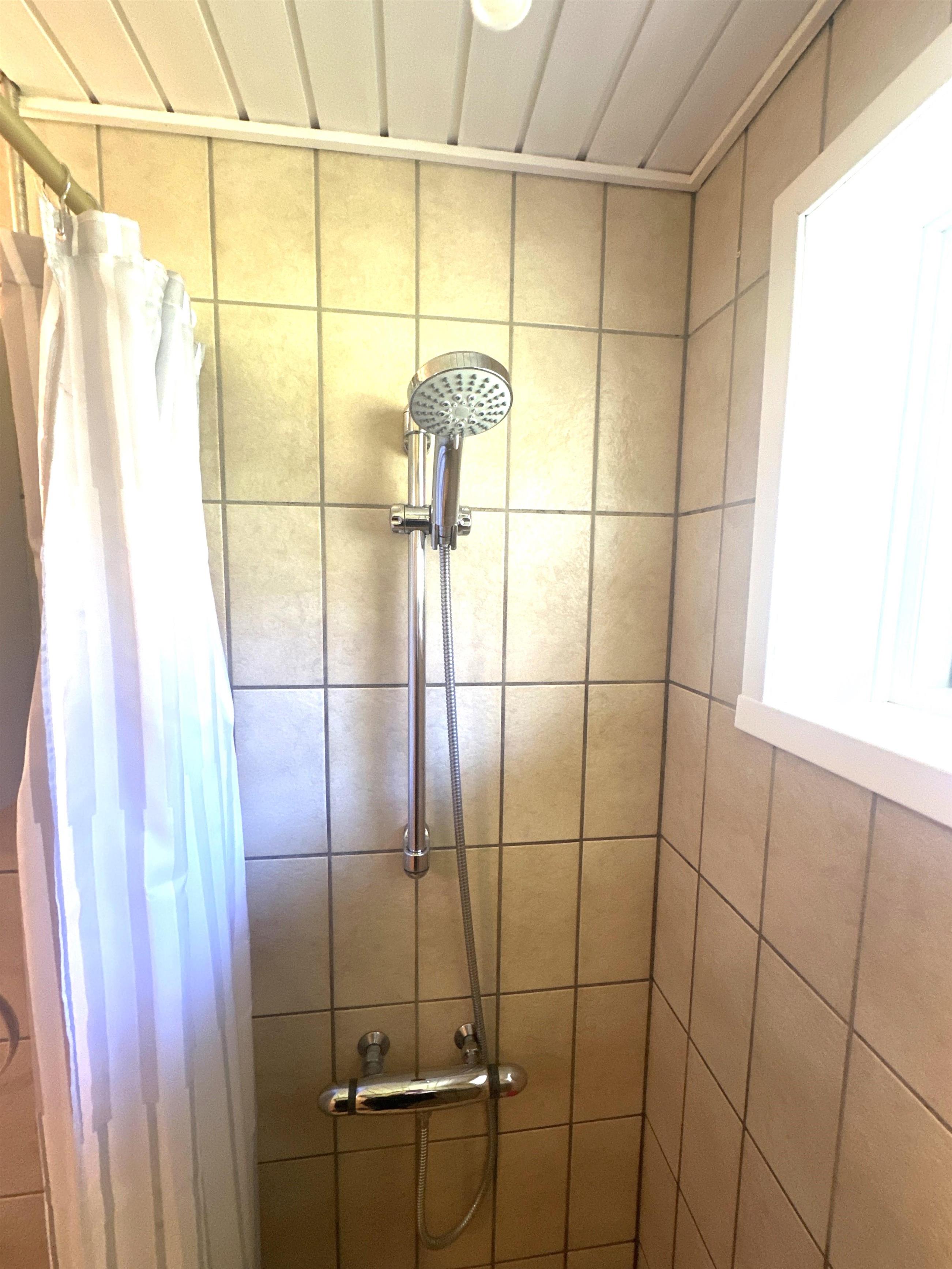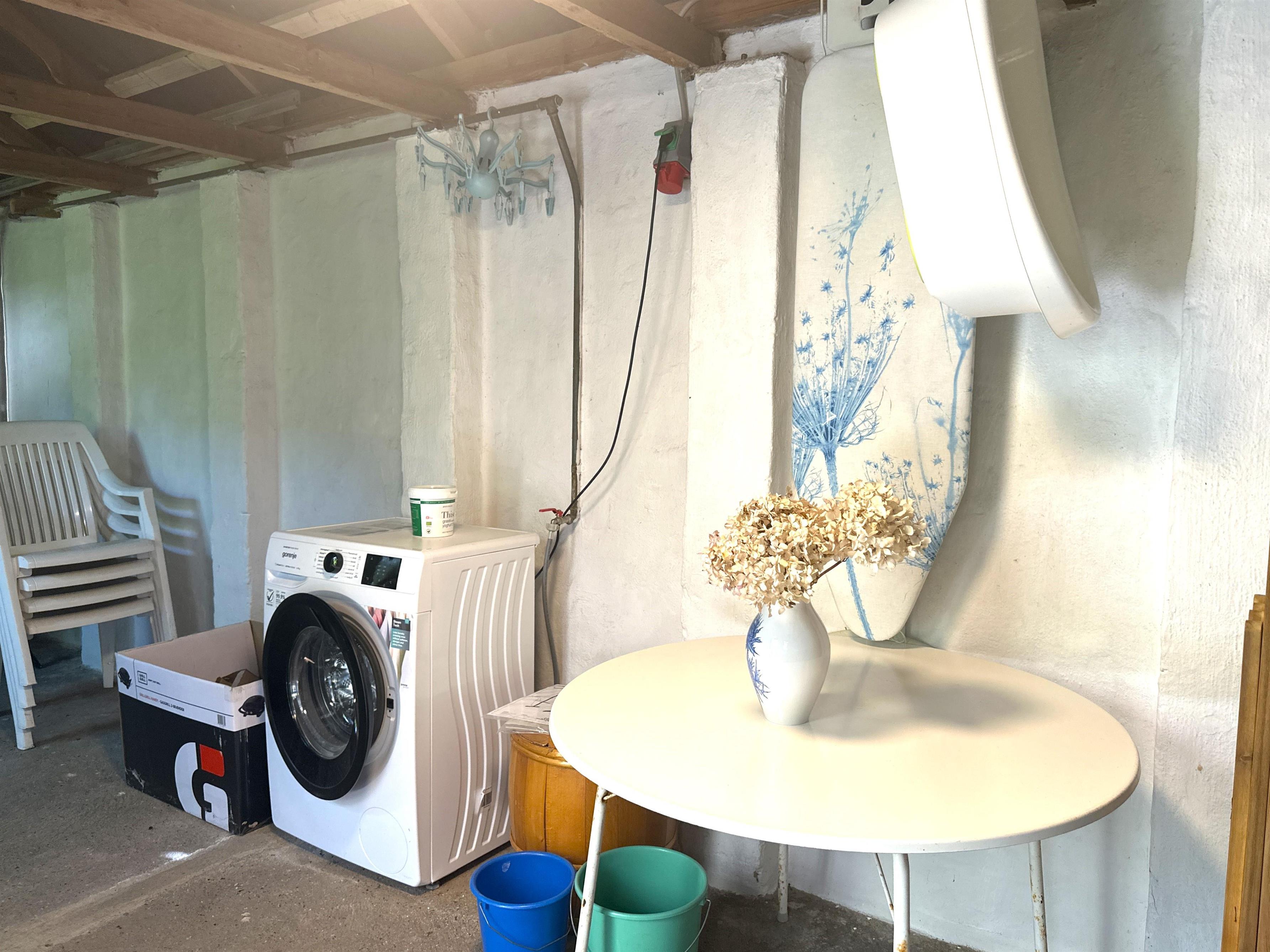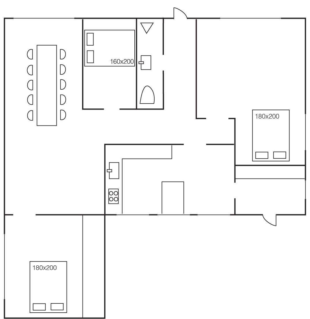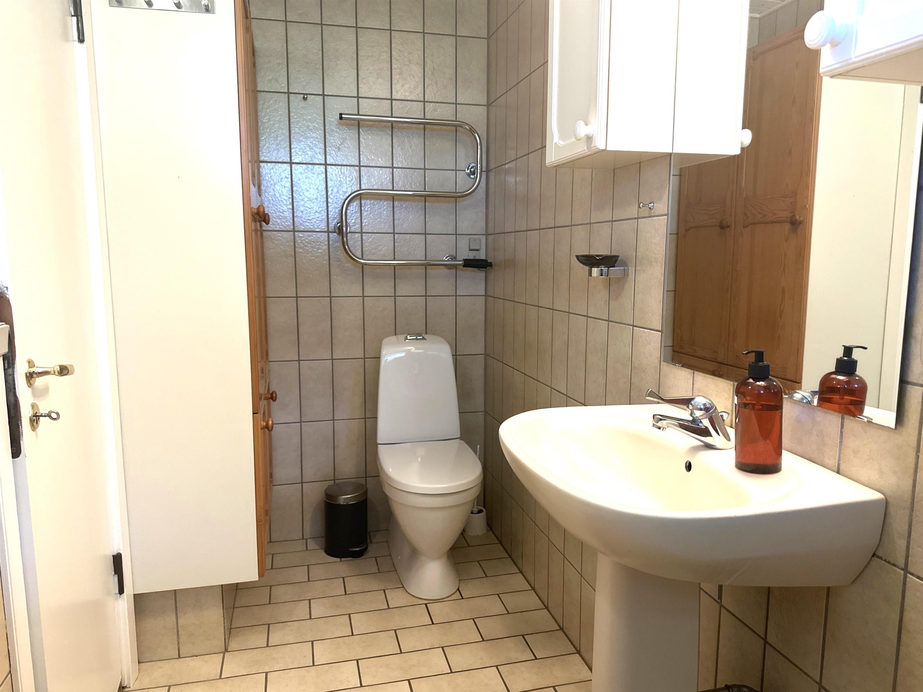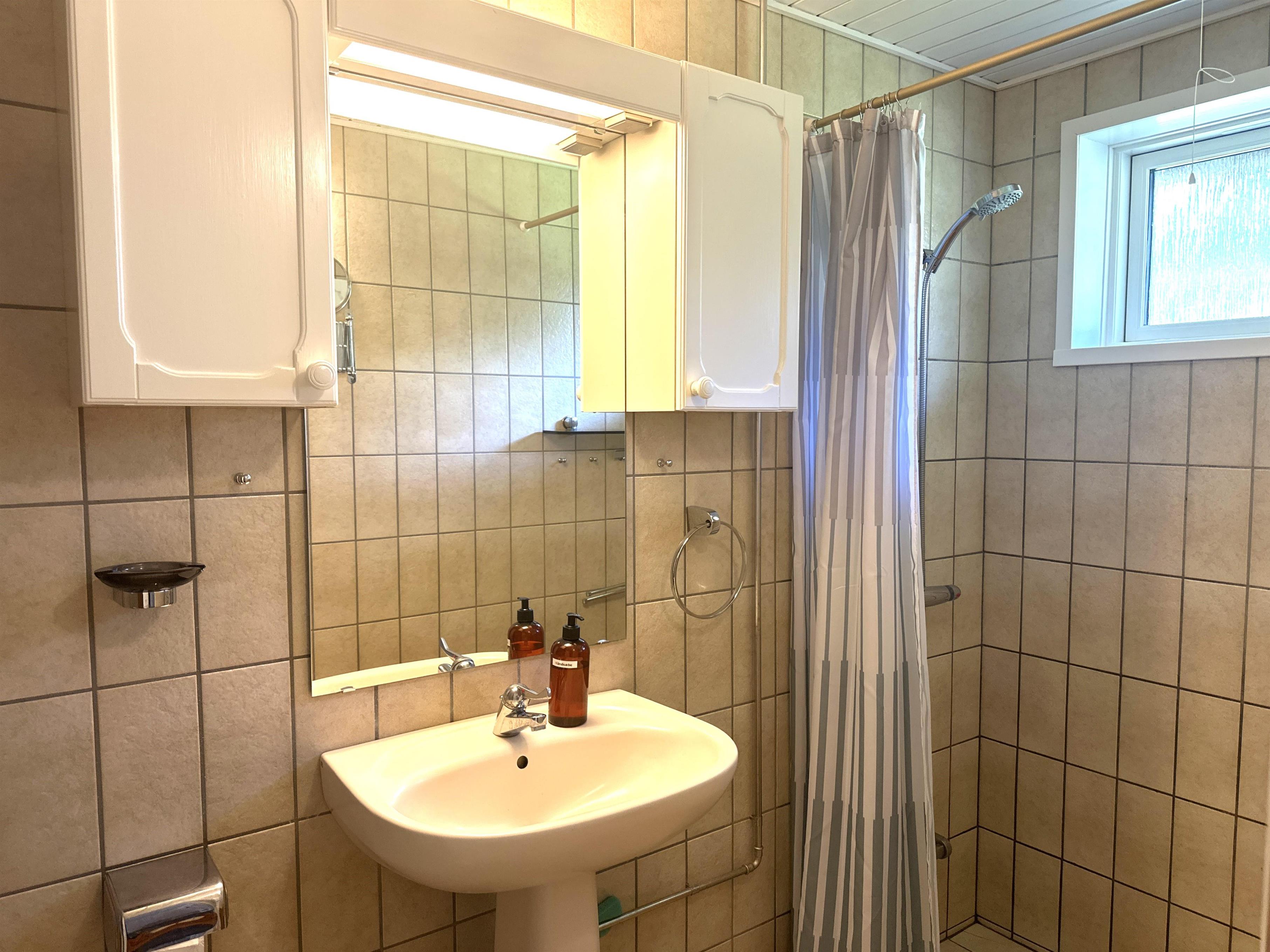 The holiday home offers three spacious bedrooms, all with double beds and plenty of space to relax. In one of the bedrooms, you will find a cosy little nook with a sofa and chairs – a perfect place for those who want a quiet moment alone or for the children to play. The bathroom is bright and modern and equipped with a shower cubicle. In addition, you have a separate laundry room with practical facilities and play equipment for the youngest members of the family.