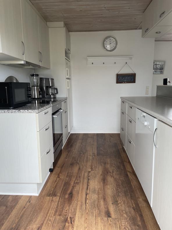 Das Wohnzimmer ist weiß gestrichen und alles sieht hell und freundlich aus. Es gibt Smart TV, damit Sie Kanäle streamen können. In der Küche gibt es einen Herd, einen Kühl- / Gefrierschrank, eine sehr gute Kaffeemaschine, eine Mikrowelle und einen Geschirrspüler. Die Küche hat eine offene Verbindung zum Wohnzimmer, so dass der “Koch” an der Familienhygiene teilnehmen kann - auch während des Kochens.