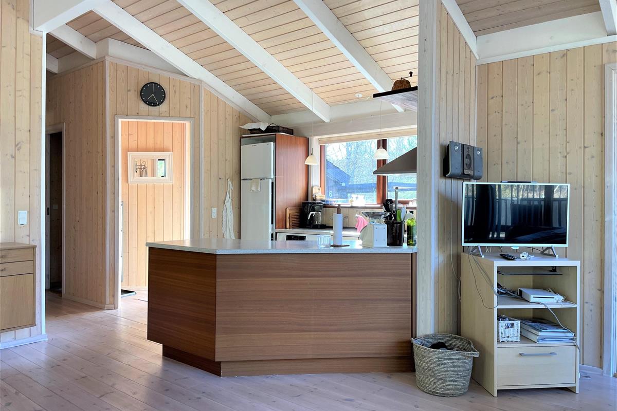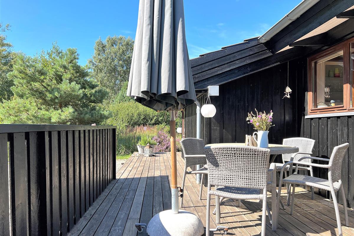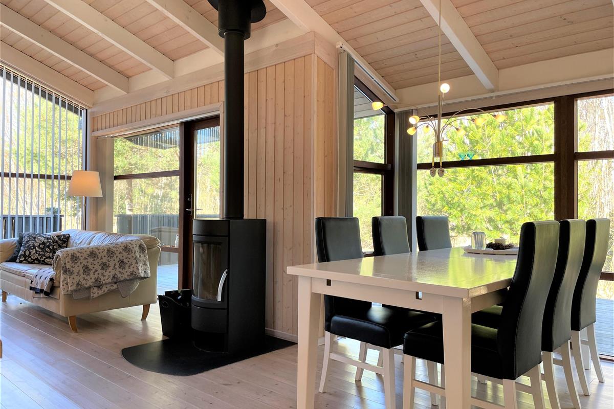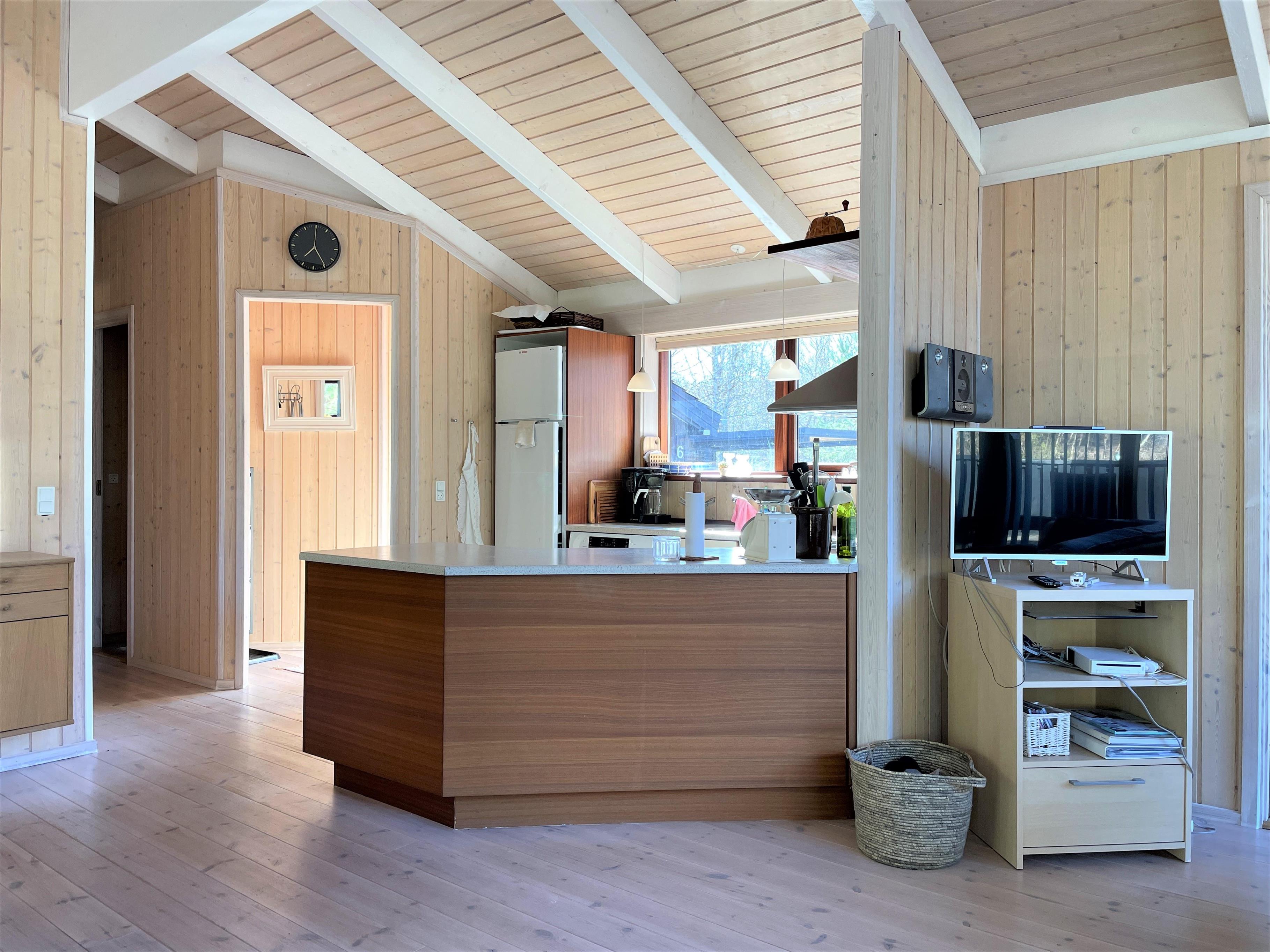 Ein wirklich schönes gut gepflegtes Sommerhaus das friedlich inmitten im Heidegebiet im Nordmarken liegt. Das Haus hat eine moderne Einrichtung, und eine Holzterrasse rund ums Haus, mit Möglichkeiten im Windschatten und Sonnenecken Erholung zu finden. Zudem hat das Haus eine gut funktionierende Küche mit offener Verbindung zum Wohnzimmer mit Tv, wo sie sich vor dem Holzofen gemütlich machen können. Die Grossen Fensterbereiche lassen viel Licht ins Haus, und man fühlt sich nahe der Natur. 3 Schlafzimmer, mit guten Betten, wo 2 mit Doppelbetten und eines mit 2 Einzelbetten ausgestattet ist. Das Haus hat 2 Badezimmer, wo sich Dusche, SPA und Wickeltisch befinden. Im Store Jolle 6 findet man eine richtige Sommerhaus Atmosphäre, in den Wintermonaten vor dem Holzofen,und in den Sommermonaten auf der Terrasse mit langen Sommerabenden. Das Haus hat eine Klimaanlage und ein Anbau mit Waschraum mit Waschmaschine, Tumbler, Bügelbrett mit Bügeleisen. In der schönen Umgebung hat es viele Möglichkeiten für Fahrradtouren/Gehtouren, zum Strand nördlich, oder südlich zum Wattenmeer Bovet. Nahe vom Haus befindet sich auch der schön gelegene Golfplatz, und Østerby Hafen mit Restaurants, gemütlichem Hafenviertel, Fischhandel, Einkaufsmöglichkeiten, und alles können sie Fahrradabstand erreichen.