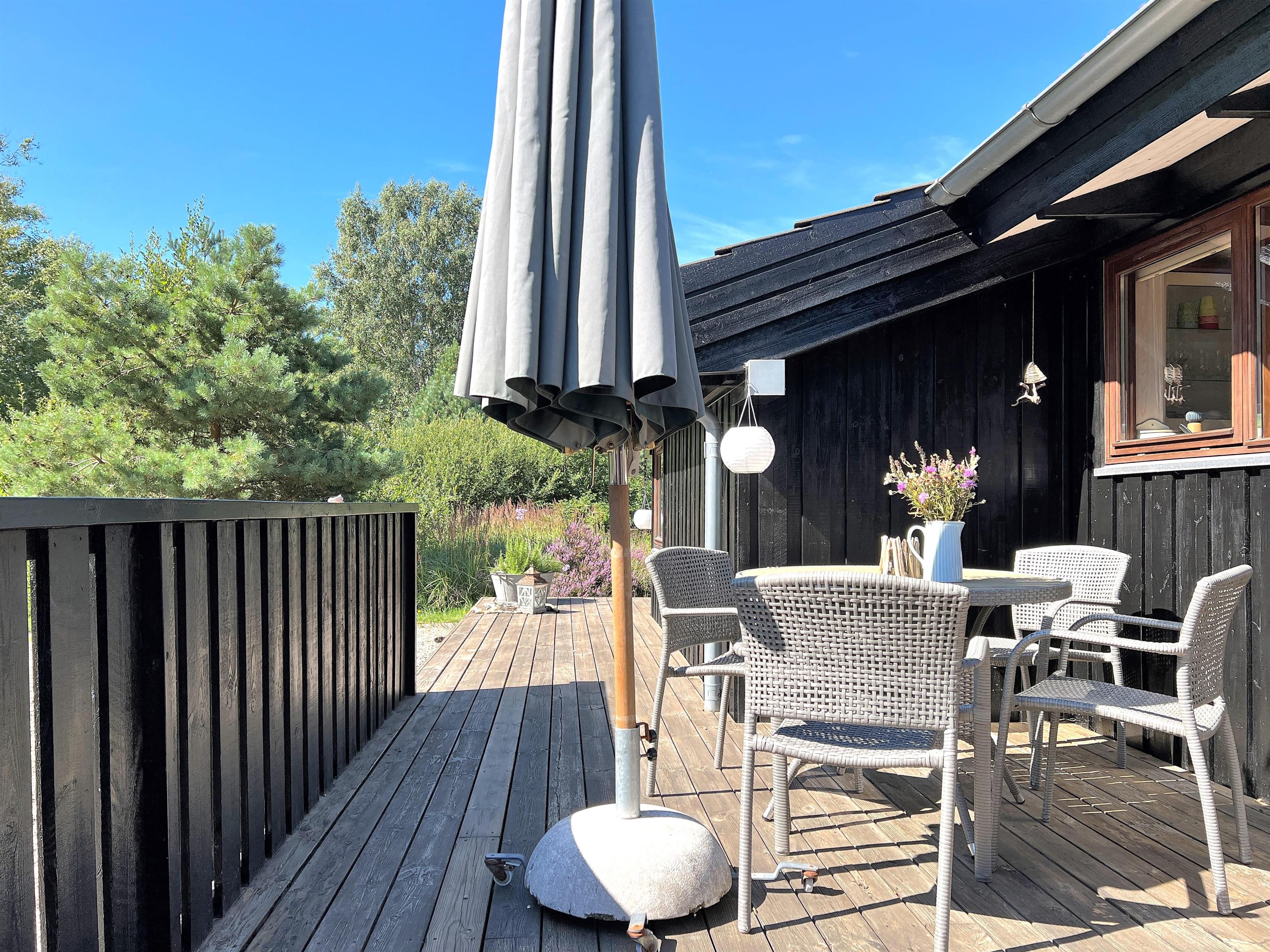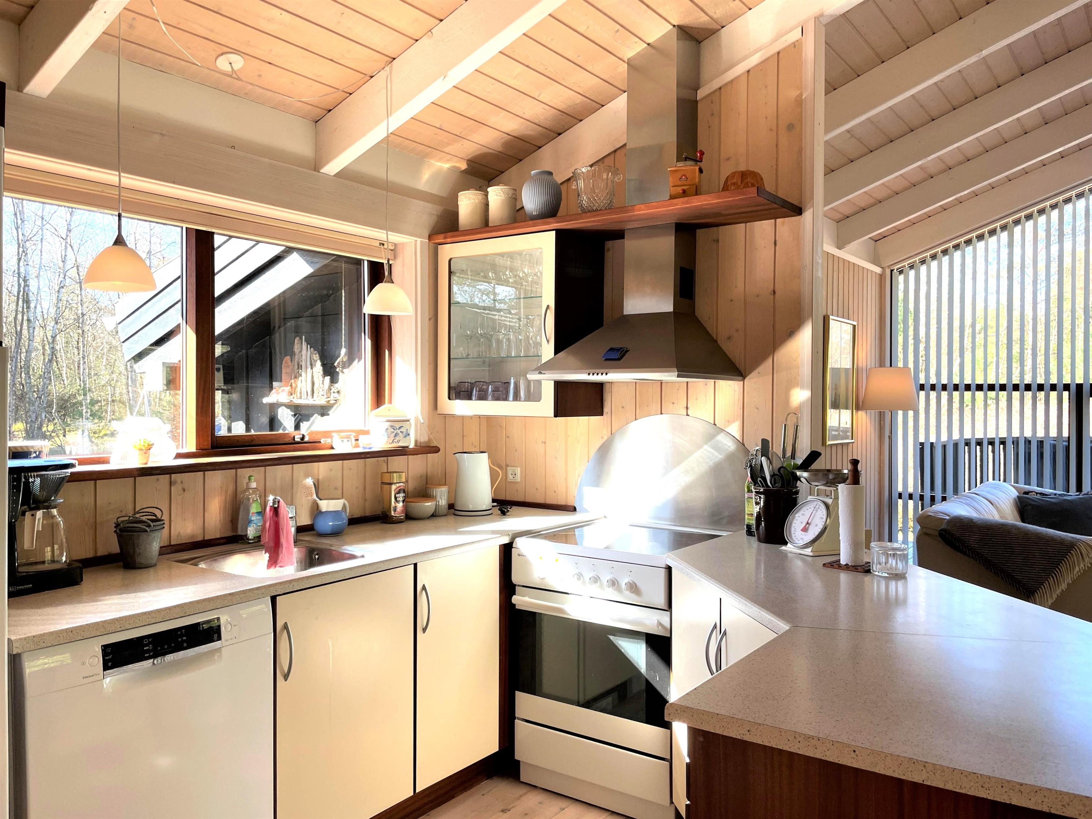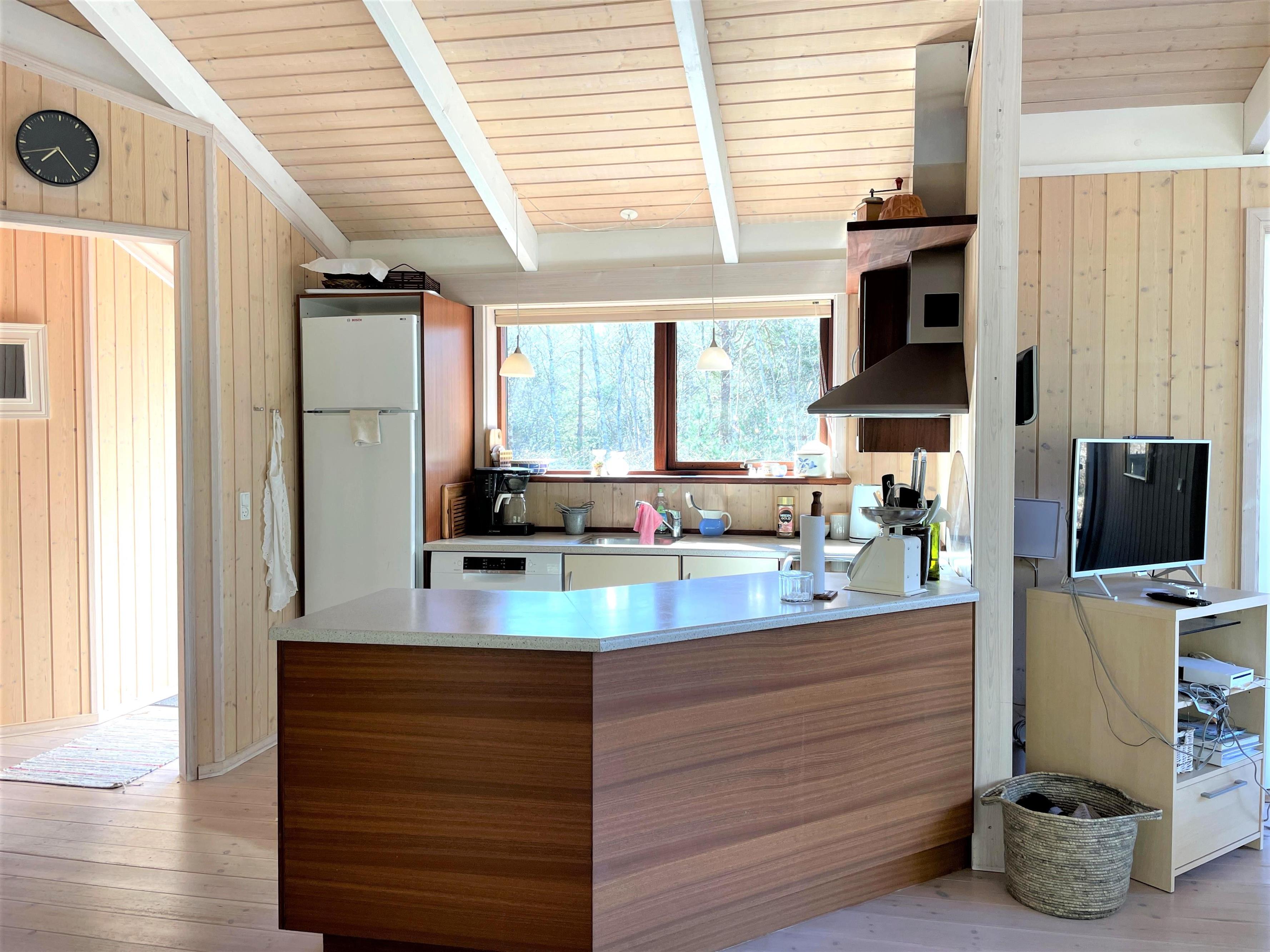 Ein wirklich schönes gut gepflegtes Sommerhaus das friedlich inmitten im Heidegebiet im Nordmarken liegt. Das Haus hat eine moderne Einrichtung, und eine Holzterrasse rund ums Haus, mit Möglichkeiten im Windschatten und Sonnenecken Erholung zu finden. Zudem hat das Haus eine gut funktionierende Küche mit offener Verbindung zum Wohnzimmer mit Tv, wo sie sich vor dem Holzofen gemütlich machen können. Die Grossen Fensterbereiche lassen viel Licht ins Haus, und man fühlt sich nahe der Natur. 3 Schlafzimmer, mit guten Betten, wo 2 mit Doppelbetten und eines mit 2 Einzelbetten ausgestattet ist. Das Haus hat 2 Badezimmer, wo sich Dusche, SPA und Wickeltisch befinden. Im Store Jolle 6 findet man eine richtige Sommerhaus Atmosphäre, in den Wintermonaten vor dem Holzofen,und in den Sommermonaten auf der Terrasse mit langen Sommerabenden. Das Haus hat eine Klimaanlage und ein Anbau mit Waschraum mit Waschmaschine, Tumbler, Bügelbrett mit Bügeleisen. In der schönen Umgebung hat es viele Möglichkeiten für Fahrradtouren/Gehtouren, zum Strand nördlich, oder südlich zum Wattenmeer Bovet. Nahe vom Haus befindet sich auch der schön gelegene Golfplatz, und Østerby Hafen mit Restaurants, gemütlichem Hafenviertel, Fischhandel, Einkaufsmöglichkeiten, und alles können sie Fahrradabstand erreichen.