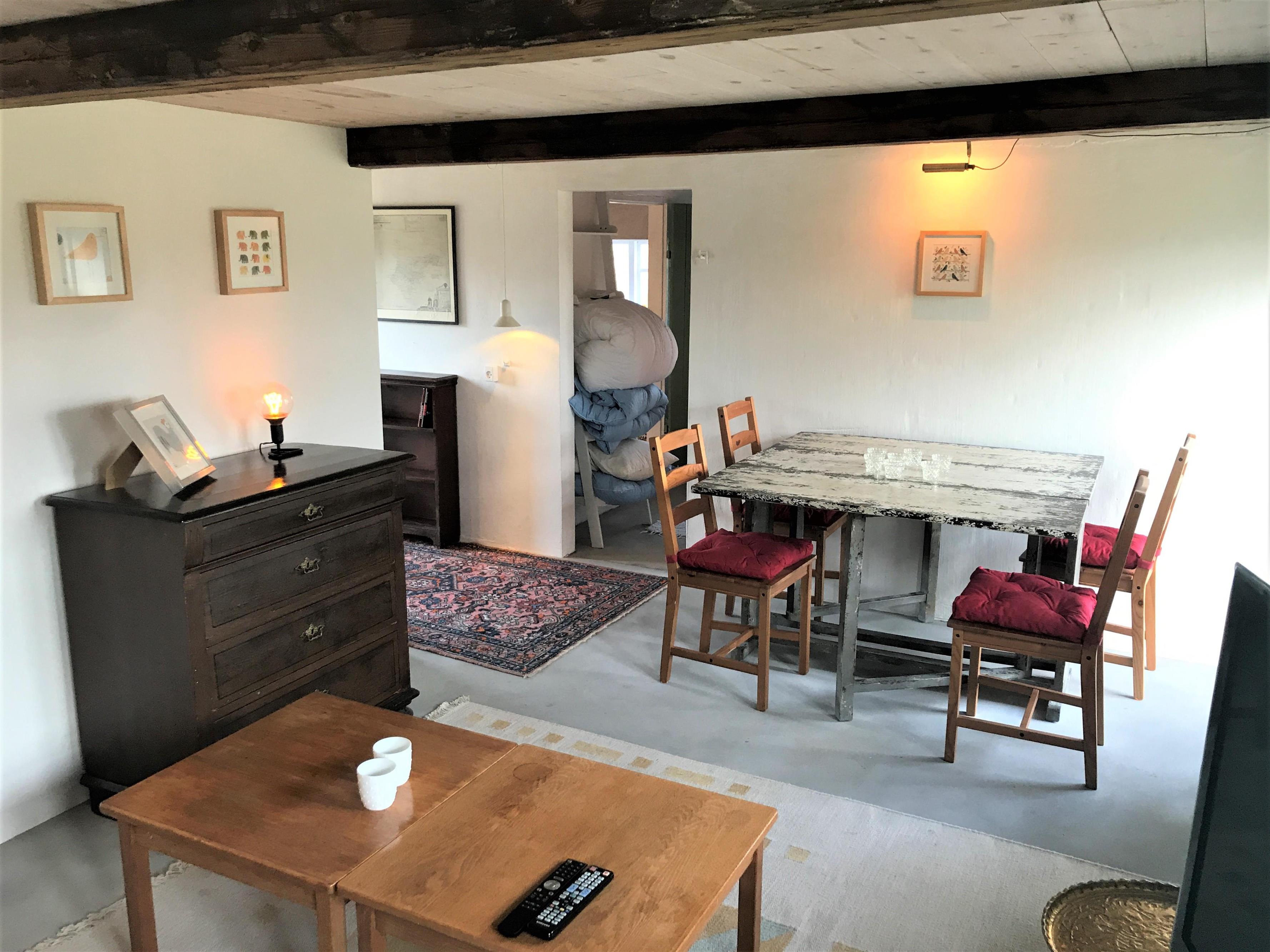 Neu bei Team Laesoe - für 2 Familien. Sehr schöner idylischer Læsø - Hof mit 2 Wohnungen, dass es möglich macht, für 2 Familien schöne Tage zusammen im gleichen Haus zu verbringen.. Wo man sich aber auch gut zurück ziehen kann, wenn erwünscht. Die grössere Wohnung ist mit einem gemütlichen Wohnzimmer mit TV und Holzofen ausgerüstet. Feine neue Küche mit Essplatz, ein Zimmer mit Doppelbett, und eines mit 2 Einzelbetten die im Zwischengang liegen. Stilvolles Badezimmer mit Dusche.