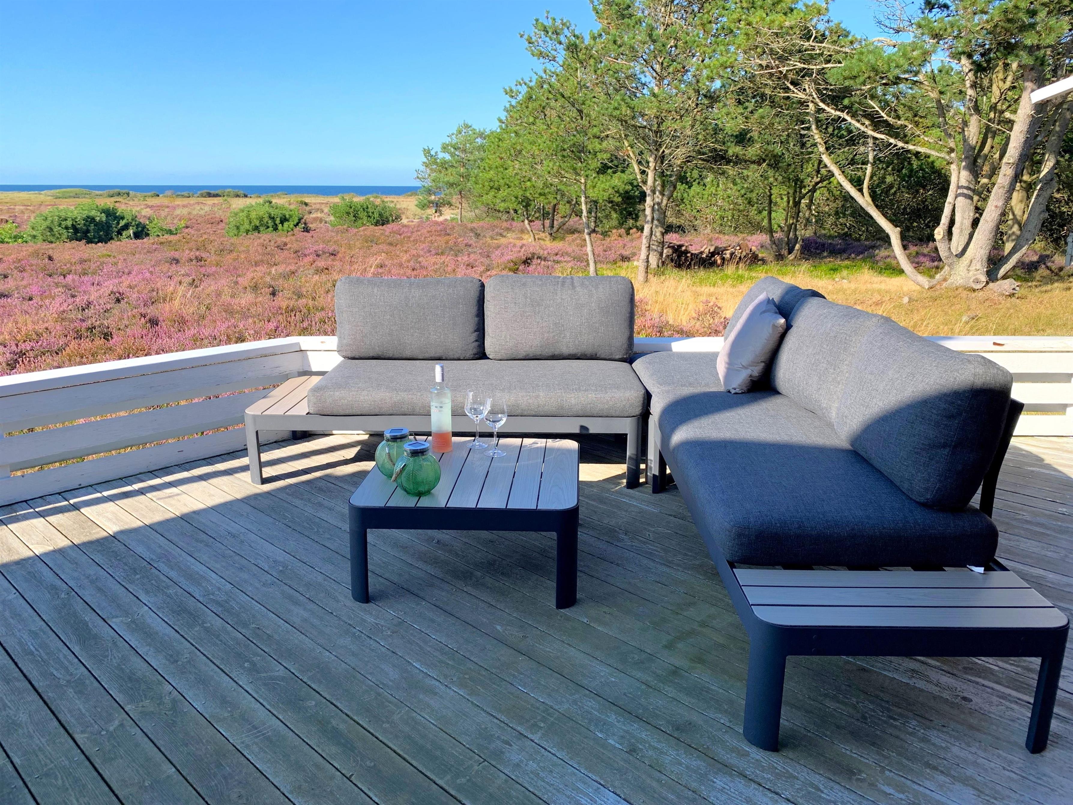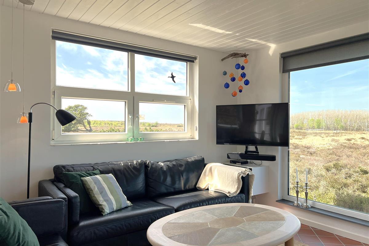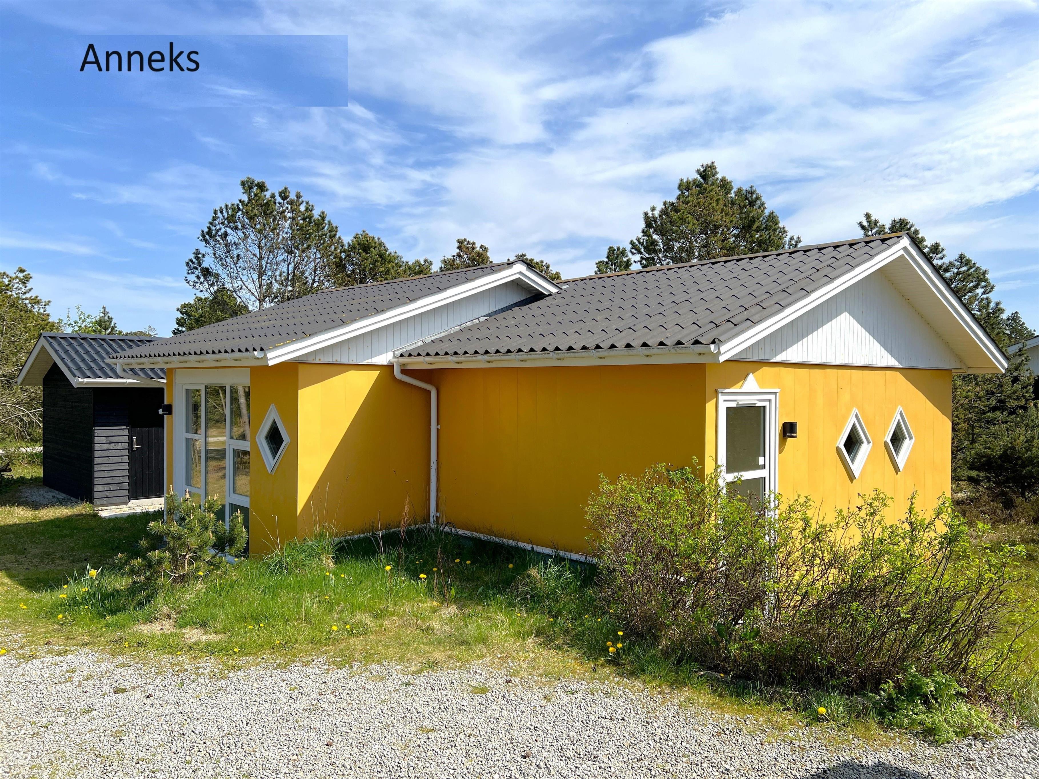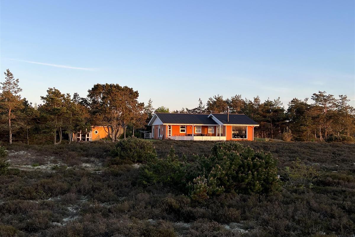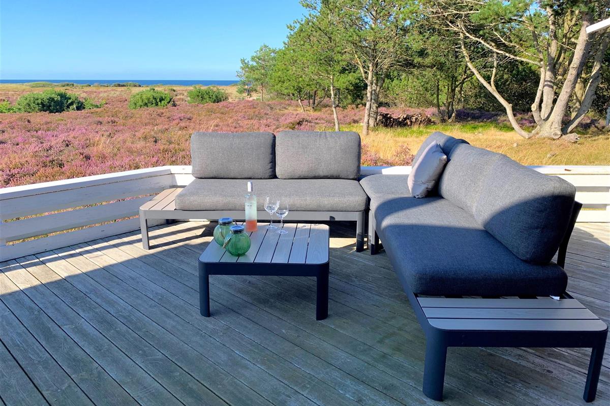 NEU beim Team Læsø. Ein traumhaft schönes, geräumiges Ferienhaus mit einer einzigartigen Lage, die man in Nordmarken kaum besser finden kann. Sowohl vom Haus als auch von den Terrassen und dem Nebengebäude aus hat man einen unglaublich schönen Panoramablick auf das Meer und die Gebäude liegen auf einem wunderschönen, unberührten Naturgrundstück, auf dem die Heide dominiert. Der Abstand zwischen dem Haupthaus und dem Nebengebäude ist relativ kurz und Sie können problemlos zwischen den beiden Wohnungen wechseln. Das Haupthaus wirkt hell und einladend und die großen Fenster sorgen für viel Licht. Schöne und gut ausgestattete Küche in offener Verbindung zum Esszimmer. Das Haus verfügt über ein schönes Wohnzimmer mit bequemen Möbeln, Holzofen und Fernseher sowie Zugang zu einer teilweise überdachten Holzterrasse. Es gibt zwei große Schlafzimmer mit Doppelbetten, eines davon mit Meerblick und Zugang zu einer Terrasse. Das Badezimmer mit Sauna und Dusche wirkt praktisch, schön und einladend. Der 50 m2 große Anbau bietet wie das Haupthaus viel Licht und Meerblick und verfügt über ein weiteres großes Schlafzimmer mit einem Doppelbett und einem Kinderbett. Darüber hinaus ein schöner Aktivitätsraum mit mehreren verschiedenen Spielen - Tischfußball, Darts, Bobfahren, Tischstockschießen usw. Karten-/Brettspiele und Bücher und eine wirklich gemütliche Bar, in der Jung und Alt ihren Durst stillen können. Das Haus verfügt über ein starkes Glasfasernetz und ist insgesamt sehr gut ausgestattet. Rund um das Haus stehen Ihnen mehrere schöne Liegeflächen und Terrassen mit Gartenmöbeln und Sonnenliegen zur Verfügung. Hier kann auch der Grill des Hauses genutzt werden, während man den wunderschönen Sonnenuntergang über dem Meer genießt. Zusammen mit der Aussicht, dem wunderschönen Naturgrundstück und der ruhigen Lage spüren Sie das besondere Læsøro.