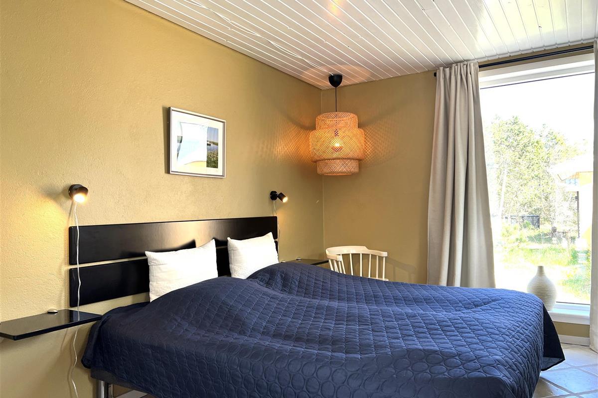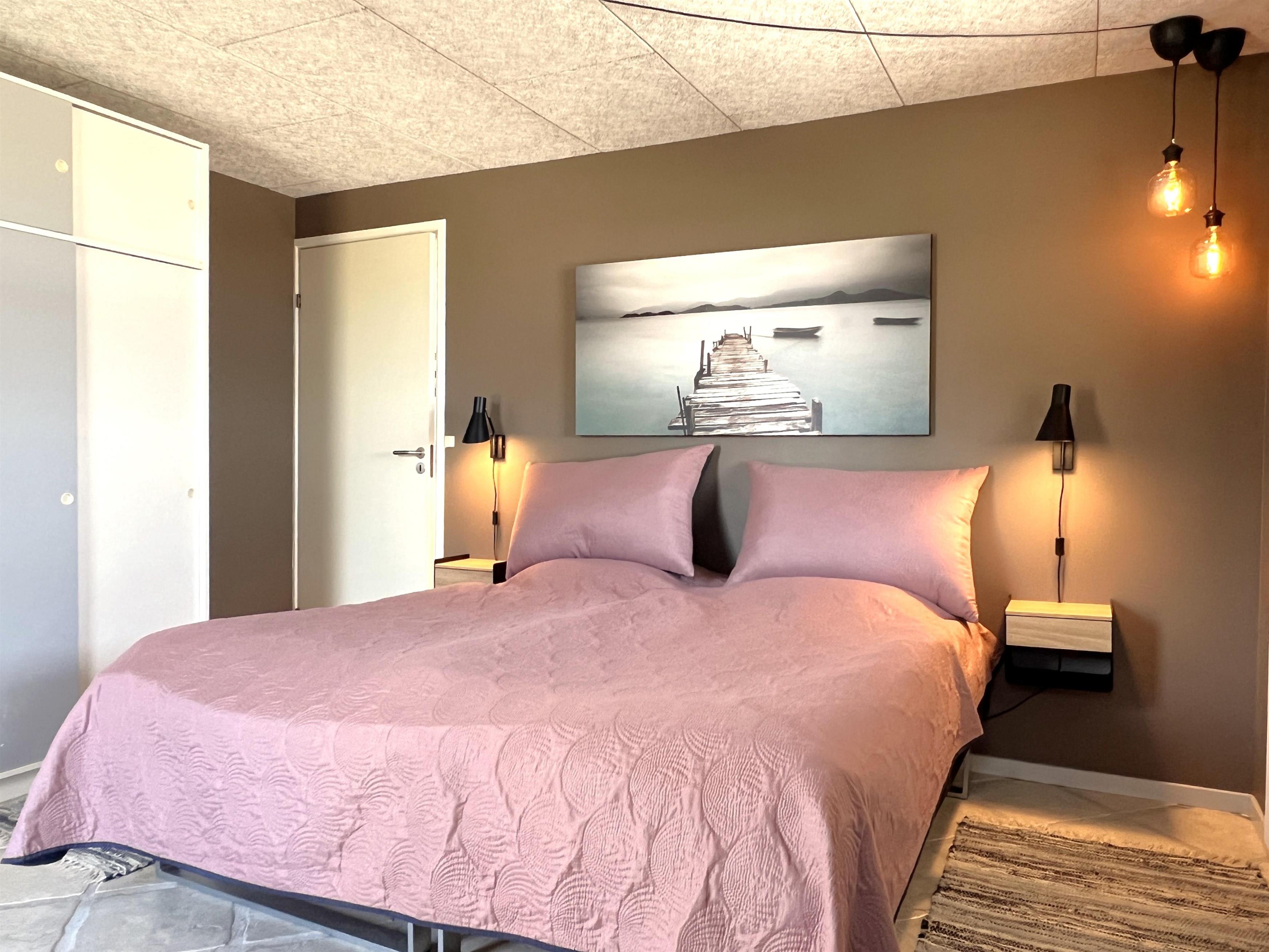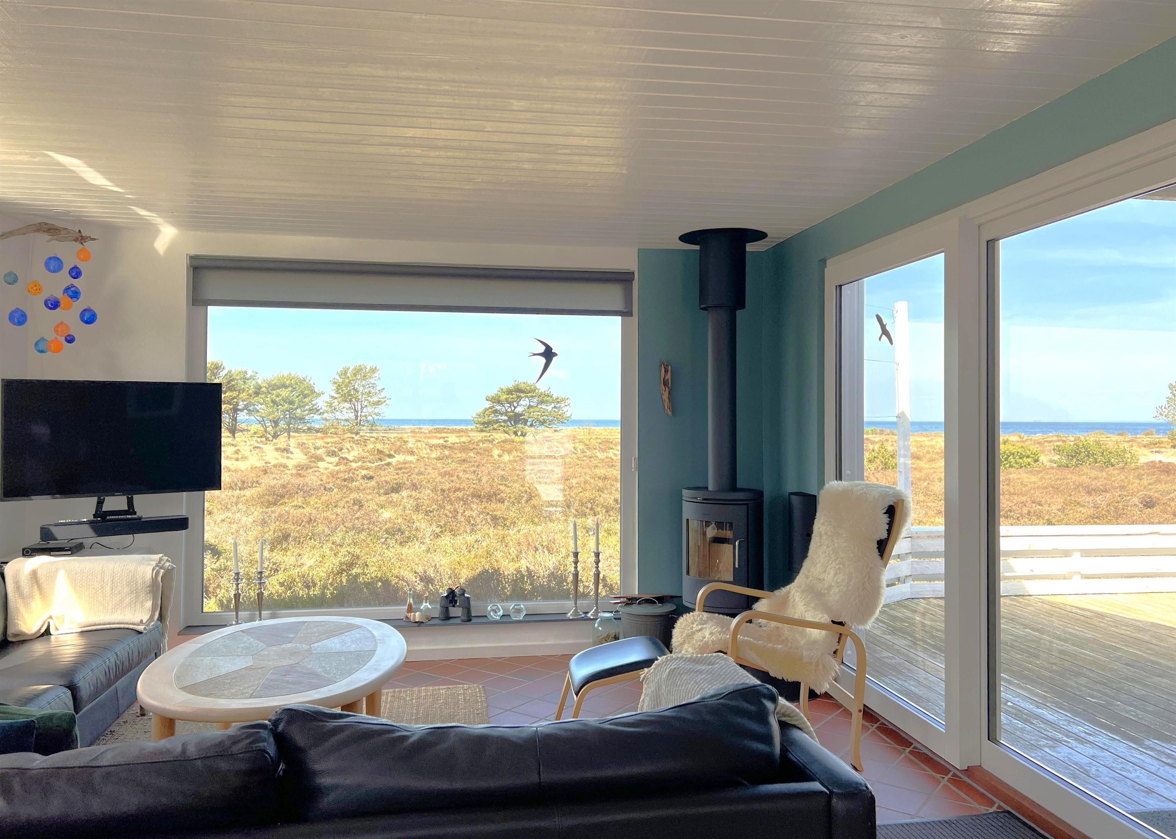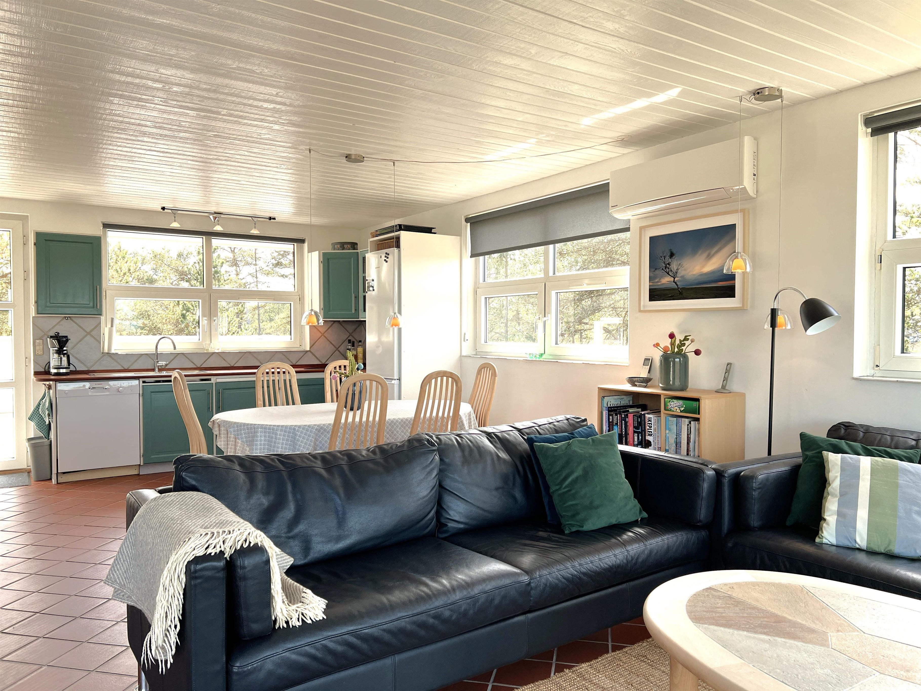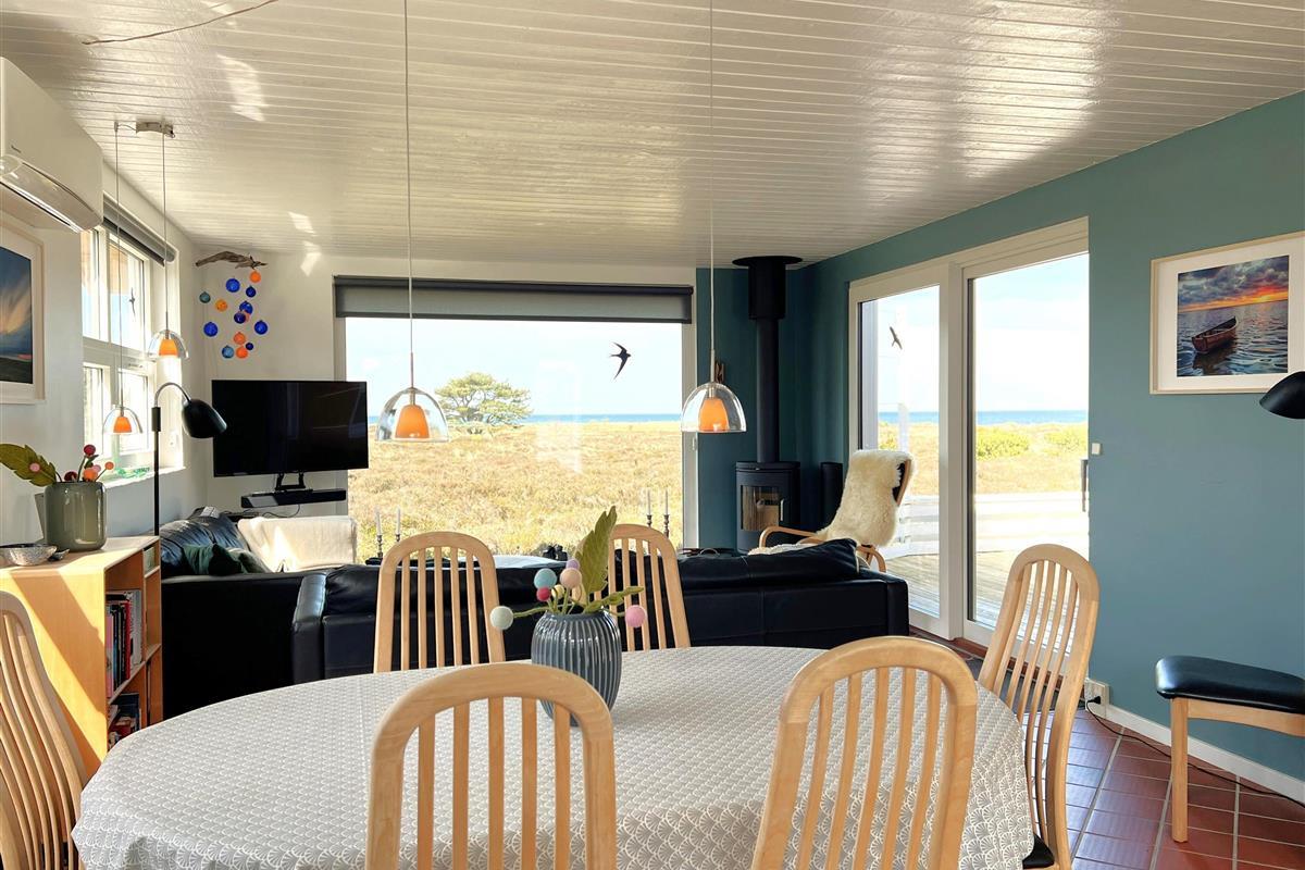 NEU beim Team Læsø. Ein traumhaft schönes, geräumiges Ferienhaus mit einer einzigartigen Lage, die man in Nordmarken kaum besser finden kann. Sowohl vom Haus als auch von den Terrassen und dem Nebengebäude aus hat man einen unglaublich schönen Panoramablick auf das Meer und die Gebäude liegen auf einem wunderschönen, unberührten Naturgrundstück, auf dem die Heide dominiert. Der Abstand zwischen dem Haupthaus und dem Nebengebäude ist relativ kurz und Sie können problemlos zwischen den beiden Wohnungen wechseln. Das Haupthaus wirkt hell und einladend und die großen Fenster sorgen für viel Licht. Schöne und gut ausgestattete Küche in offener Verbindung zum Esszimmer. Das Haus verfügt über ein schönes Wohnzimmer mit bequemen Möbeln, Holzofen und Fernseher sowie Zugang zu einer teilweise überdachten Holzterrasse. Es gibt zwei große Schlafzimmer mit Doppelbetten, eines davon mit Meerblick und Zugang zu einer Terrasse. Das Badezimmer mit Sauna und Dusche wirkt praktisch, schön und einladend. Der 50 m2 große Anbau bietet wie das Haupthaus viel Licht und Meerblick und verfügt über ein weiteres großes Schlafzimmer mit einem Doppelbett und einem Kinderbett. Darüber hinaus ein schöner Aktivitätsraum mit mehreren verschiedenen Spielen - Tischfußball, Darts, Bobfahren, Tischstockschießen usw. Karten-/Brettspiele und Bücher und eine wirklich gemütliche Bar, in der Jung und Alt ihren Durst stillen können. Das Haus verfügt über ein starkes Glasfasernetz und ist insgesamt sehr gut ausgestattet. Rund um das Haus stehen Ihnen mehrere schöne Liegeflächen und Terrassen mit Gartenmöbeln und Sonnenliegen zur Verfügung. Hier kann auch der Grill des Hauses genutzt werden, während man den wunderschönen Sonnenuntergang über dem Meer genießt. Zusammen mit der Aussicht, dem wunderschönen Naturgrundstück und der ruhigen Lage spüren Sie das besondere Læsøro.