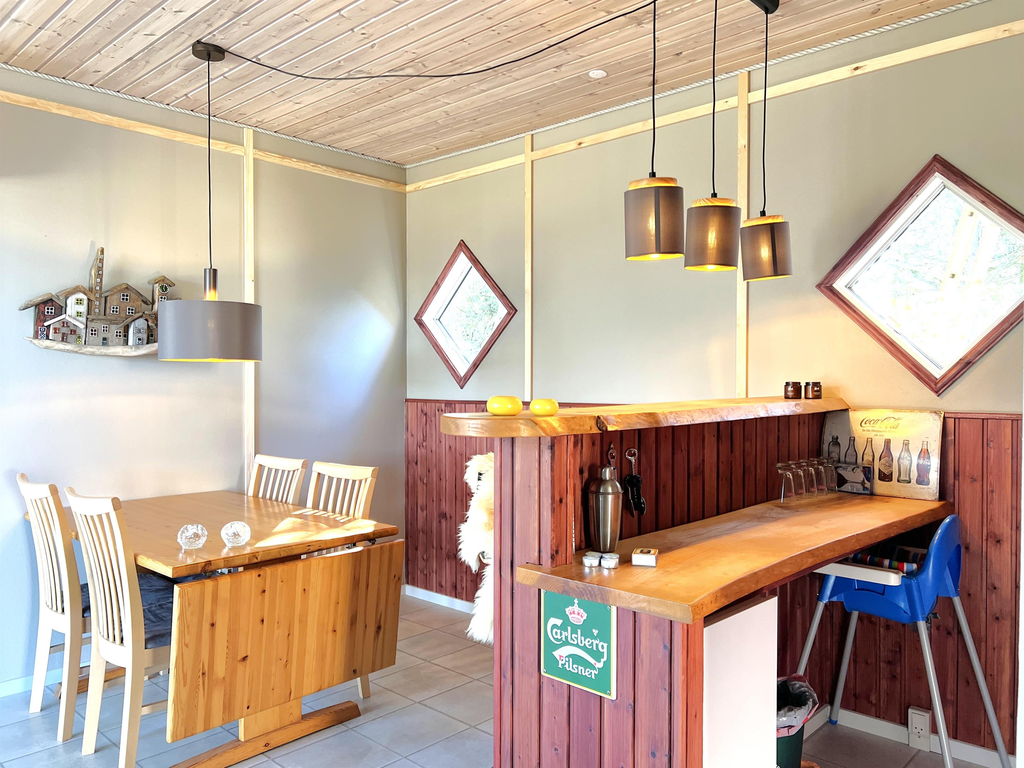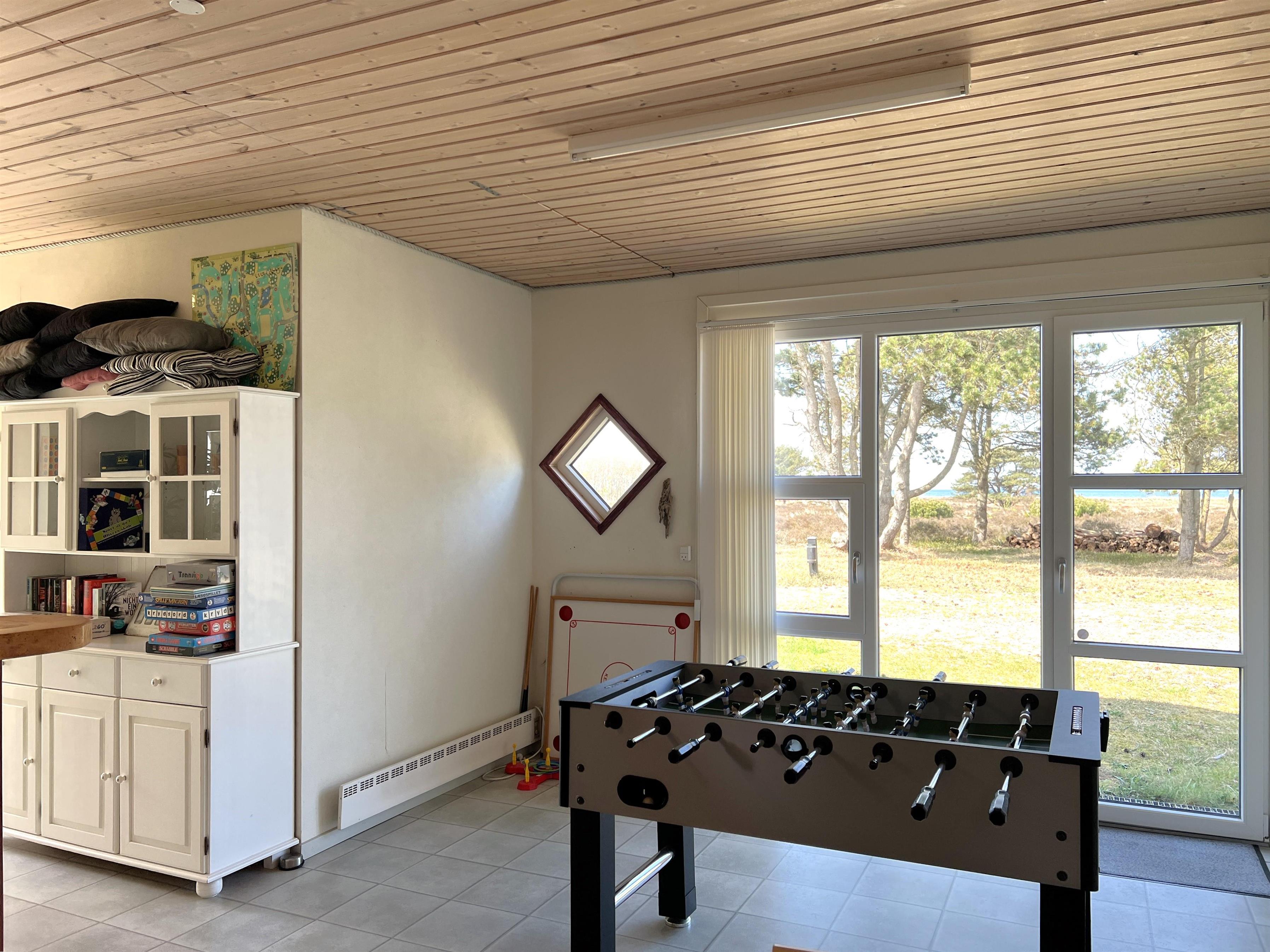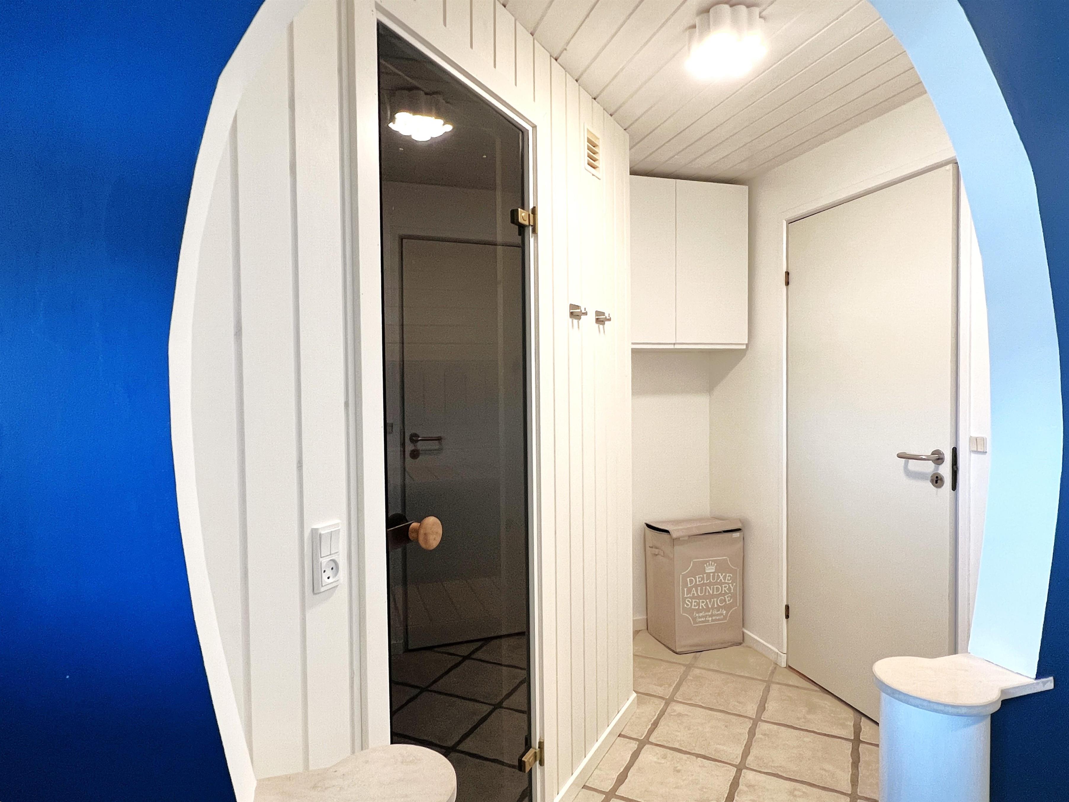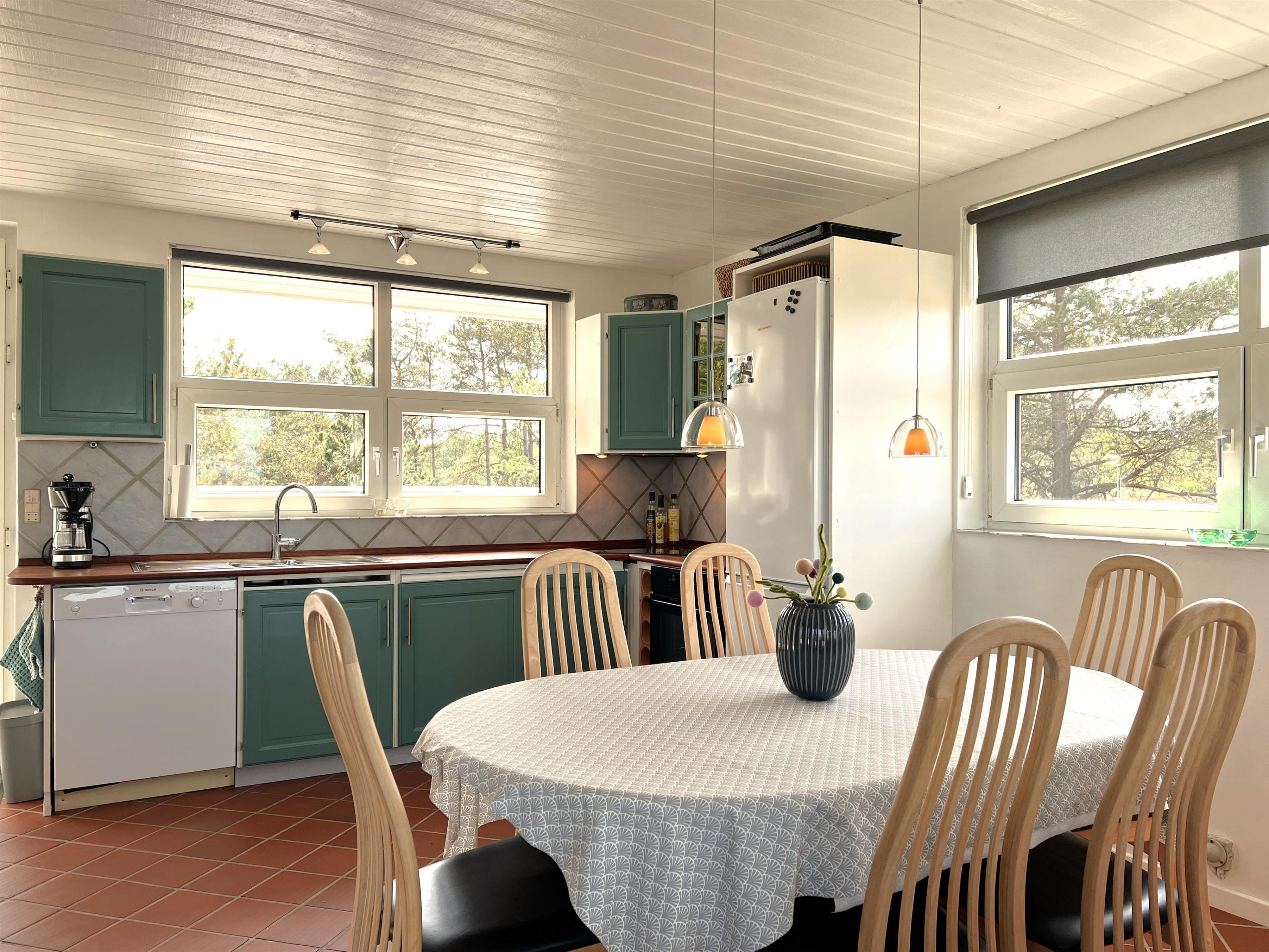 NEU beim Team Læsø. Ein traumhaft schönes, geräumiges Ferienhaus mit einer einzigartigen Lage, die man in Nordmarken kaum besser finden kann. Sowohl vom Haus als auch von den Terrassen und dem Nebengebäude aus hat man einen unglaublich schönen Panoramablick auf das Meer und die Gebäude liegen auf einem wunderschönen, unberührten Naturgrundstück, auf dem die Heide dominiert. Der Abstand zwischen dem Haupthaus und dem Nebengebäude ist relativ kurz und Sie können problemlos zwischen den beiden Wohnungen wechseln. Das Haupthaus wirkt hell und einladend und die großen Fenster sorgen für viel Licht. Schöne und gut ausgestattete Küche in offener Verbindung zum Esszimmer. Das Haus verfügt über ein schönes Wohnzimmer mit bequemen Möbeln, Holzofen und Fernseher sowie Zugang zu einer teilweise überdachten Holzterrasse. Es gibt zwei große Schlafzimmer mit Doppelbetten, eines davon mit Meerblick und Zugang zu einer Terrasse. Das Badezimmer mit Sauna und Dusche wirkt praktisch, schön und einladend. Der 50 m2 große Anbau bietet wie das Haupthaus viel Licht und Meerblick und verfügt über ein weiteres großes Schlafzimmer mit einem Doppelbett und einem Kinderbett. Darüber hinaus ein schöner Aktivitätsraum mit mehreren verschiedenen Spielen - Tischfußball, Darts, Bobfahren, Tischstockschießen usw. Karten-/Brettspiele und Bücher und eine wirklich gemütliche Bar, in der Jung und Alt ihren Durst stillen können. Das Haus verfügt über ein starkes Glasfasernetz und ist insgesamt sehr gut ausgestattet. Rund um das Haus stehen Ihnen mehrere schöne Liegeflächen und Terrassen mit Gartenmöbeln und Sonnenliegen zur Verfügung. Hier kann auch der Grill des Hauses genutzt werden, während man den wunderschönen Sonnenuntergang über dem Meer genießt. Zusammen mit der Aussicht, dem wunderschönen Naturgrundstück und der ruhigen Lage spüren Sie das besondere Læsøro.