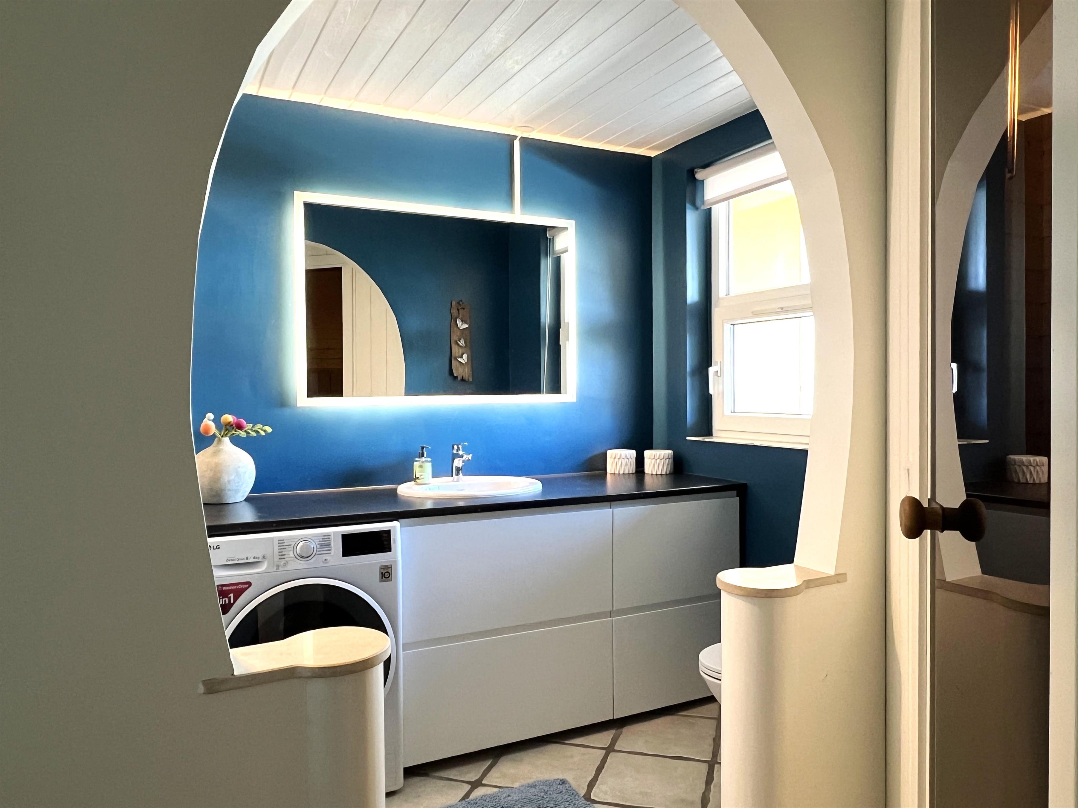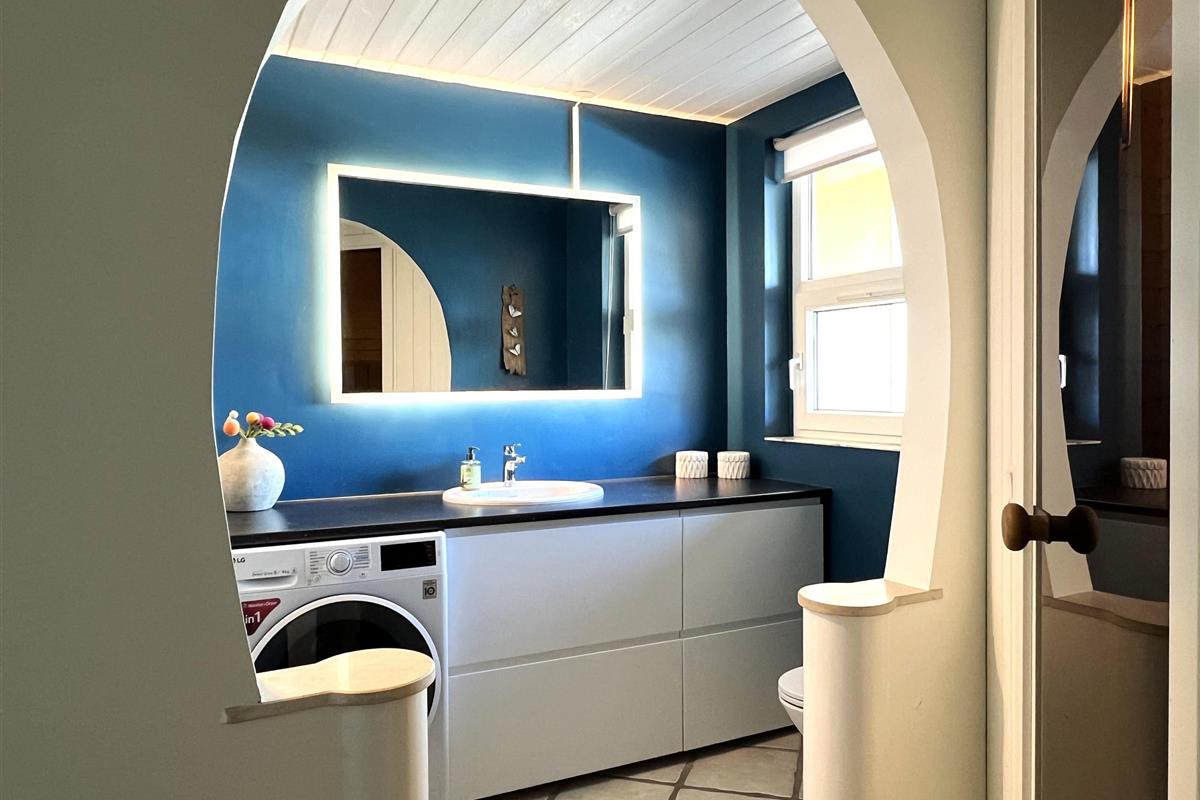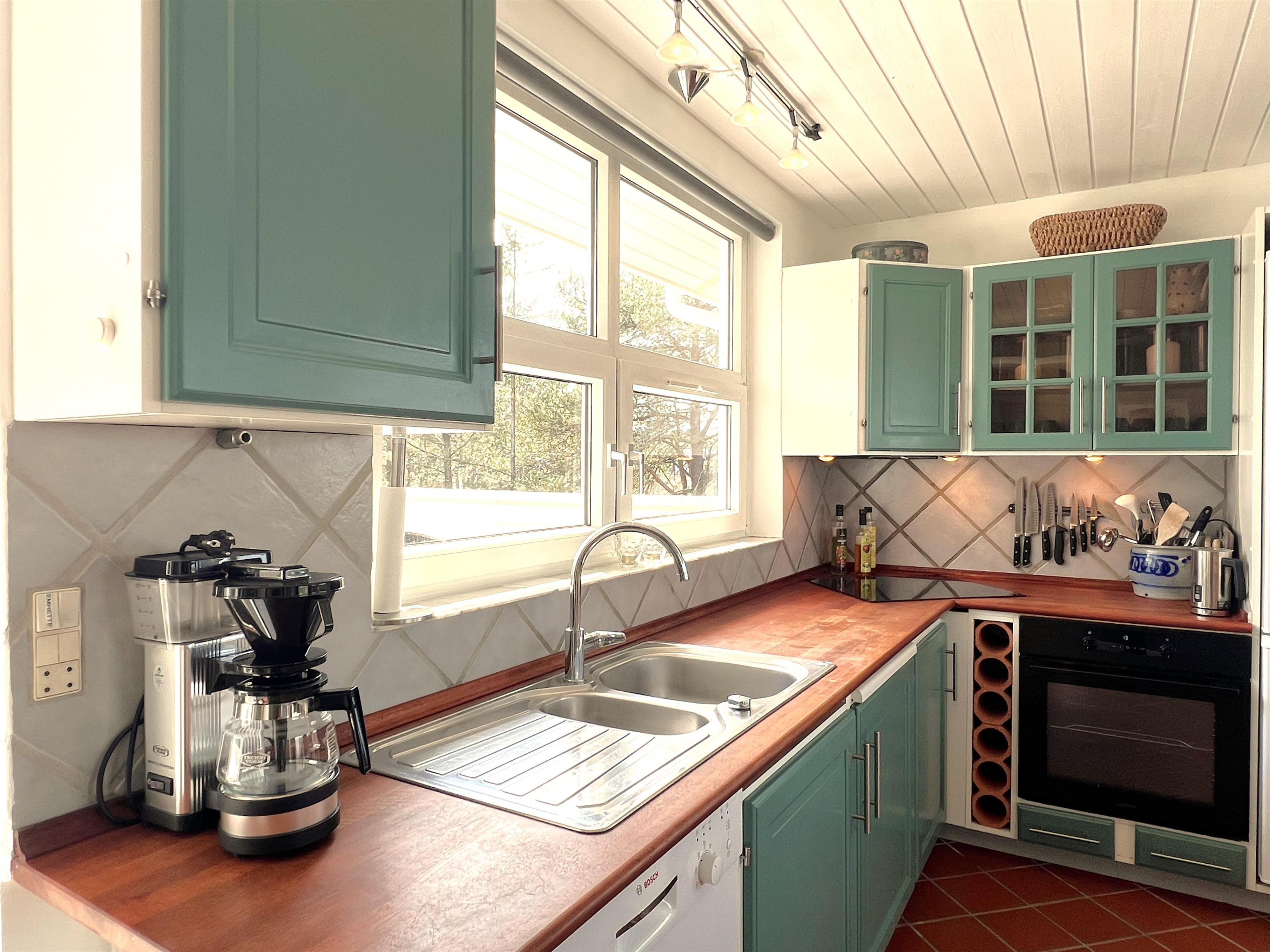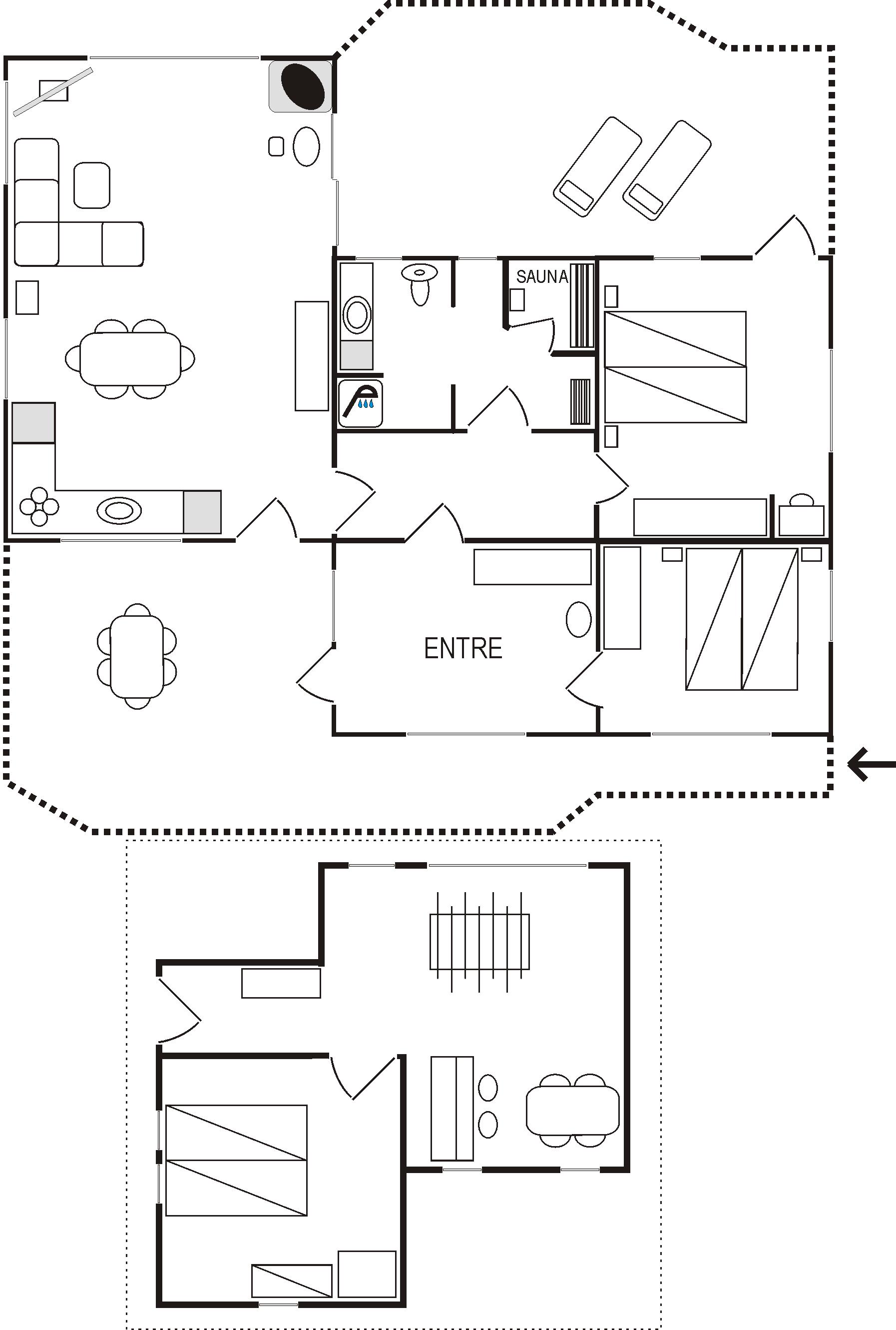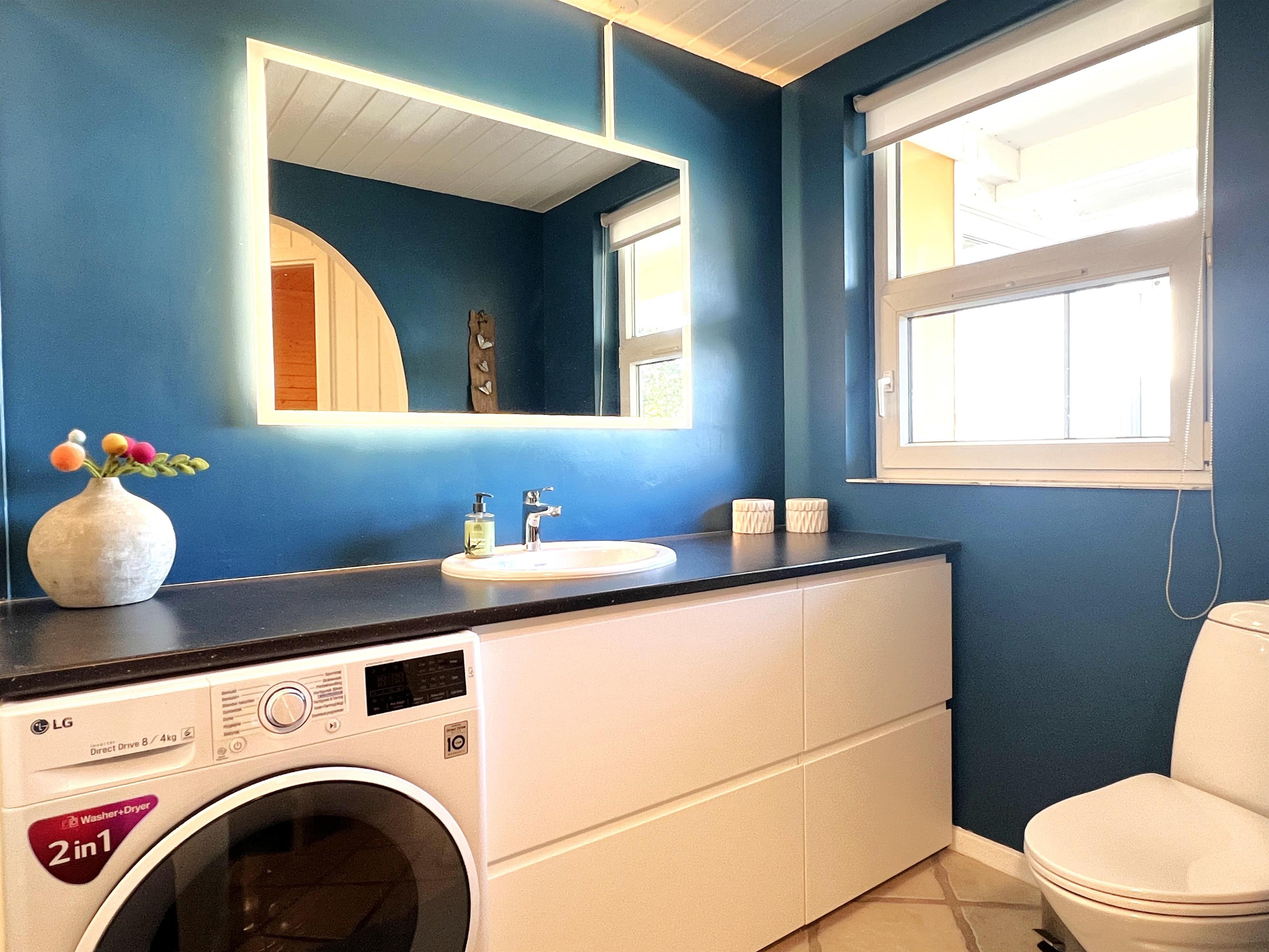 NEU beim Team Læsø. Ein traumhaft schönes, geräumiges Ferienhaus mit einer einzigartigen Lage, die man in Nordmarken kaum besser finden kann. Sowohl vom Haus als auch von den Terrassen und dem Nebengebäude aus hat man einen unglaublich schönen Panoramablick auf das Meer und die Gebäude liegen auf einem wunderschönen, unberührten Naturgrundstück, auf dem die Heide dominiert. Der Abstand zwischen dem Haupthaus und dem Nebengebäude ist relativ kurz und Sie können problemlos zwischen den beiden Wohnungen wechseln. Das Haupthaus wirkt hell und einladend und die großen Fenster sorgen für viel Licht. Schöne und gut ausgestattete Küche in offener Verbindung zum Esszimmer. Das Haus verfügt über ein schönes Wohnzimmer mit bequemen Möbeln, Holzofen und Fernseher sowie Zugang zu einer teilweise überdachten Holzterrasse. Es gibt zwei große Schlafzimmer mit Doppelbetten, eines davon mit Meerblick und Zugang zu einer Terrasse. Das Badezimmer mit Sauna und Dusche wirkt praktisch, schön und einladend. Der 50 m2 große Anbau bietet wie das Haupthaus viel Licht und Meerblick und verfügt über ein weiteres großes Schlafzimmer mit einem Doppelbett und einem Kinderbett. Darüber hinaus ein schöner Aktivitätsraum mit mehreren verschiedenen Spielen - Tischfußball, Darts, Bobfahren, Tischstockschießen usw. Karten-/Brettspiele und Bücher und eine wirklich gemütliche Bar, in der Jung und Alt ihren Durst stillen können. Das Haus verfügt über ein starkes Glasfasernetz und ist insgesamt sehr gut ausgestattet. Rund um das Haus stehen Ihnen mehrere schöne Liegeflächen und Terrassen mit Gartenmöbeln und Sonnenliegen zur Verfügung. Hier kann auch der Grill des Hauses genutzt werden, während man den wunderschönen Sonnenuntergang über dem Meer genießt. Zusammen mit der Aussicht, dem wunderschönen Naturgrundstück und der ruhigen Lage spüren Sie das besondere Læsøro.