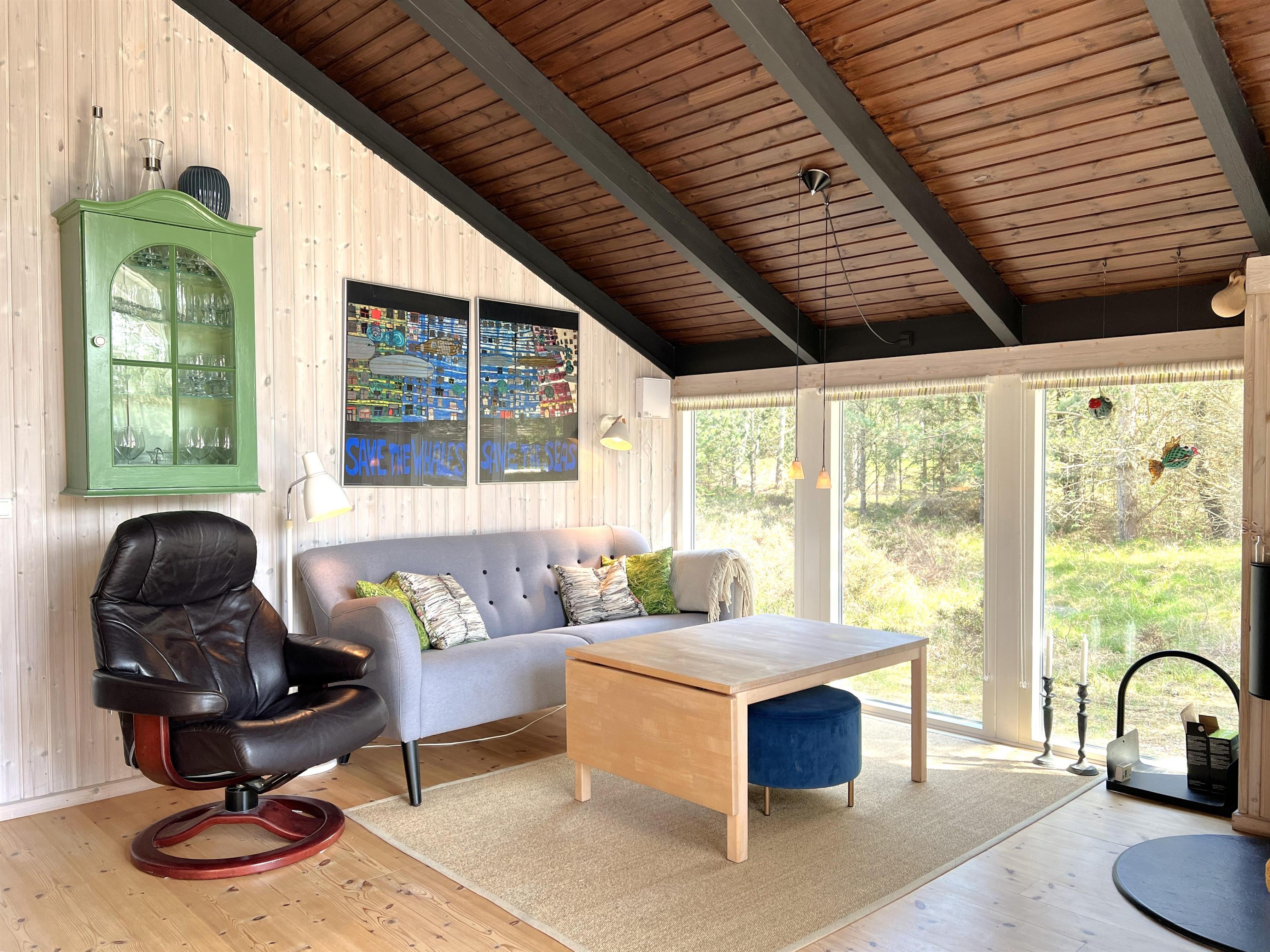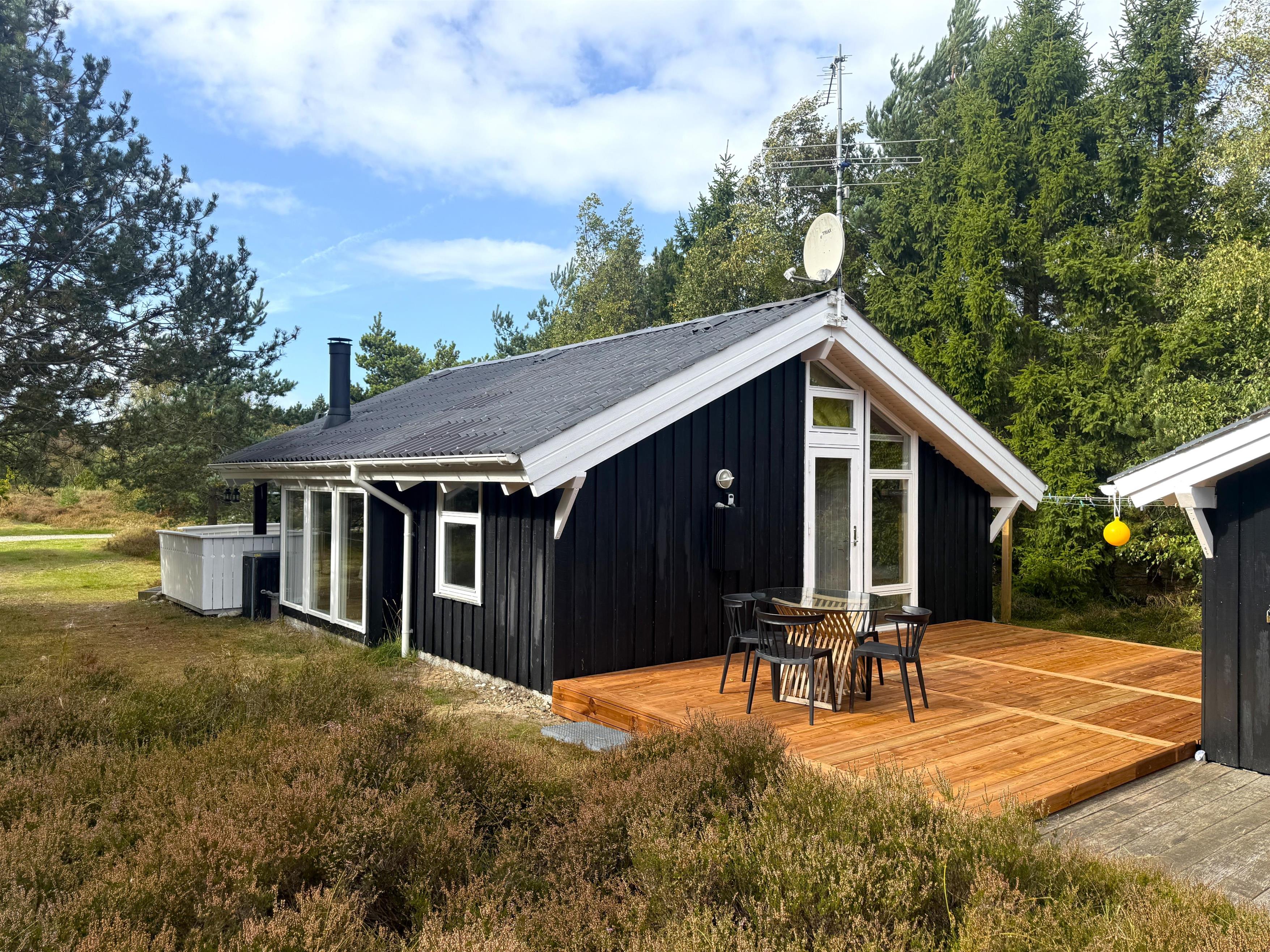 Neu im Team Læsø. Ein wirklich schönes Sommerhaus in einem wunderschönen Natur-/Heidegebiet in Nordmarken. Das Haus selbst verfügt über eine gut ausgestattete Küche in offener Verbindung mit einem Essbereich und ein gemütliches Wohnzimmer mit viel Licht und einem Holzofen. Es gibt zwei Schlafzimmer, beide mit Doppelbetten. Schönes Badezimmer mit Dusche. Vom Wohnzimmer aus gibt es einen Ausgang zu einer der Holzterrassen des Hauses, wo Sie Gartenmöbel und einen Grill nutzen können. Darüber hinaus finden Sie immer einen wunderbaren sonnigen Ort, an dem Sie die besondere Ruhe von Læsø und die Aussicht auf die fantastische unberührte Natur genießen können.