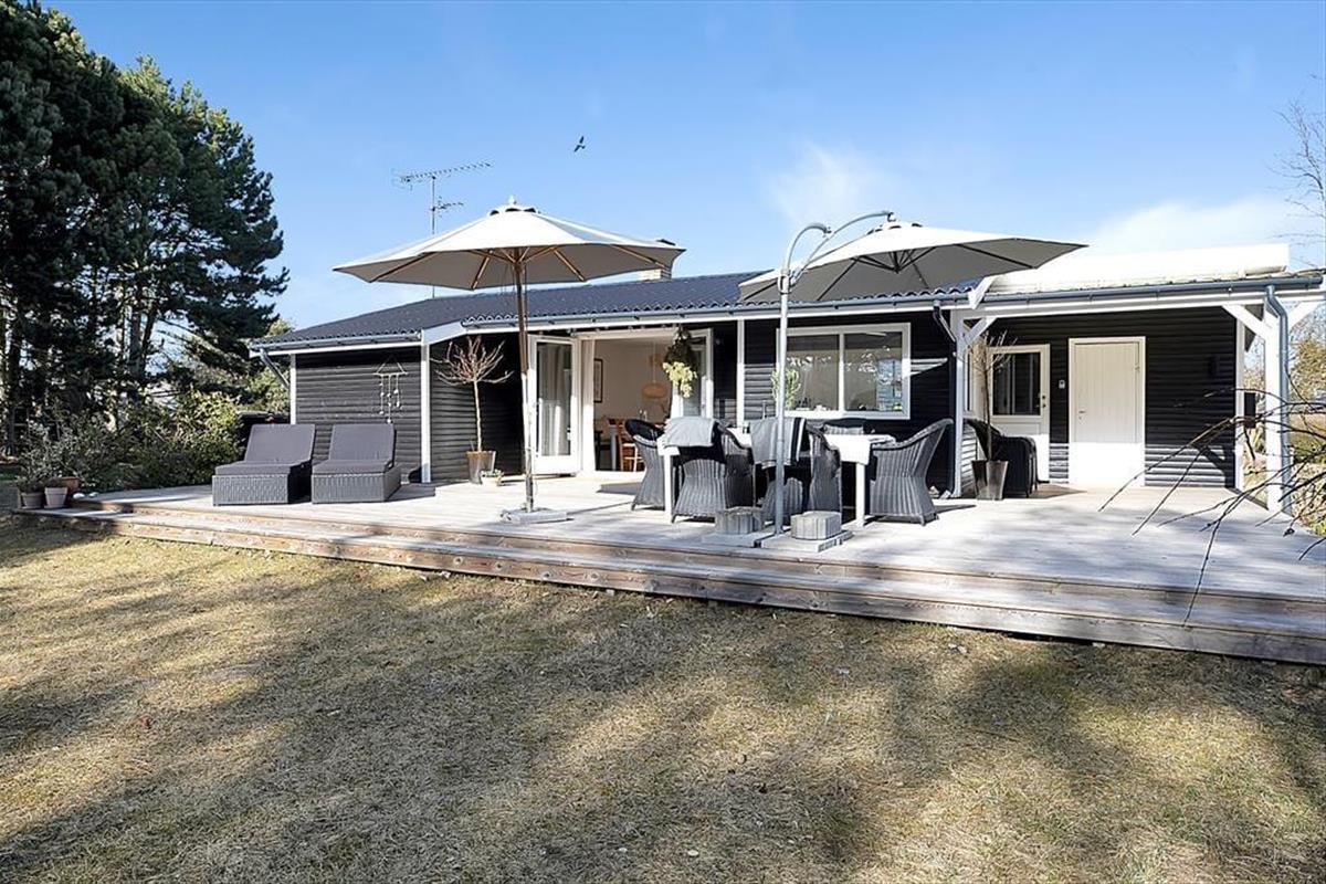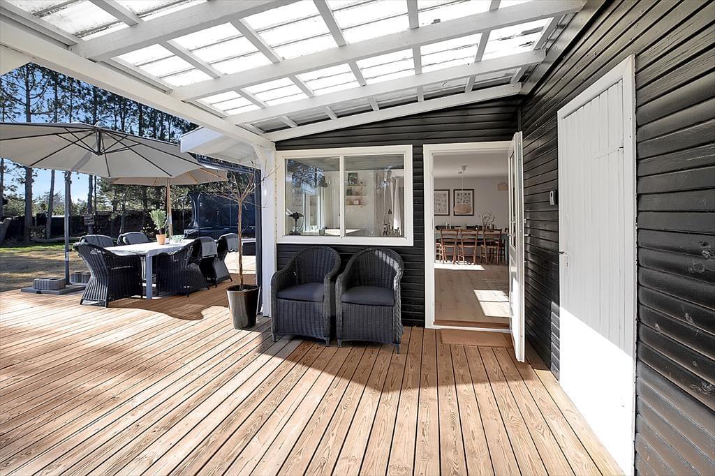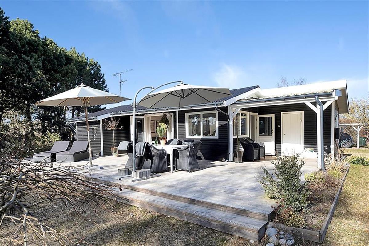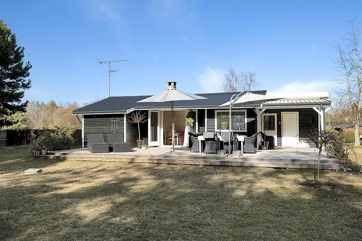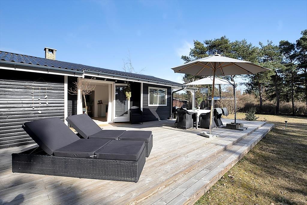 Das Haus ist mit einem sehr ansprechenden Wohnzimmer ausgestattet, in dem man sich mit einem guten Buch oder einem Milchkaffee entspannen kann. Es gibt eine große neue Küche, die mit der Kochnische verbunden ist. Hier können Sie eine Runde Karten spielen, während das Mittagessen zubereitet wird. Das Haus verfügt über vier Schlafzimmer, zwei davon mit Doppelbetten und zwei mit Einzelbetten. Das Bad und die Toilette sind in zwei getrennte Räume aufgeteilt. Das Haus hat sowohl eine große offene als auch eine überdachte Terrasse, auf der Sie von morgens bis abends die Sonne genießen, grillen oder einfach bei einem guten Glas Wein entspannen können. Das Haus ist von einem großzügigen Garten umgeben, in dem es Platz für Ballspiele und zum Toben gibt.