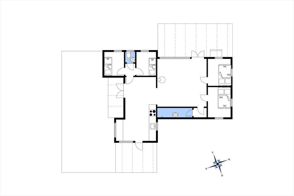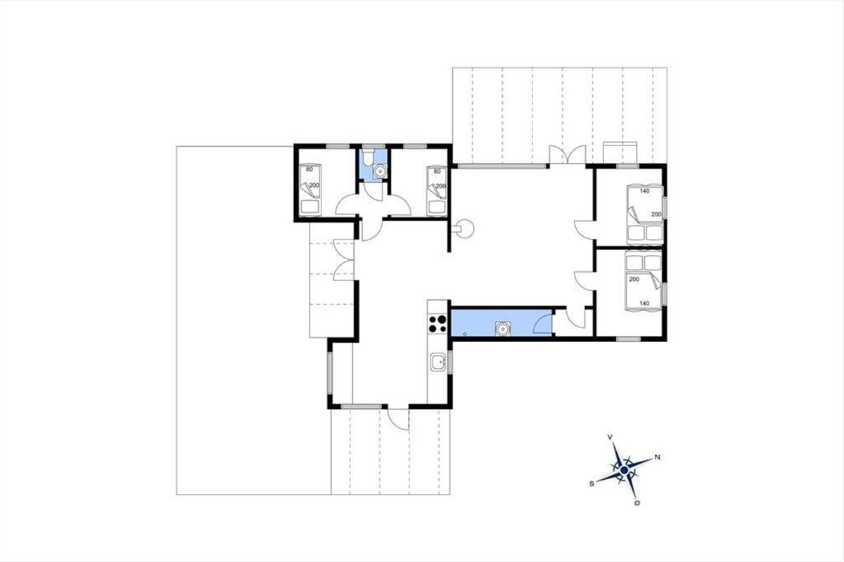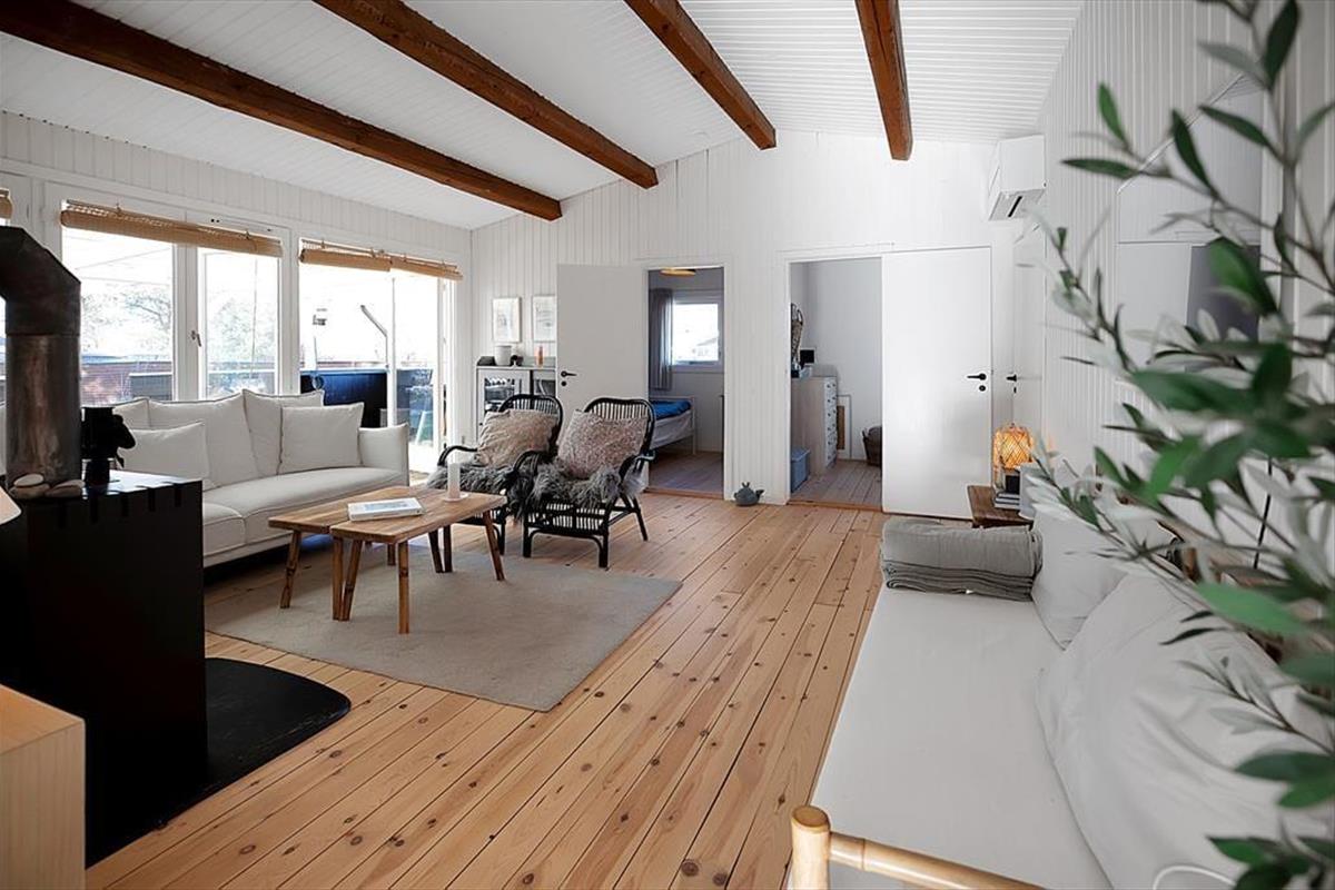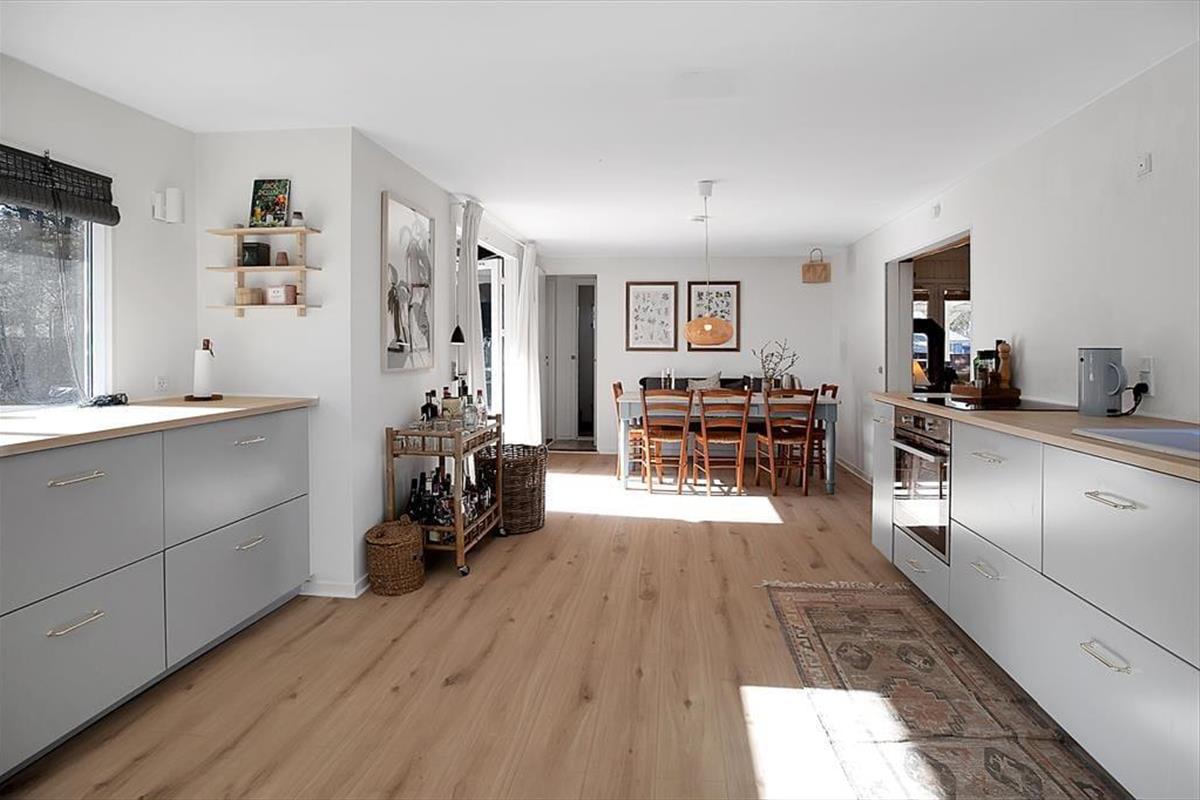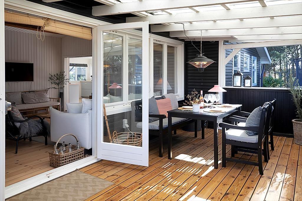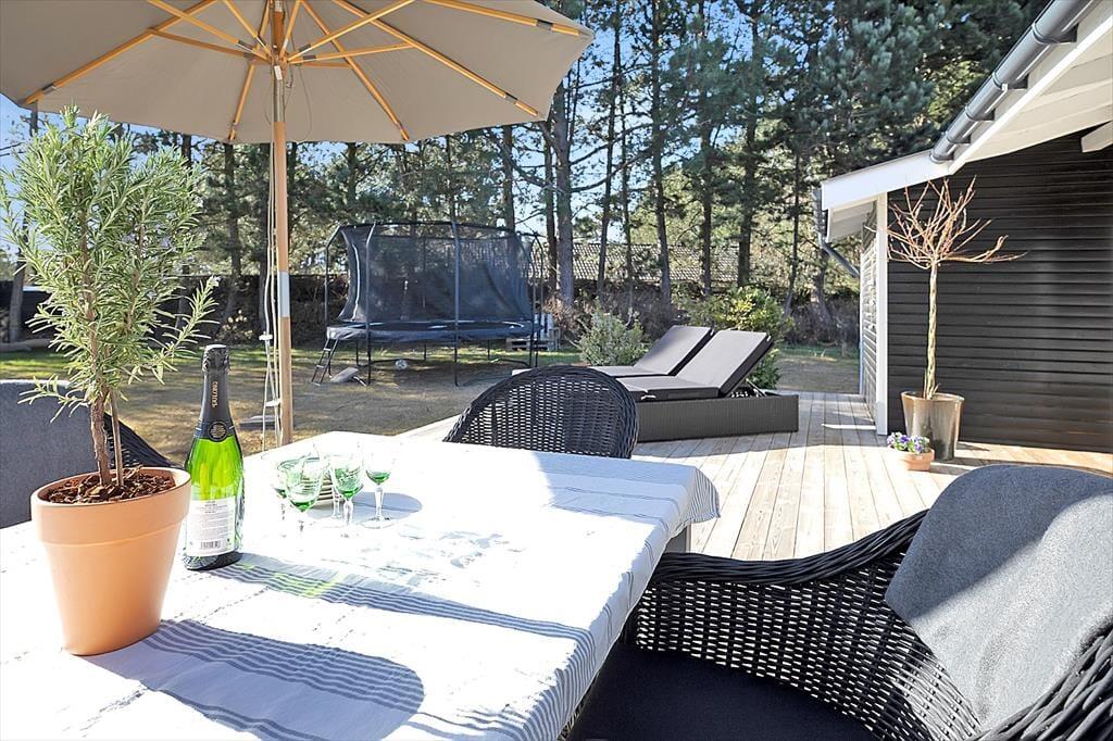 Das Haus ist mit einem sehr ansprechenden Wohnzimmer ausgestattet, in dem man sich mit einem guten Buch oder einem Milchkaffee entspannen kann. Es gibt eine große neue Küche, die mit der Kochnische verbunden ist. Hier können Sie eine Runde Karten spielen, während das Mittagessen zubereitet wird. Das Haus verfügt über vier Schlafzimmer, zwei davon mit Doppelbetten und zwei mit Einzelbetten. Das Bad und die Toilette sind in zwei getrennte Räume aufgeteilt. Das Haus hat sowohl eine große offene als auch eine überdachte Terrasse, auf der Sie von morgens bis abends die Sonne genießen, grillen oder einfach bei einem guten Glas Wein entspannen können. Das Haus ist von einem großzügigen Garten umgeben, in dem es Platz für Ballspiele und zum Toben gibt.