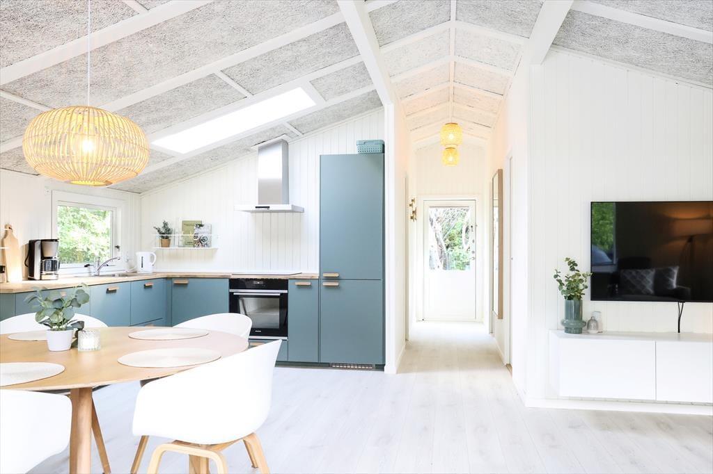 Dein Ferienhaus wurde im Jahr 2024 einer umfassenden Renovierung unterzogen und präsentiert sich seither traumhaft hell und freundlich. Die offene, moderne Küche fügt sich in den überaus einladenden Wohnraum ein. Dieser avanciert im Nu zum beliebten Sammelpunkt deiner Lieben. In diesem Raum genießt ihr zusammen die Mahlzeiten und lasst den Tag mit einem guten Buch oder einem spannenden Film in aller Gemütlichkeit auf dem Sofa ausklingen. Für schönste Ferienhausstimmung sorgt derweil das knisternde Feuer im Kaminofen. Die Schlafplätze verteilen sich auf zwei ansprechende Schlafräume und auf eine Schlafnische im Wohnraum, die sich besonders gut für deine Kinder eignet.