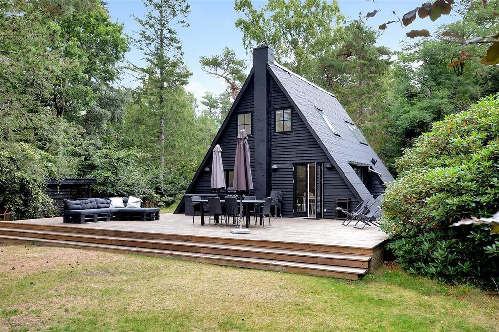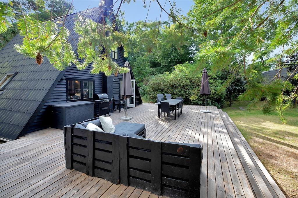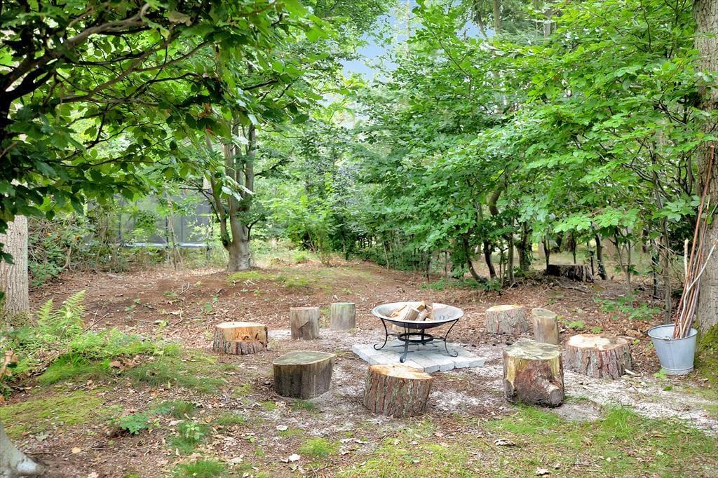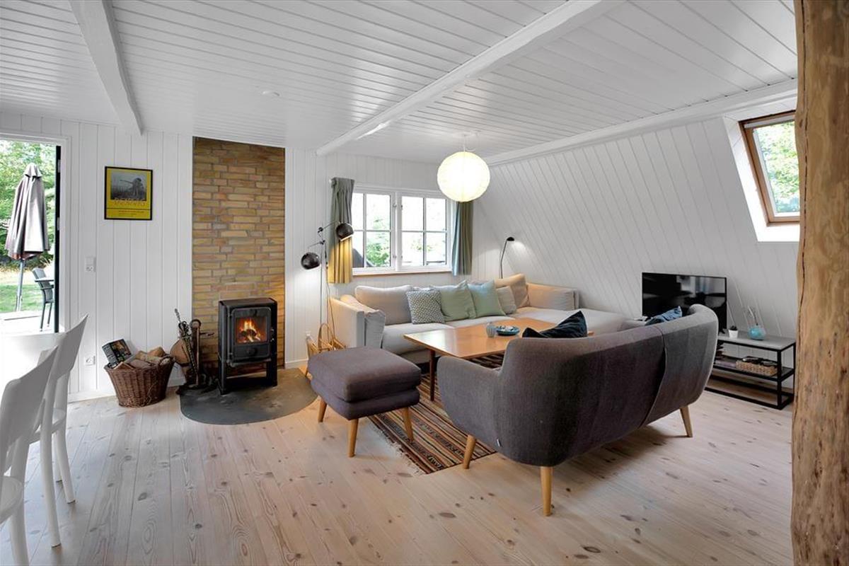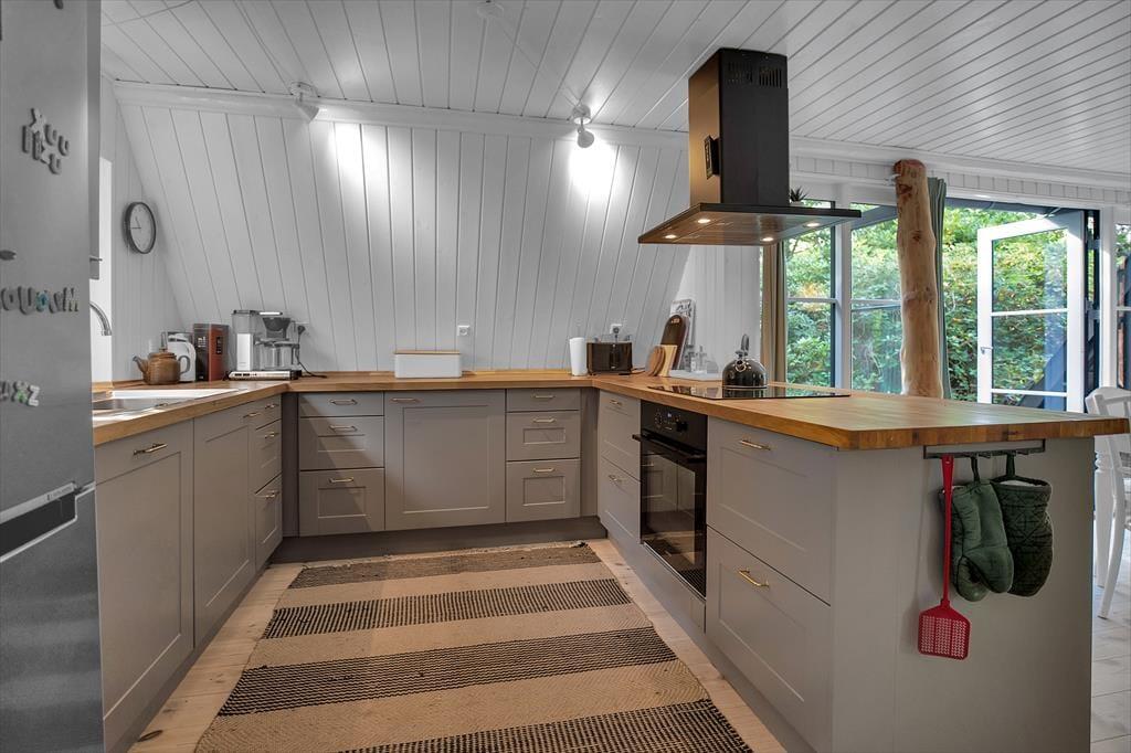 Das 2-stöckige Haus enthält im Erdgeschoss ein kombiniertes Ess- und Wohnzimmer mit Holzofen und Wärmepumpe und eine tolle Küche mit Geschirrspüler. Von dem Wohnzimmer aus gelangen Sie auf die große, herrliche Holzterrasse mit einem Blick von dem gemütlichen Garten, wo die