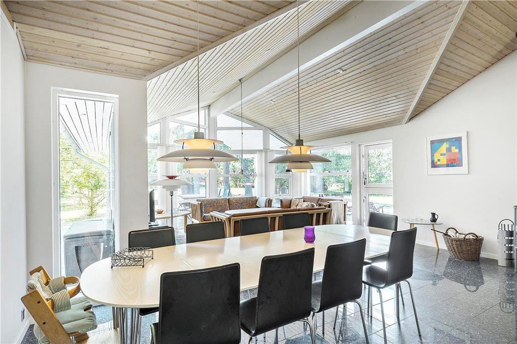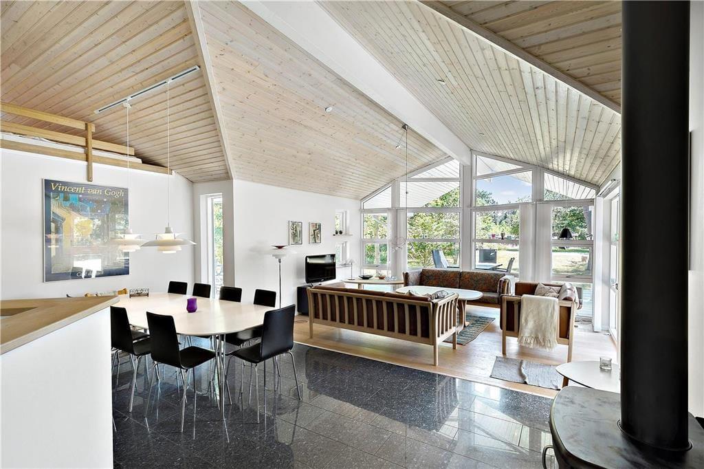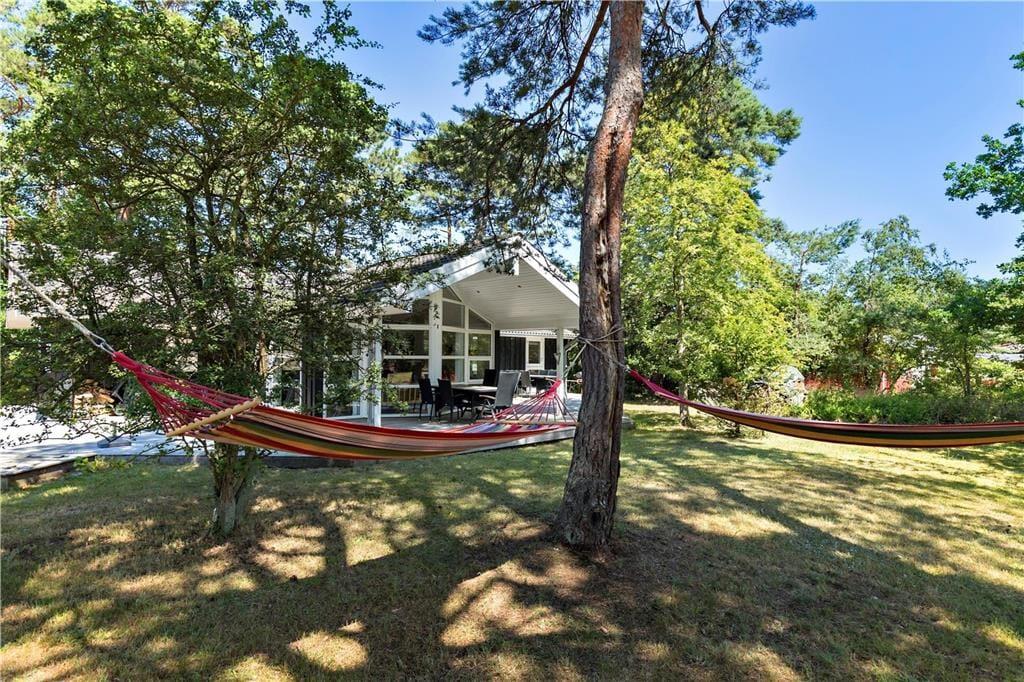 Sobald die Sonne vom Himmel lacht, wird es Groß und Klein unwiderstehlich hinaus auf das große Naturgrundstück ziehen, das sich bestens für Familienaktivitäten wie Wikingerschach, Boccia und Federball eignet. Selbst für das ein oder andere Fußball- und Krocketturnier ist genug Platz vorhanden. Wenn du es lieber ein wenig ruhiger angenehm lässt, ziehst du dich auf einen der Gartenstühle auf der großen Terrasse zurück, liest ein Buch oder genießt ein Nickerchen in der Sonne. Falls du eher den kühlen Schatten bevorzugst, erwarten dich auf dem Grundstück viele schöne, passende Stellen. Unterhaltung und Abwechslung versprechen tägliche Abstecher an den wenige hundert Meter entfernten Strand, an dem ihr euch in den wogenden Wellen wunderbar erfrischen könnt.
