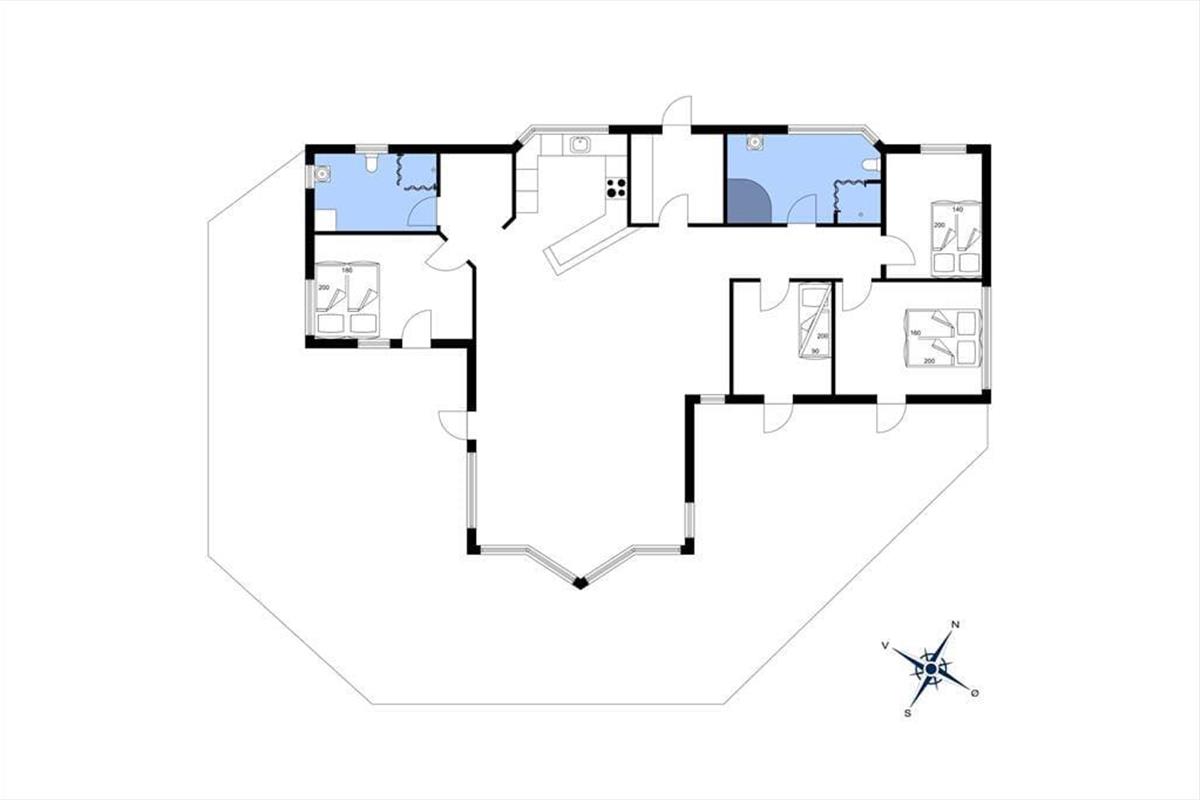 Dein helles, tolles Ferienhaus bietet einen wunderbaren Rahmen für einen aktiven und zugleich erholsamen Urlaub. Mit vier Schlafräumen beherbergt es ohne weiteres deine gesamte Familie oder dich und deine besten Freunde. Drei Schlafräume verwöhnen mit einem direkten Ausgang auf die Terrasse. Wenn du zu den Frühaufstehern gehörst, kannst du in deine Laufschuhe schlüpfen, an den Strand aufbrechen, dort joggen und baden und anschließend zurückkehren, ohne dabei das gesamte Haus zu wecken. Nach deiner morgendlichen Runde bereitest du das Frühstück für deine Lieben zu, deckst den Esstisch und freust dich auf die vielen Erlebnisse, die der neue Tag bringen wird. Nach einem langen, aktiven Urlaubstag lädt der in einem der beiden Badezimmer platzierte Whirlpool zu traumhaft entspannten Momenten voller Wellnessflair ein.