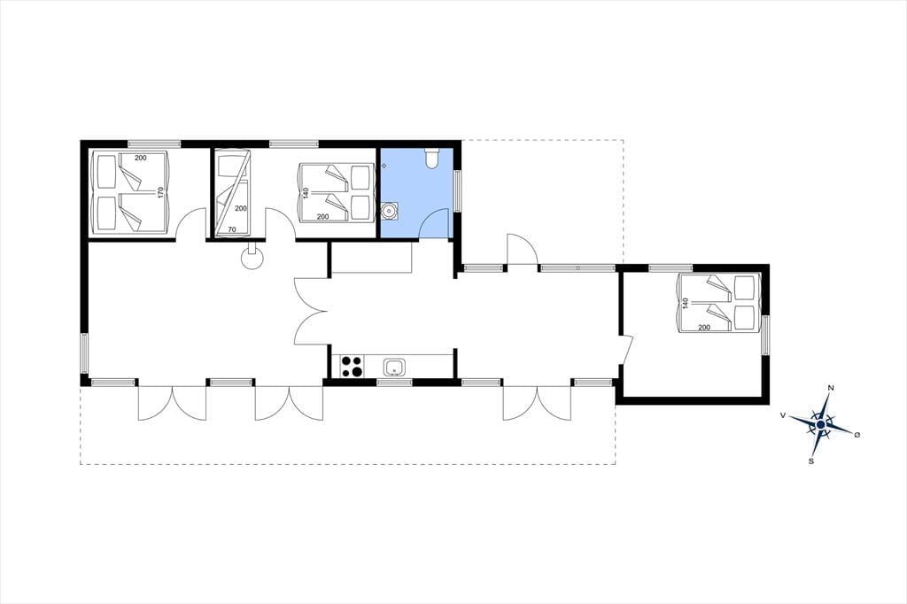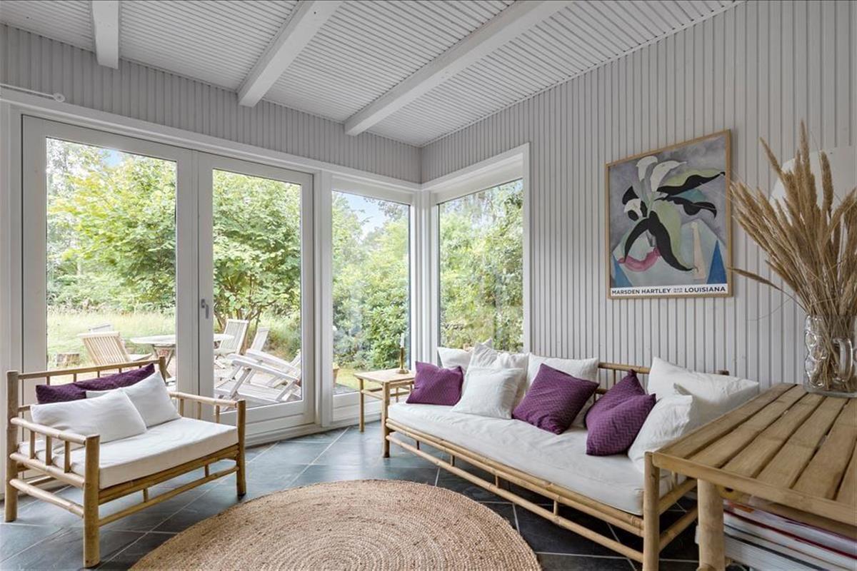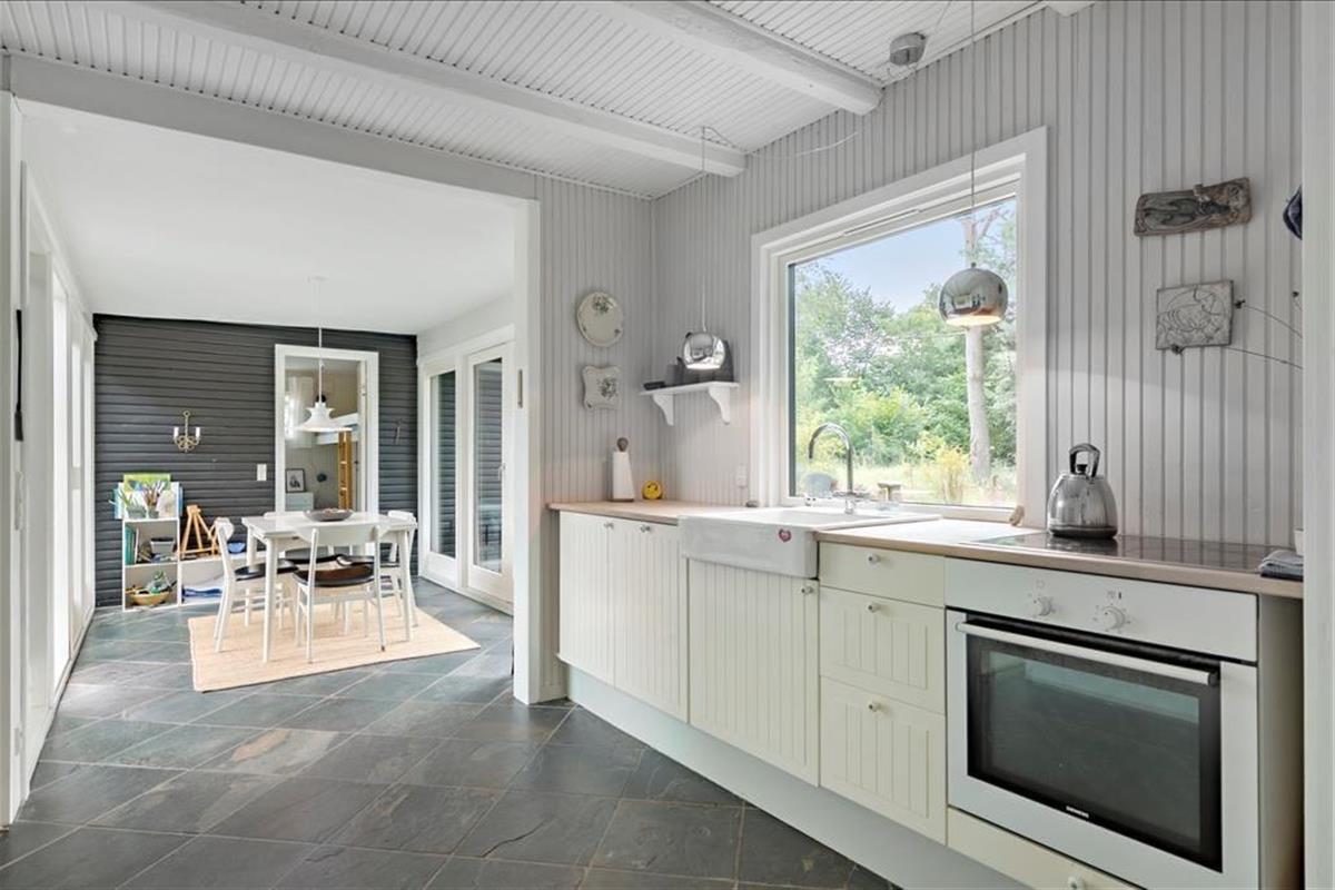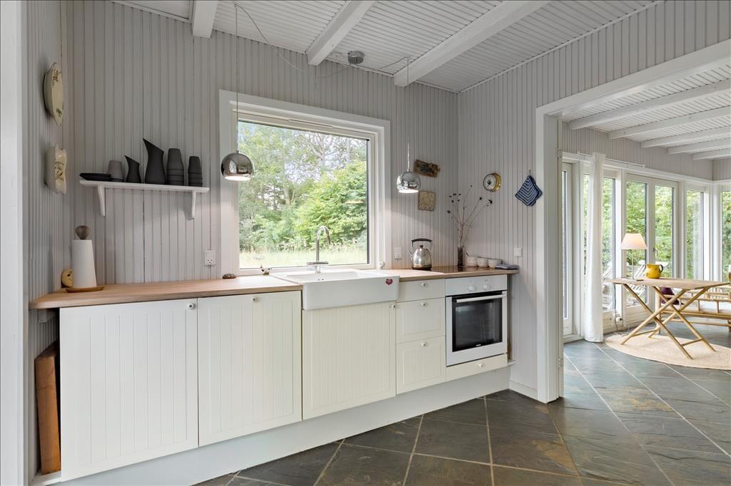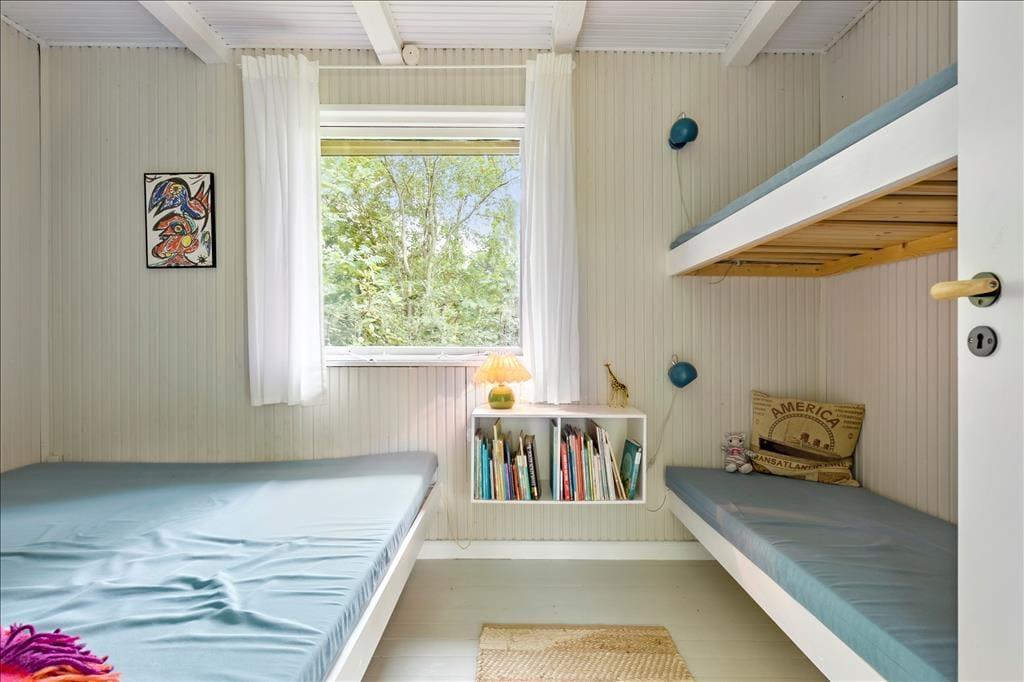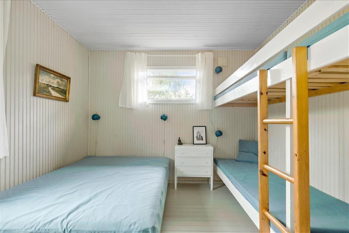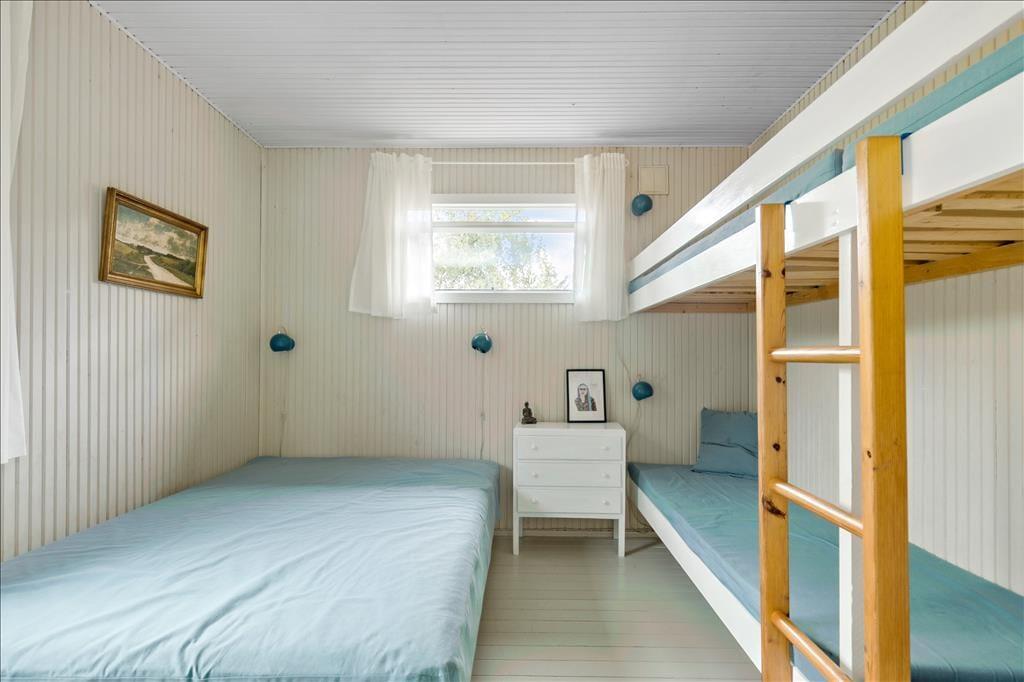 Das Haus ist hell, räumlich und enthält einen Wohnraum mit großen Panoramafenstern und Ausgang zu der gemütlichen Terrasse. Es gibt 3 gute Schlafzimmer mit insgesamt 3 Doppelbetten (180x200, 140x200, 140x200) sowie auch 2 Etagenbetten. Bemerken Sie bitte, dass es keinen Schrankplatz gibt, sondern Hakens und Boxe unter den Betten.