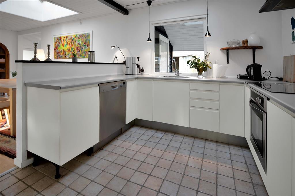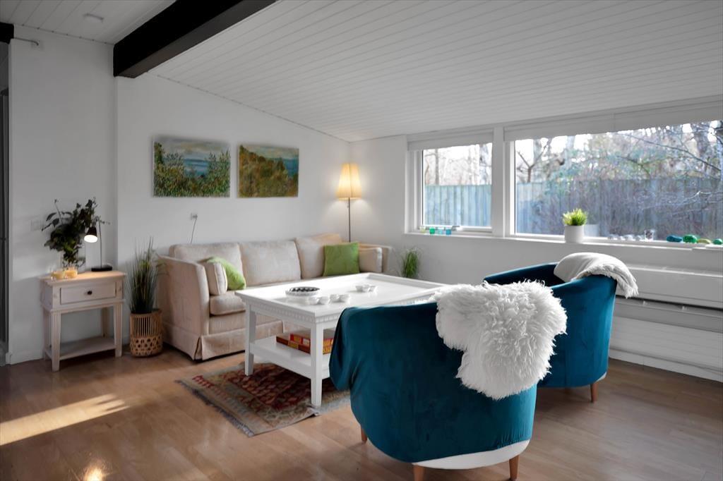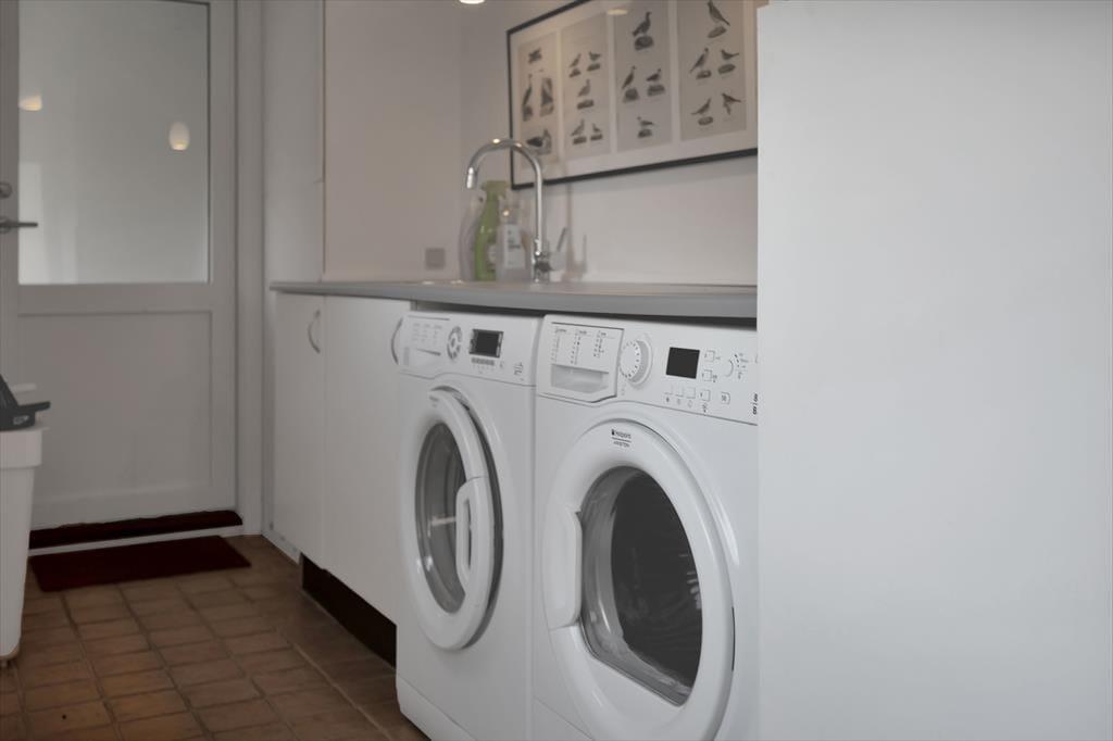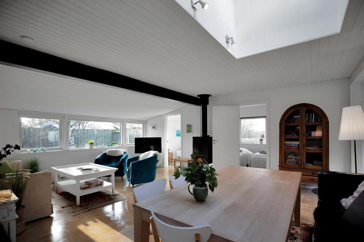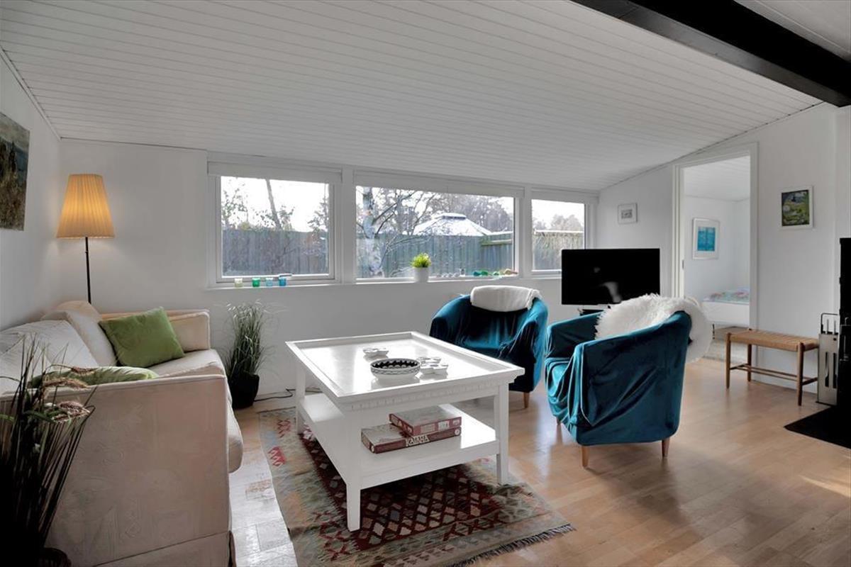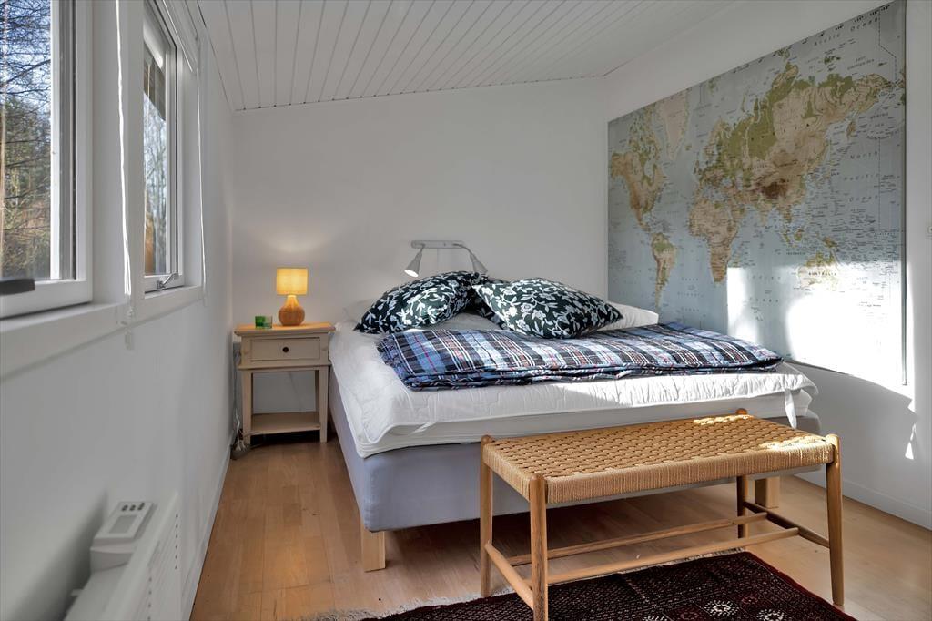 Das Haus ist mit einem großenWohnzimmer mit einem Essbereich für 6 Personen ausgestattet. Es gibt ein Holzofen, Fernsehen und eine Menge von Brettspiele für gemütliche Abende. 3 gute Schlafzimmer mit Doppelbetten und gutem Schrankraum. Die offene Küche hat einen Geschirrspüler, und das elegante Badezimmer ist mit Dusche ausgestattet. Die Waschmaschine und der Wäschetrockener befinden sich im Flur. Vom Wohnzimmer ab haben Sie Ausgang zu dem schönen Garten, wo die Rehe häufig kreuzen, und wo es mehrere herrlichen Terrassen gibt, überdeckt sowie auch offene.
