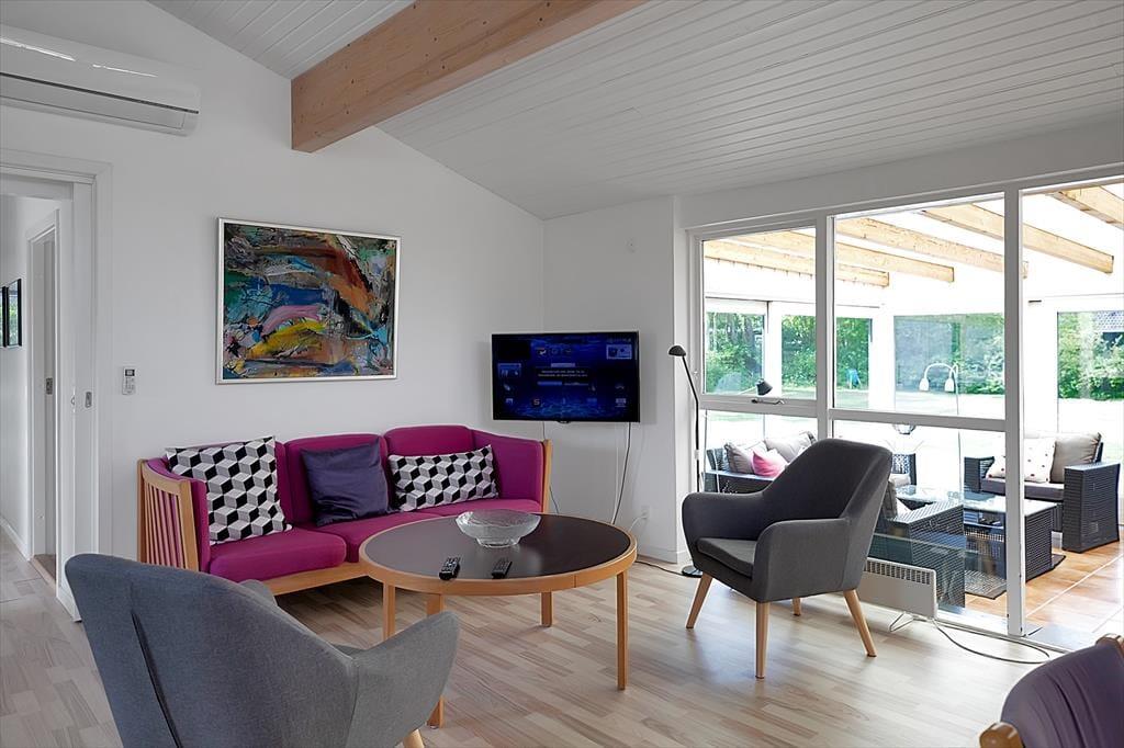Dieses Ferienhaus bietet den perfekten Rahmen für einen Urlaub mit einer fünfköpfigen Familie. Die großzügige Stube und die offene Küche im Zentrum des Hauses bieten viel Platz. Am langen Küchentisch könnt ihr zusammen Brötchen backen, Pizza zubereiten oder einen Salat schnippeln, während ihr gemeinsame Zeit beim Kochen verbringt. Rund um den großen Esstisch könnt ihr nach dem Essen beisammensitzen und spielen oder es euch auf dem Sofa gemütlich machen. Besonders einladend ist der große Wintergarten mit einer gemütlichen Lounchecke und einem Tischkicker, der zu einer Partie Tischfußball einlädt. Wenn der Tag zu Ende geht und ihr euch zur Ruhe begebt, könnt ihr nach einer erholsamen Nacht die Türen zum Garten direkt von den Schlafzimmern aus öffnen.