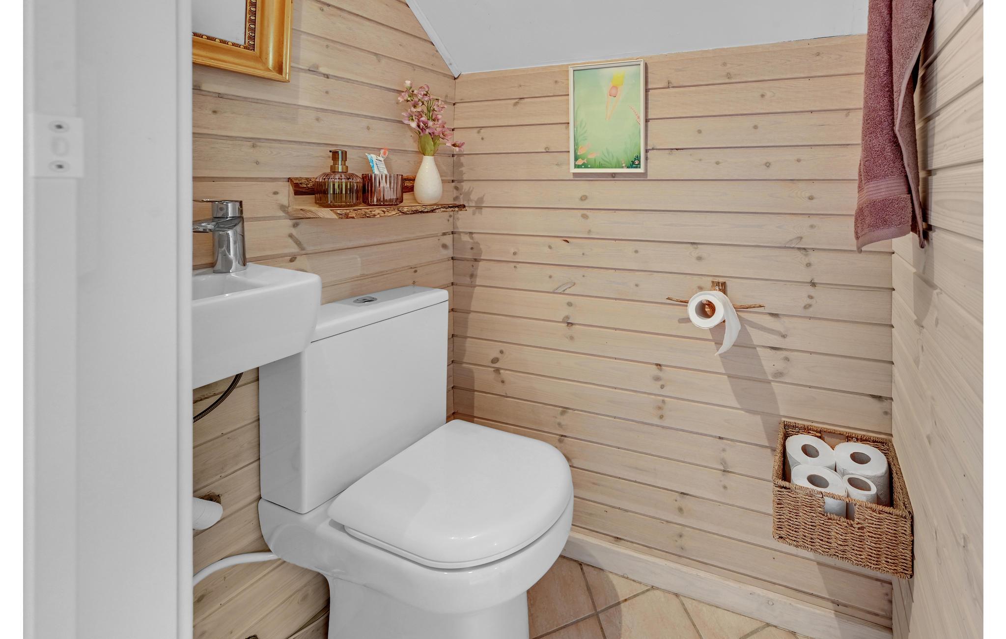 Badkamer (nr. 1) - Toilet: warm en koud water. Douche