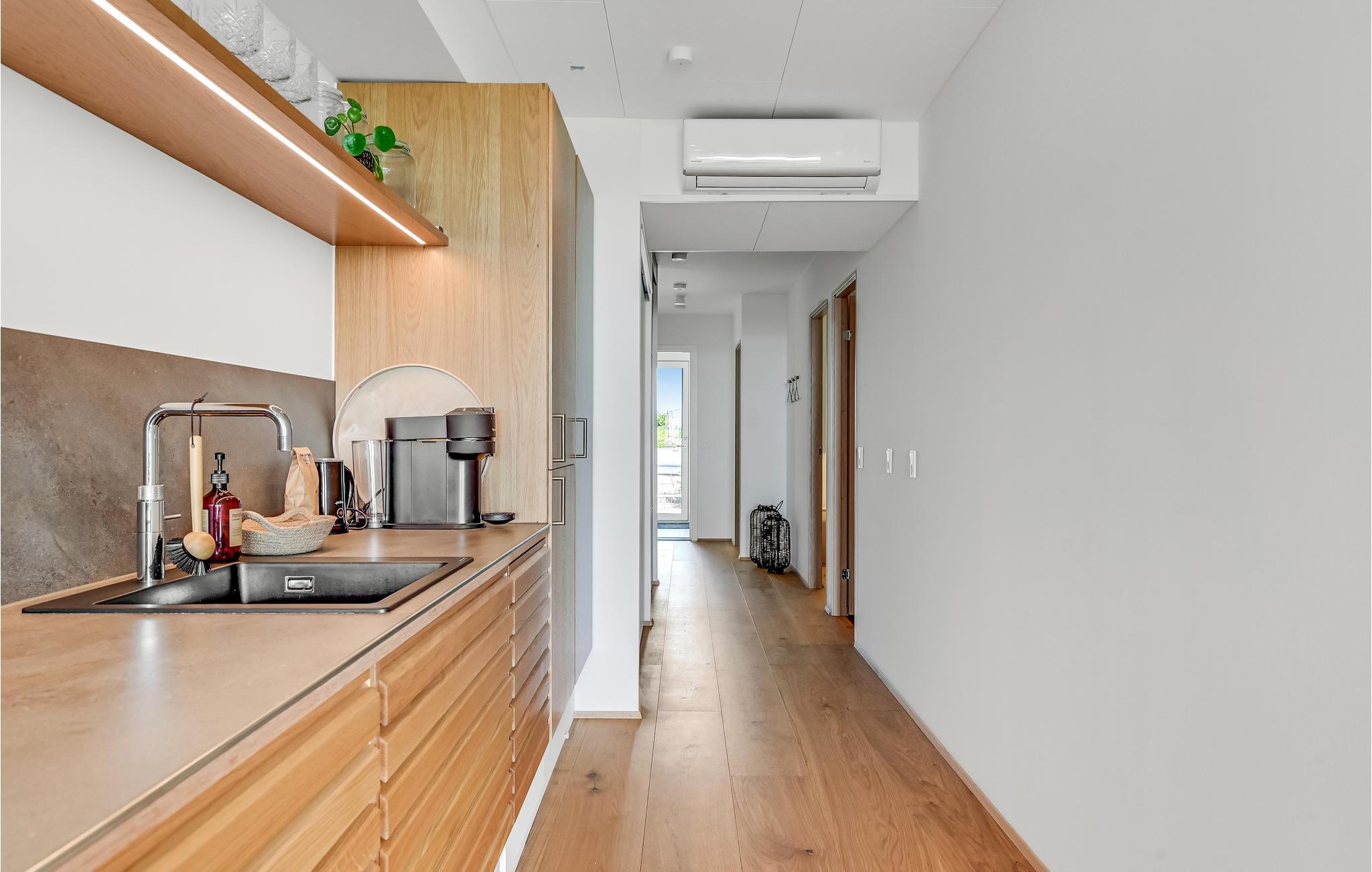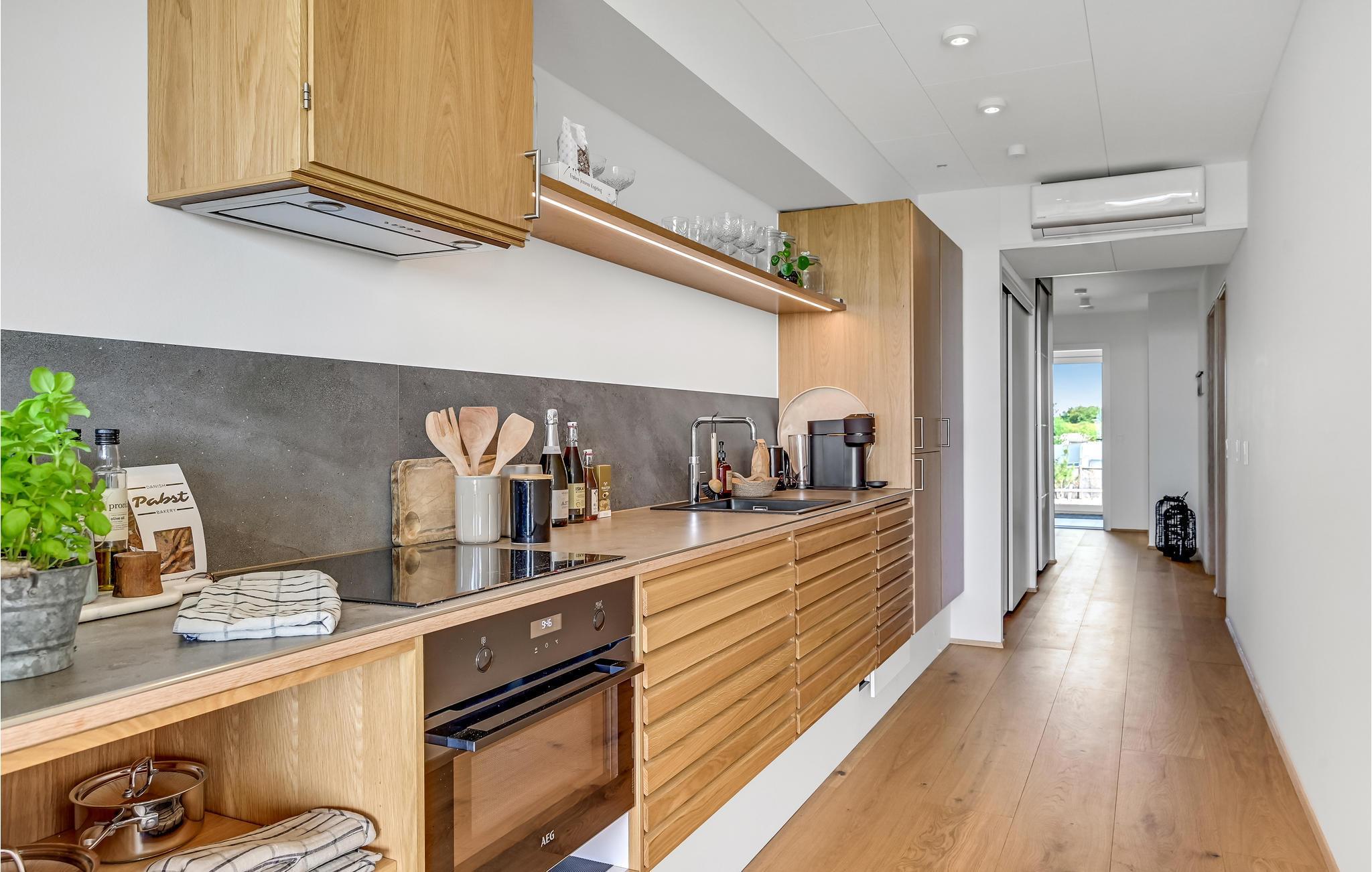 Hiermee bent u klaar voor fantastische dagen op Funen, waar een werkelijk schitterende locatie aan de Kerteminde Baai op u wacht. Hier staat deze prachtige flat, ingericht met kwalitatieve oplossingen. Natuurlijke materialen, een aangenaam kleurenschema en veel licht door de ramen zorgen voor een rustige en harmonieuze omgeving voor uw verblijf. Het beste van alles is het adembenemende uitzicht op het blauwe water van de baai, waarvan u kunt genieten terwijl u kookt, ontspant in de woonkamer of 's ochtends een kopje koffie drinkt op het balkon.