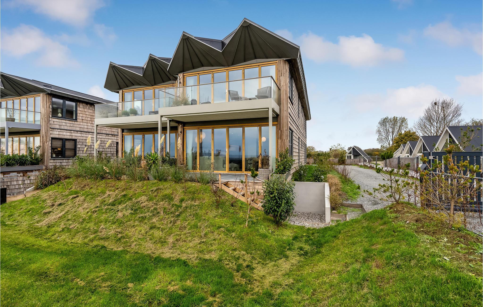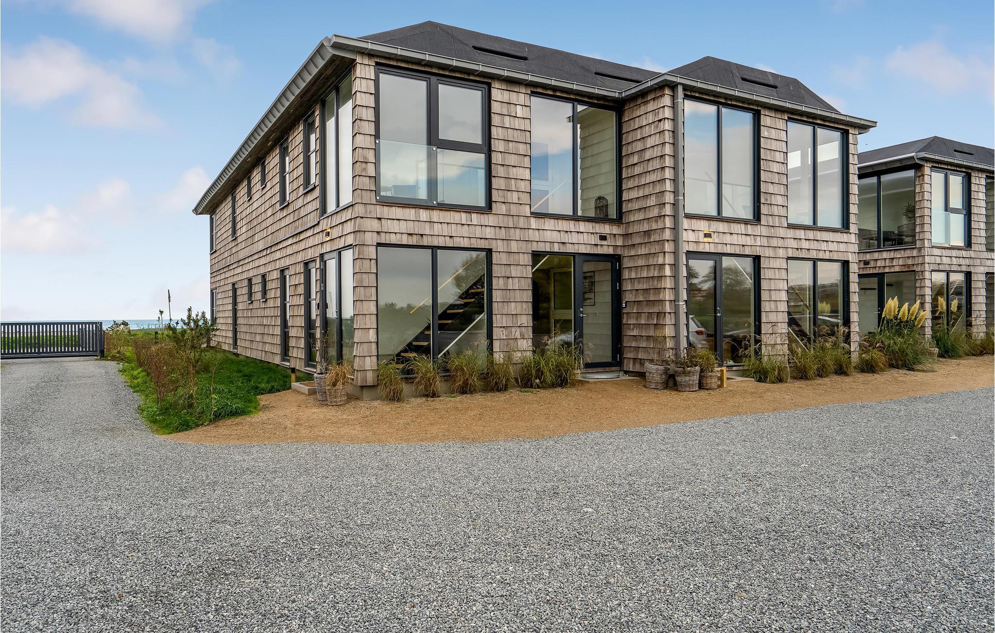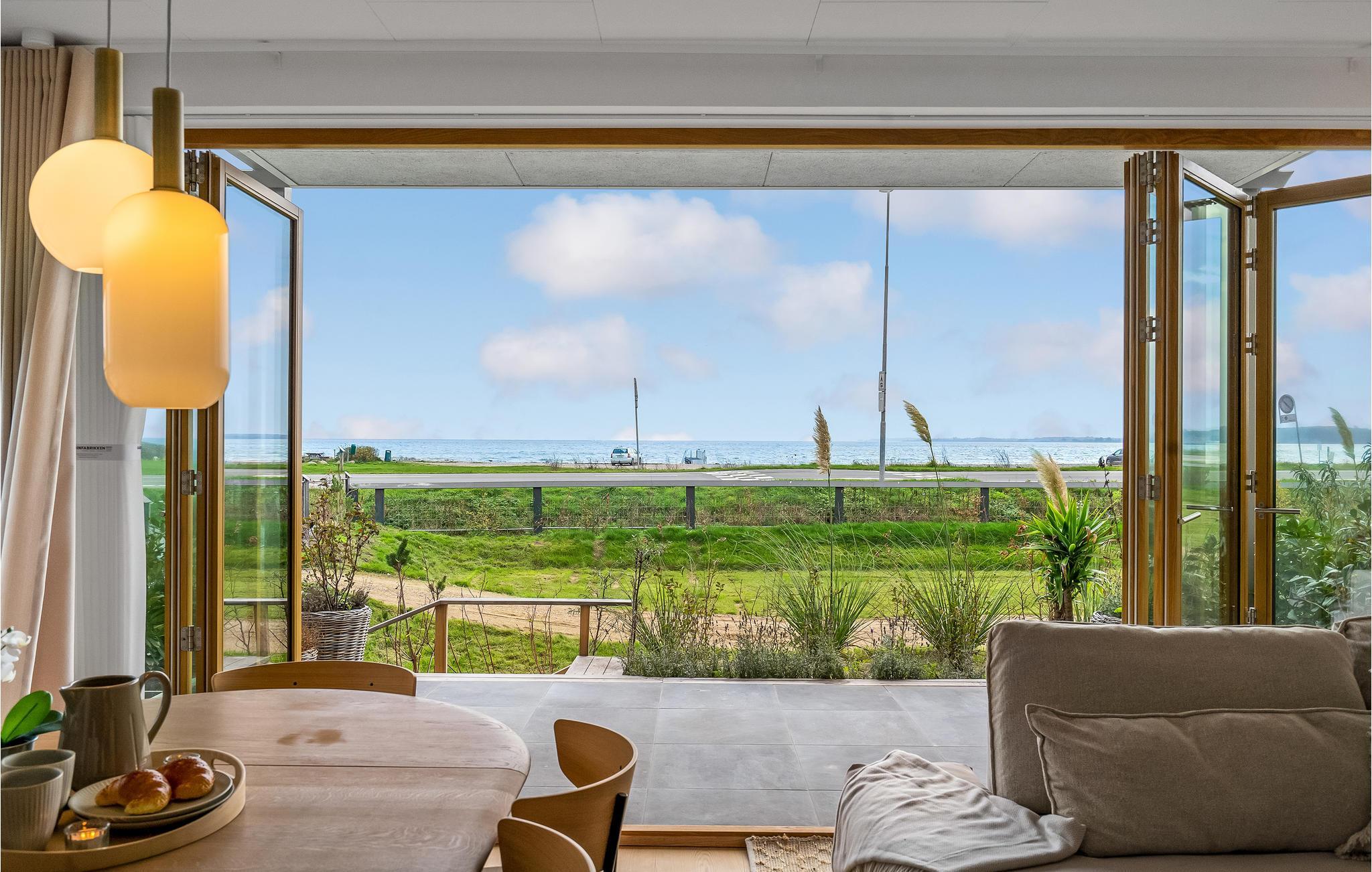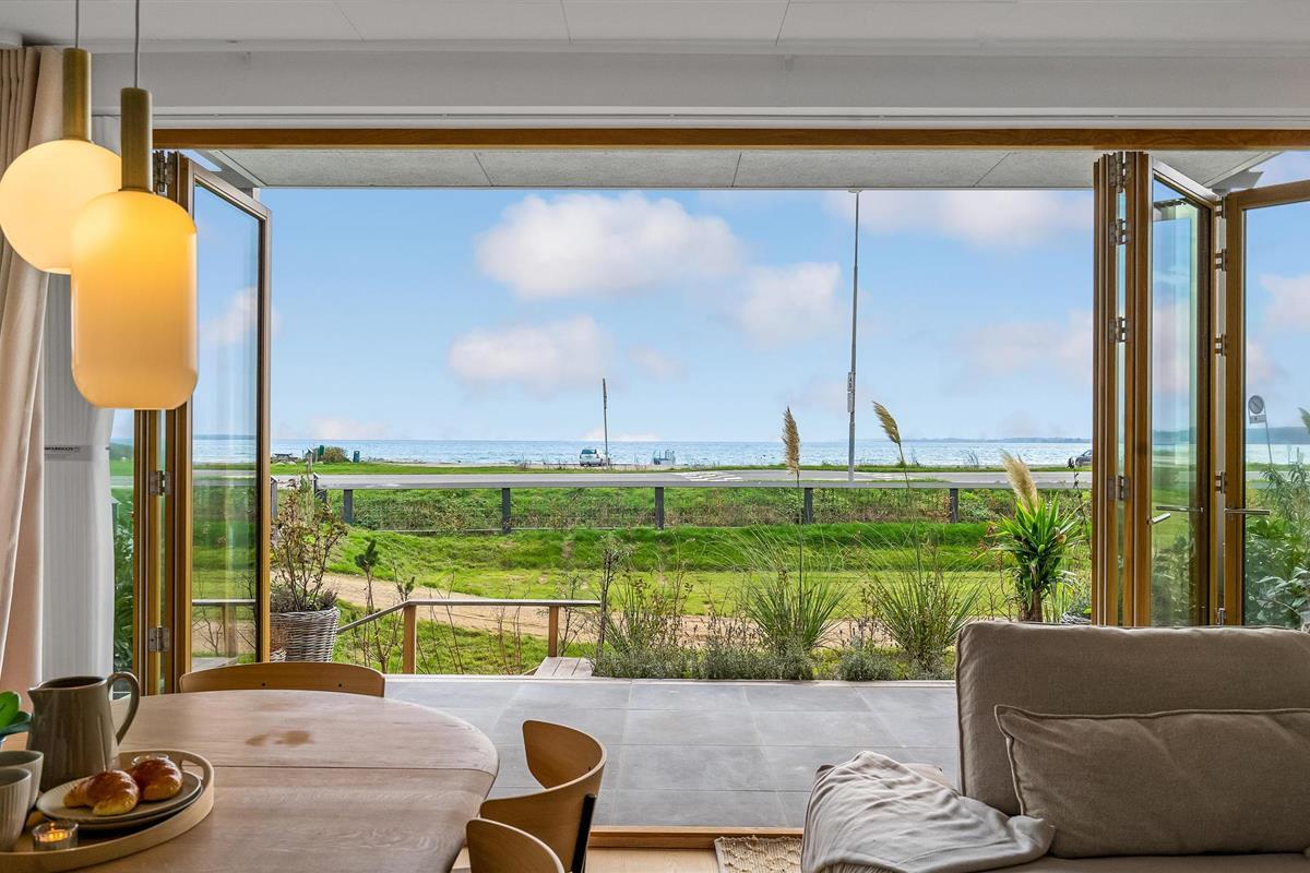 Prachtige topflat aan de Kertemindebaai met uitzicht op water en Storebælt-brug, vlak bij het strand en natuur.