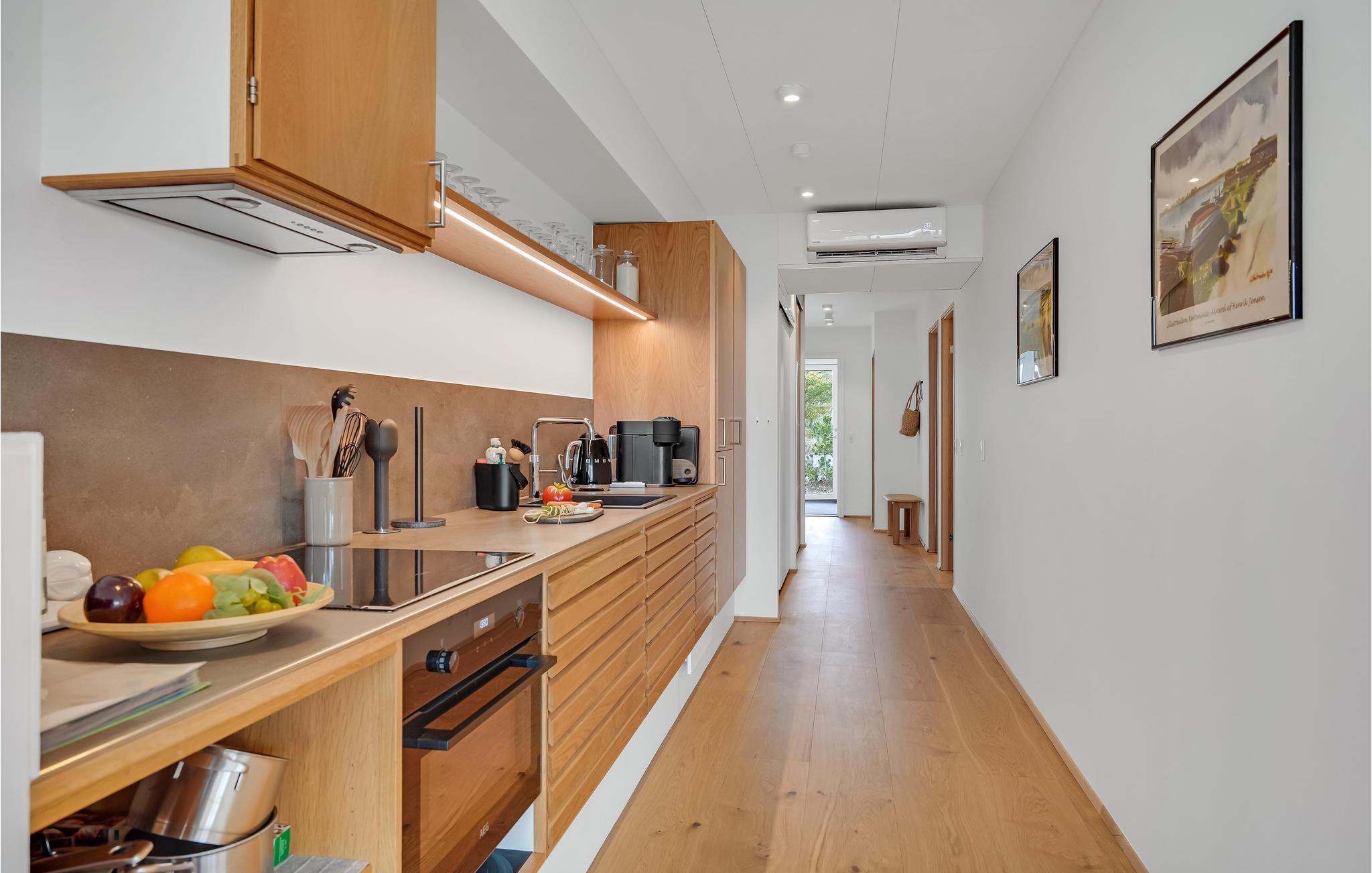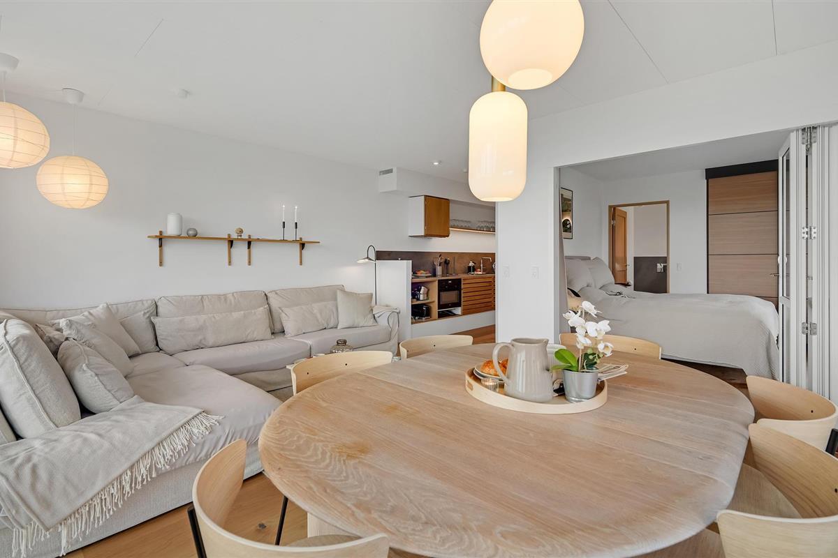 Bereid u voor op fantastische dagen op Funen, waarbij u zich kunt verheugen op een werkelijk schitterende locatie aan de Kerteminde Baai. Hier is deze prachtige flat, ingericht met goede kwaliteitsoplossingen. Natuurlijke materialen, een aangenaam kleurenschema en veel licht door de ramen zorgen voor een rustige en harmonieuze omgeving voor uw verblijf. Het beste van alles is het adembenemende uitzicht op het blauwe water van de baai, de Storebælt-brug en de bedrijvigheid op het water, waarvan u kunt genieten terwijl u kookt, ontspant in de woonkamer of 's ochtends een kopje koffie drinkt op het grote balkon.