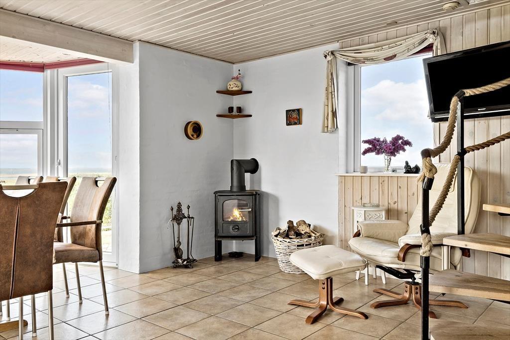 Dit comfortabele vakantiehuis in Nr. Fjand, West-Jutland, biedt een ideale uitvalsbasis voor vakantiegangers die van natuur en rust houden. Het huis heeft een sfeervol interieur met een houtkachel en moderne voorzieningen zoals een wasmachine, vaatwasser en wasdroger.