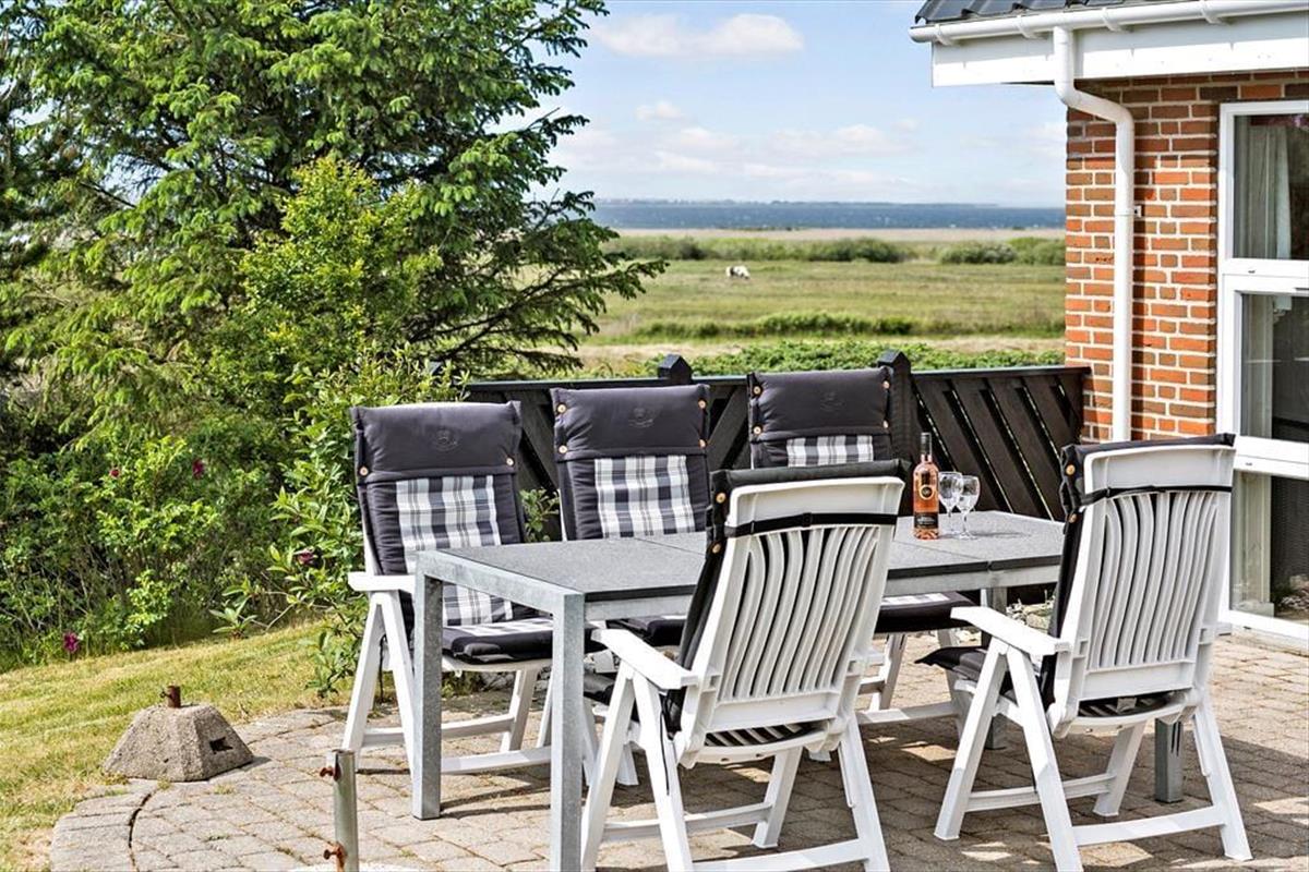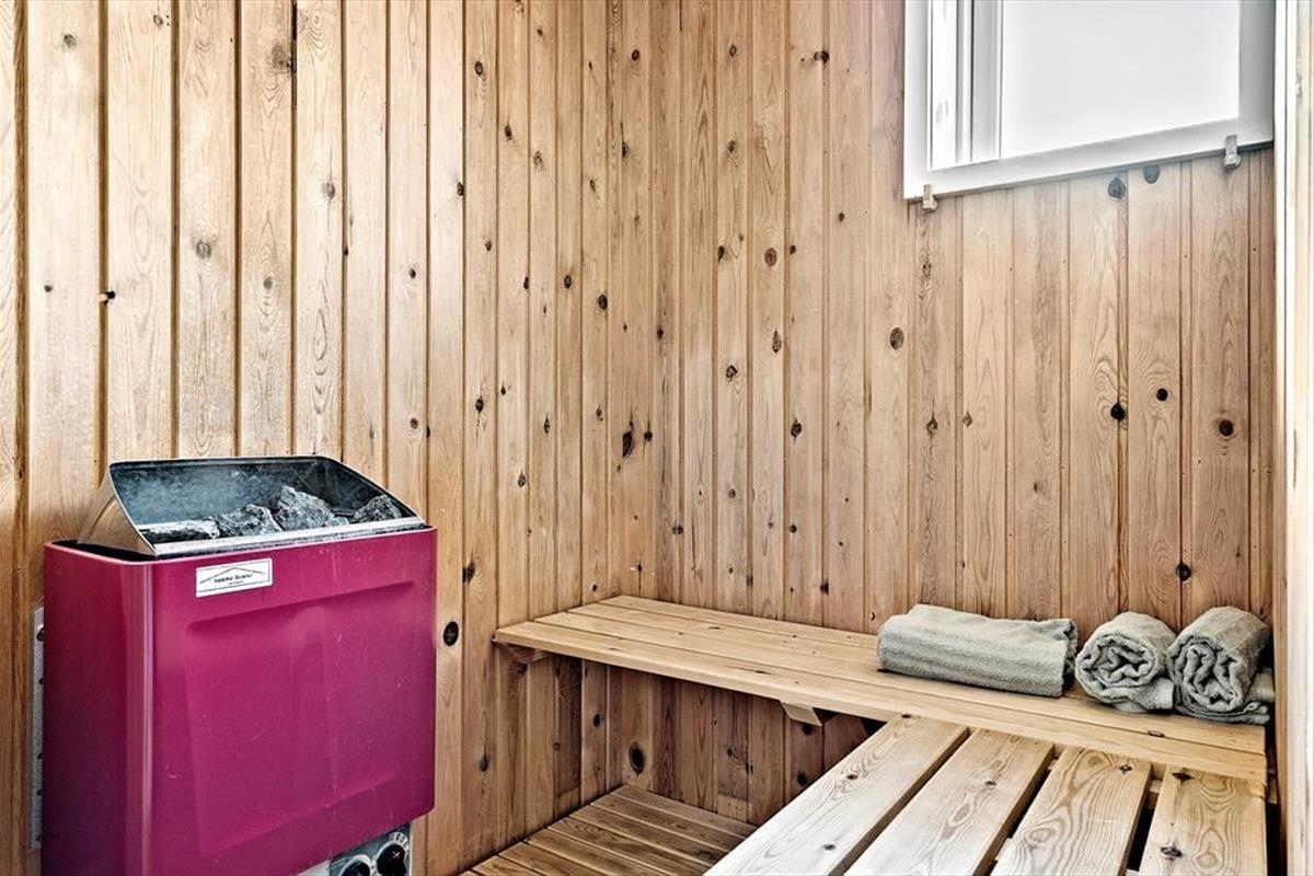 Op het ruime perceel van 1200 m² vindt u een schommel en zandbak, perfect voor kinderen. Vanuit het huis geniet u van een prachtig uitzicht op de fjord en het omliggende landschap. Daarnaast kunt u heerlijk ontspannen in de sauna of buiten op het terras met ligstoelen en parasol.