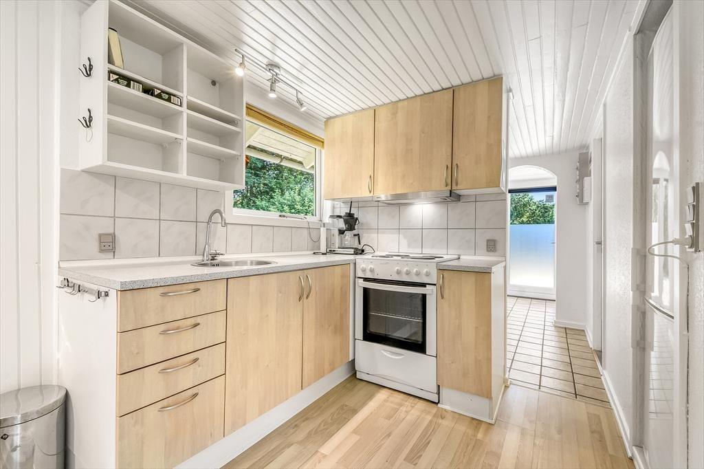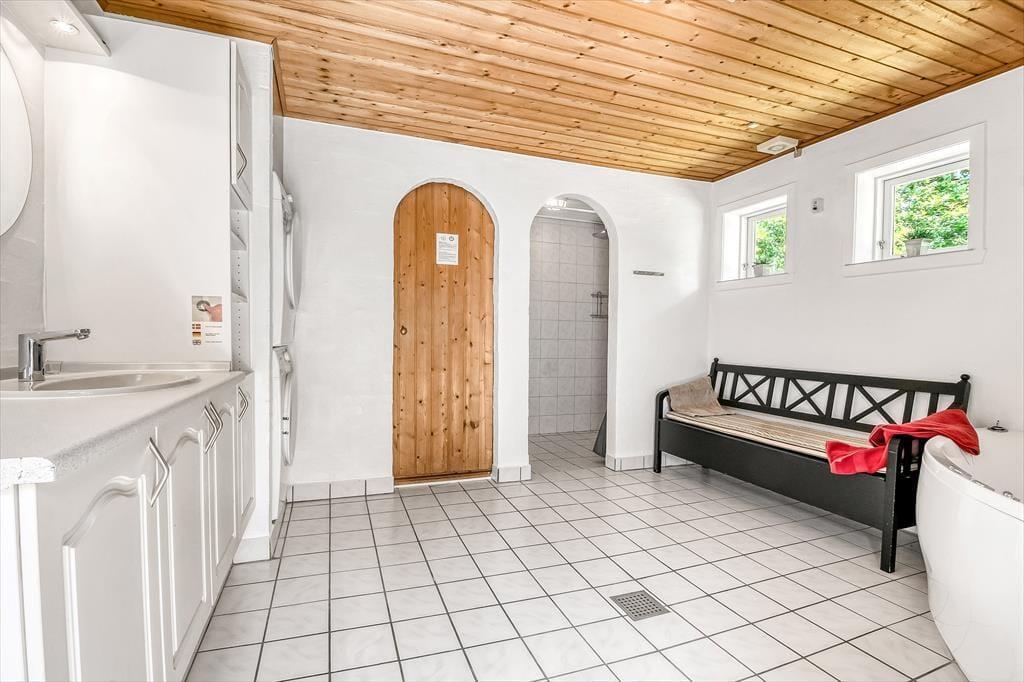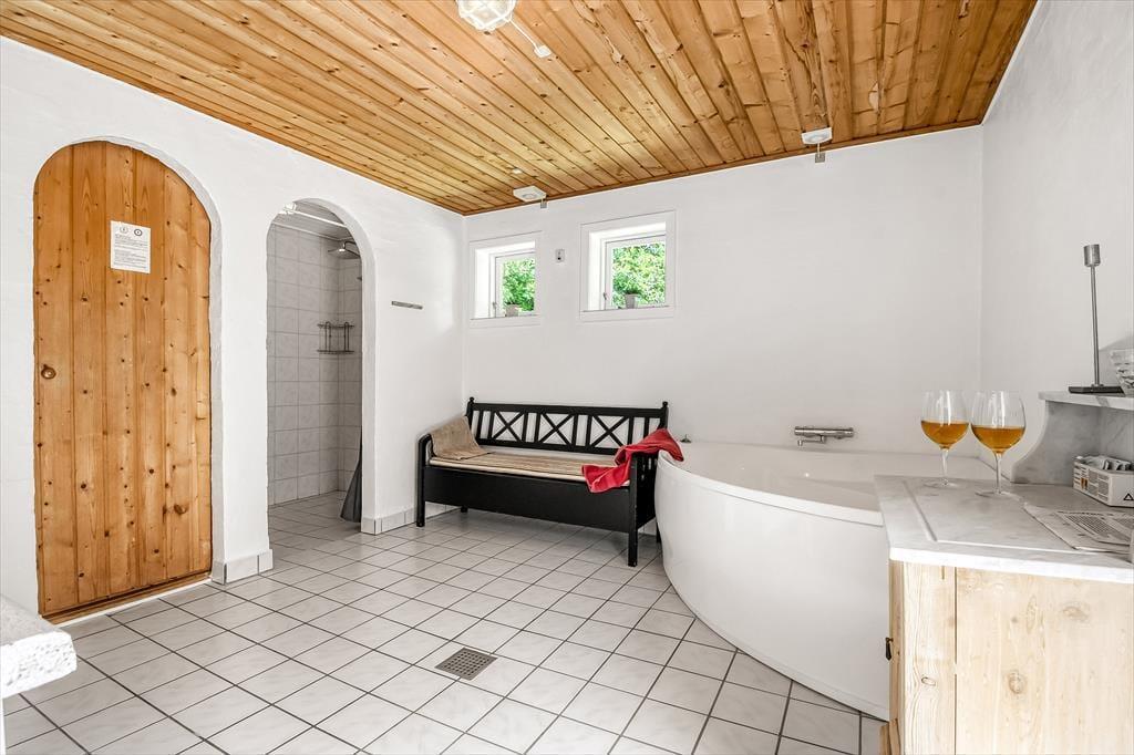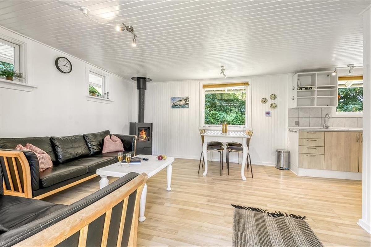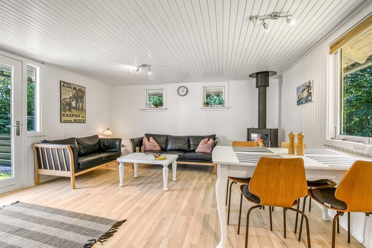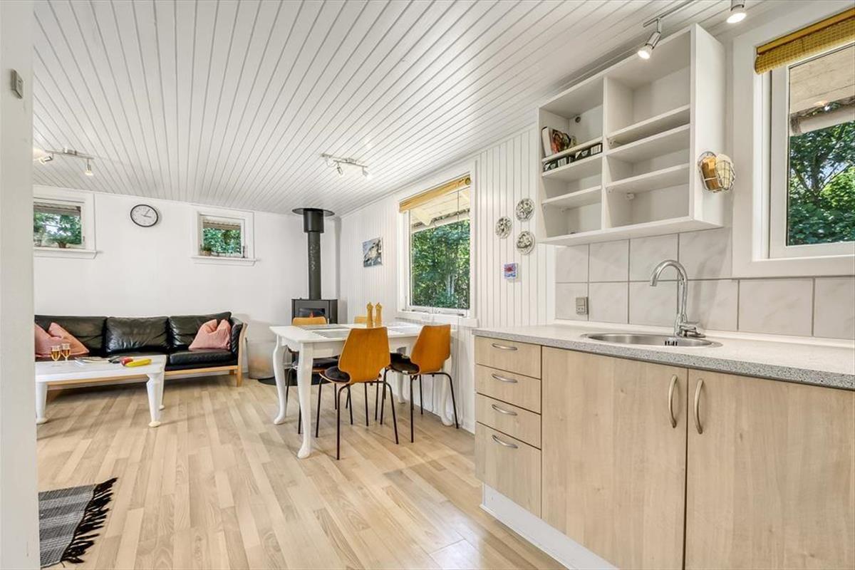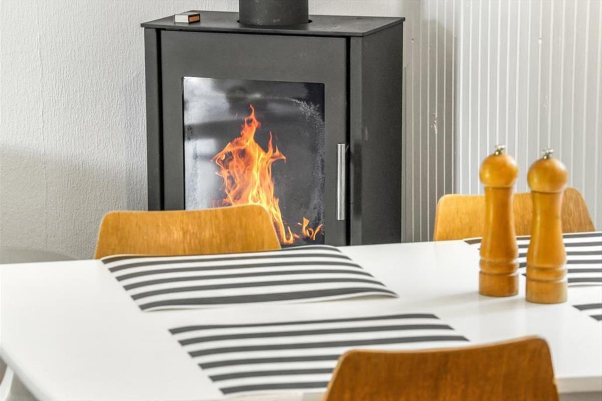 Am Ende eines ruhigen Kiesweges, mitten in der friedlichen und naturnahen Umgebung von Fjand, liegt dieses gemütliche Ferienhaus – ein wunderbarer Ort für Erholung, Gemeinsamkeit und eine Auszeit in entspannter Atmosphäre. Das Haus ist hell und einladend eingerichtet mit einem offenen Wohnbereich, in dem Küche, Essplatz und Wohnzimmer harmonisch ineinander übergehen. Hier kann man gemeinsam kochen, spielen, entspannen und die Wärme des Kaminofens genießen. Am anderen Ende des Hauses lädt ein schöner Wellnessbereich mit Sauna, Dusche und Whirlpool zum Abschalten und Wohlfühlen ein.
