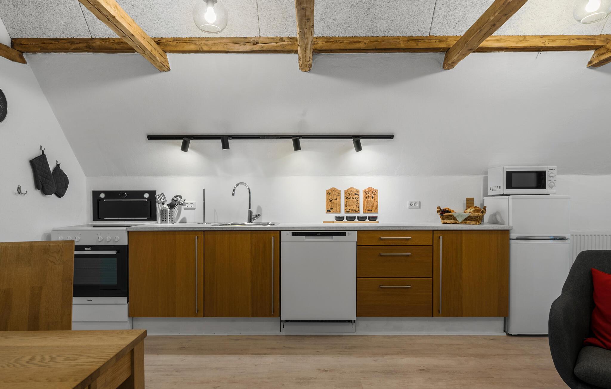 Welkom in dit zorgvuldig gerestaureerde oude appartement, dat je zal verrukken met zijn gezellige sfeer en stijlvolle inrichting. Verheug je op gezellige kookavonden in de moderne keuken en vier je maaltijden in gezellig gezelschap aan de uitnodigende eettafel. Maak het jezelf gemakkelijk op de gezellige bank en ontspan na een lange dag met een filmavond of wijd je aan een goed boek.