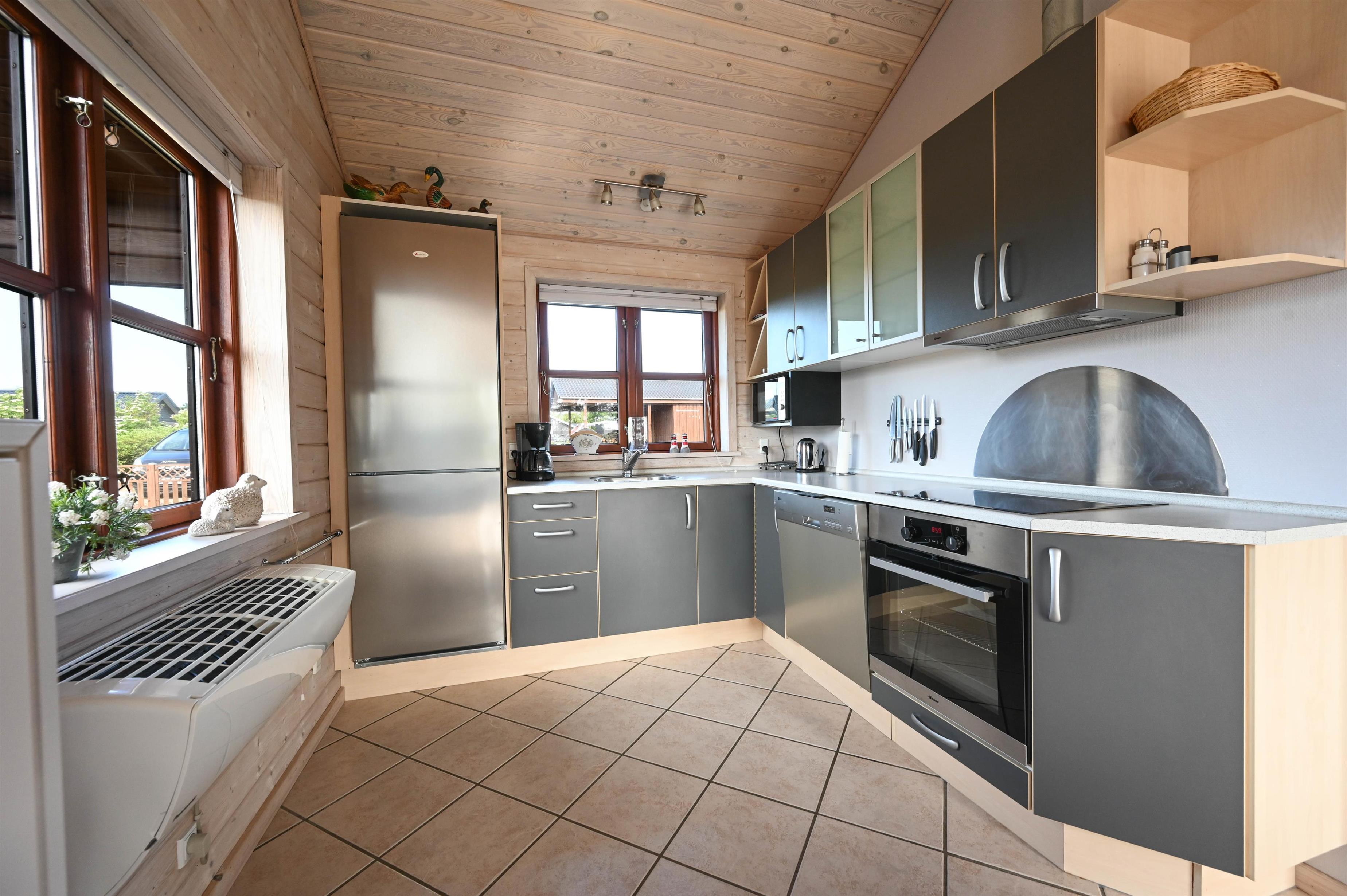 Layout: Large entrance hallway. Open living/dining area with integrated, modern kitchen and beautiful fireplace. A total of 3 bedrooms, two with double bed and one with bunk beds. 2 chic bathrooms, one of them with jacuzzi and sauna. Wooden flooring in the living rooms and bedrooms, tiled floors in the kitchen and bathrooms, here with underfloor heating. Technical room with stainless steel sink, which makes anglers happy, e.g. for cleaning their catch.