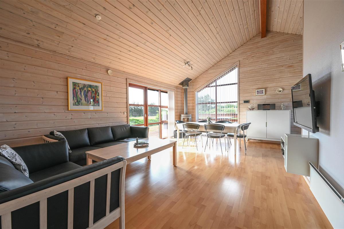 You have a wide view over the meadows to the Nissum Fjord from this beautiful wooden house with 85 square metres of living space.