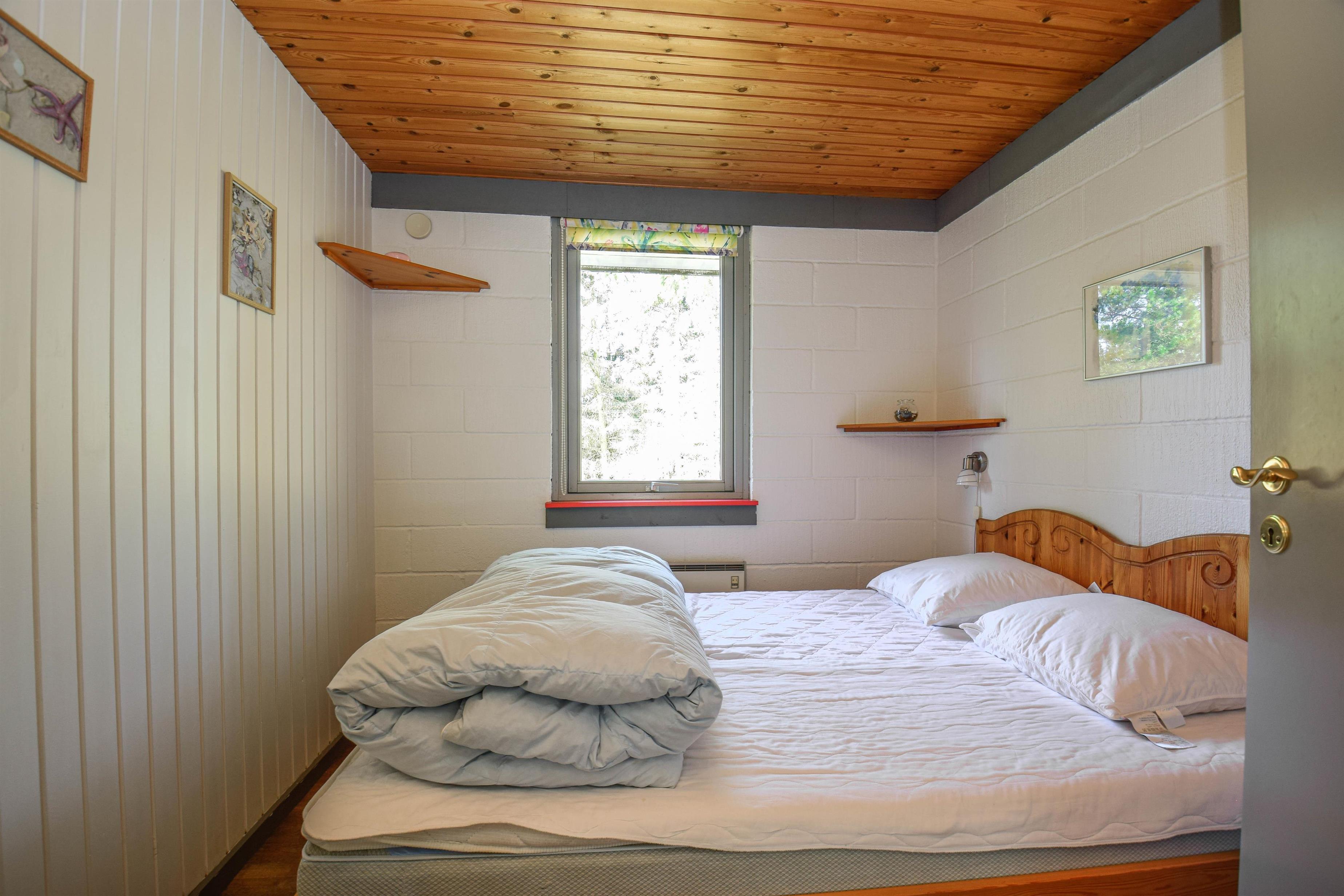 Layout: Entrance hallway, large living room, with open kitchen, dining area and beautiful fireplace. A total of 3 bedrooms, one with a double bed and sink, one with a double bed and one with 2 single beds and a sink. Nice, bright bathroom with shower niche.