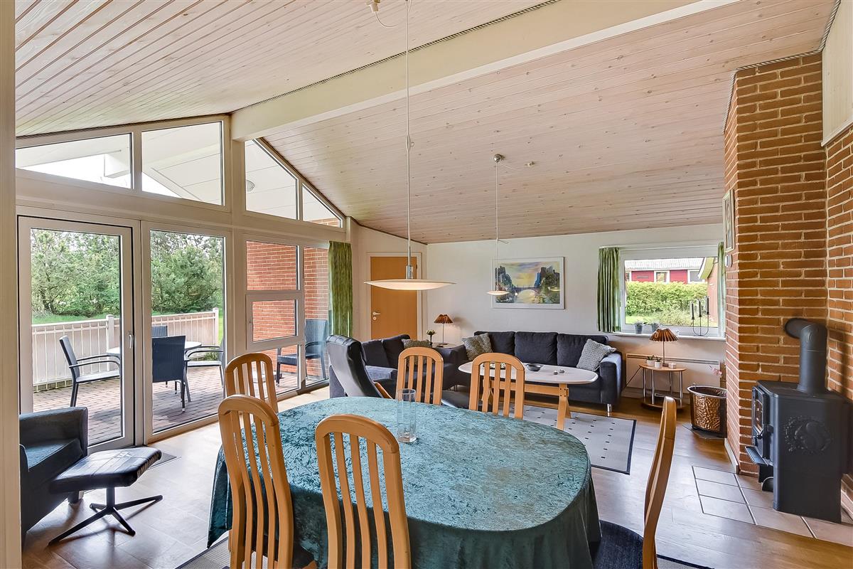 This spacious holiday home with 103 square metres of living space is situated on a 1,200 square metre, well-kept natural plot. The beautiful terraces, sauna and whirlpool invite you to relax. From here you can quickly reach the Nissum Fjord with its rich bird life, child-friendly bathing bays and cute little fjord harbours.
