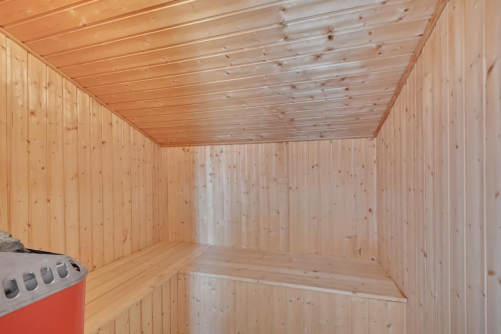 This beautiful wooden house with a living space of 76 square metres is situated on a plot of 1,400 square metres. The beautiful large wooden terrace, partly covered, invites you to relax. In the cooler months, you can create your own wellness programme with the sauna and whirlpool. Children love the small split level as a pirate's den or a princess' room. It can be accessed from the kitchen via a ladder.