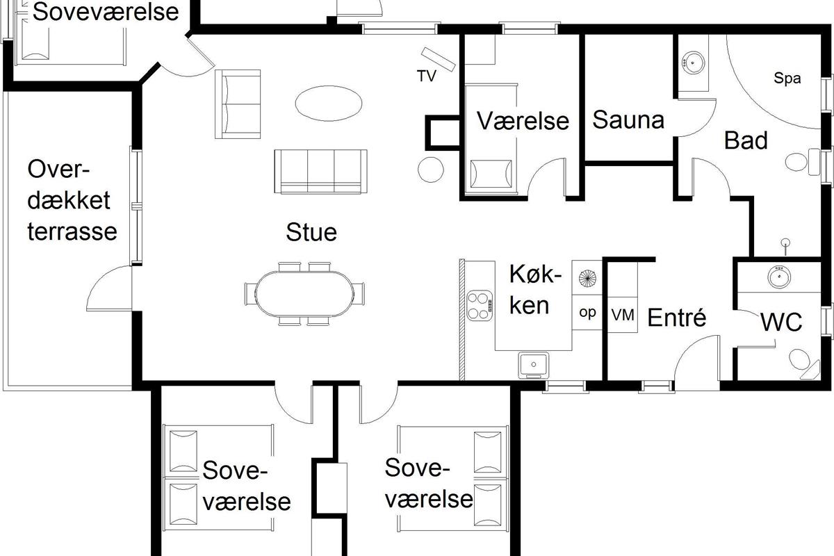 This holiday home is located right next to Helmklink Havn on Nissum Fjord. The pretty holiday home has 99 square metres of living space and is situated on a 1,300 square metre lawned plot of which 200 square metres are fenced in.
